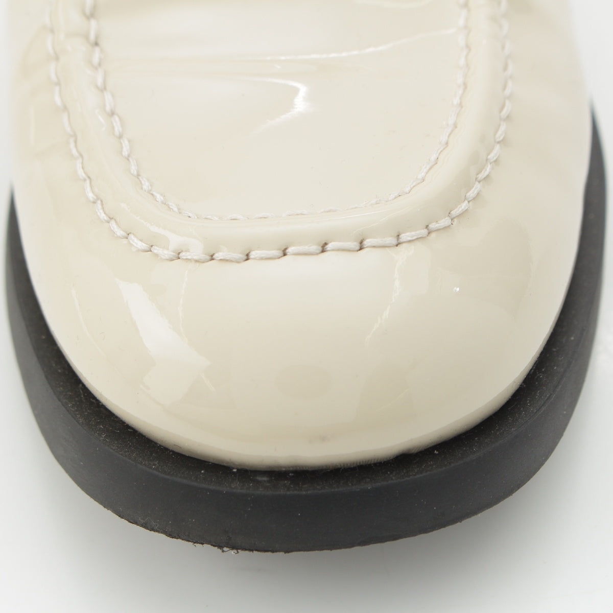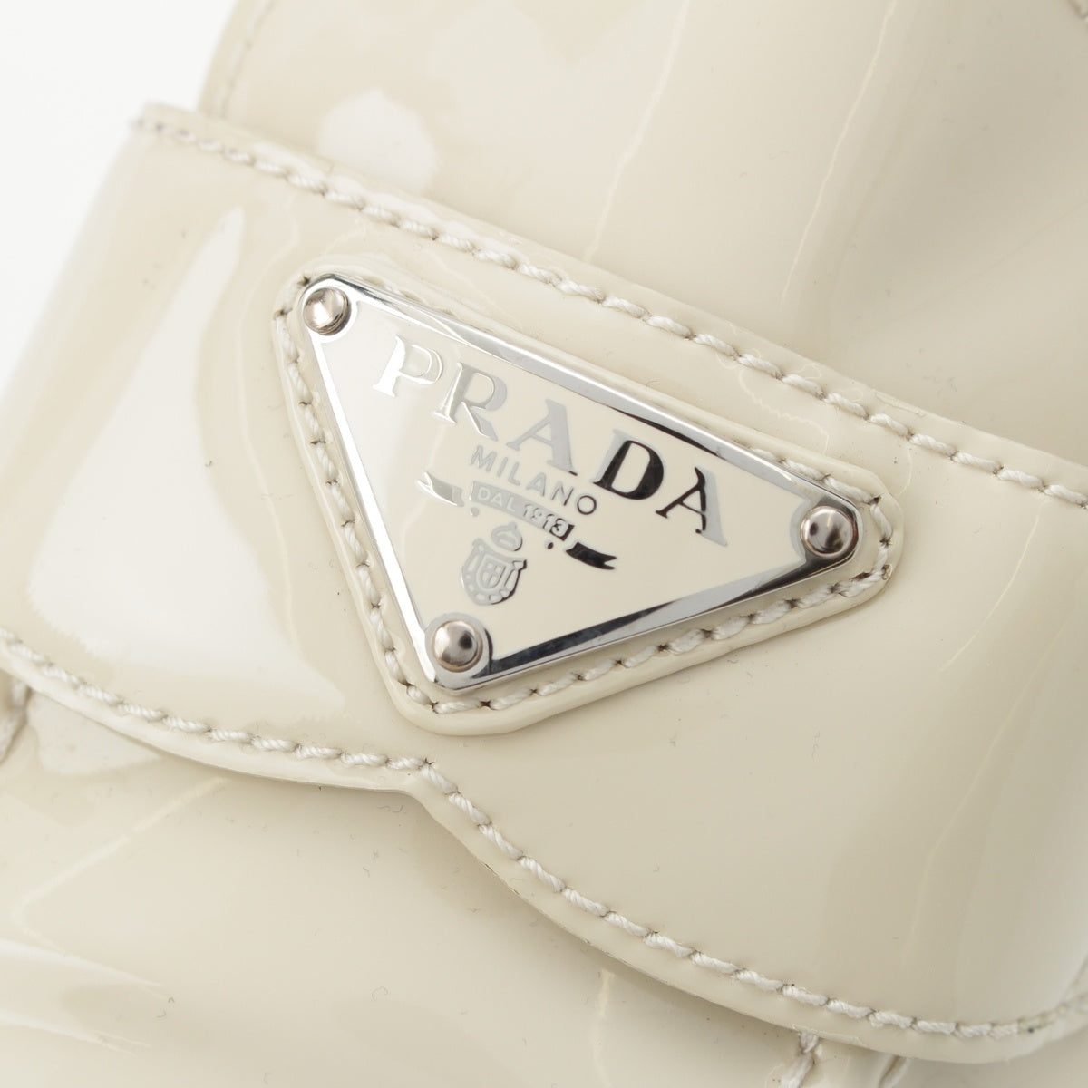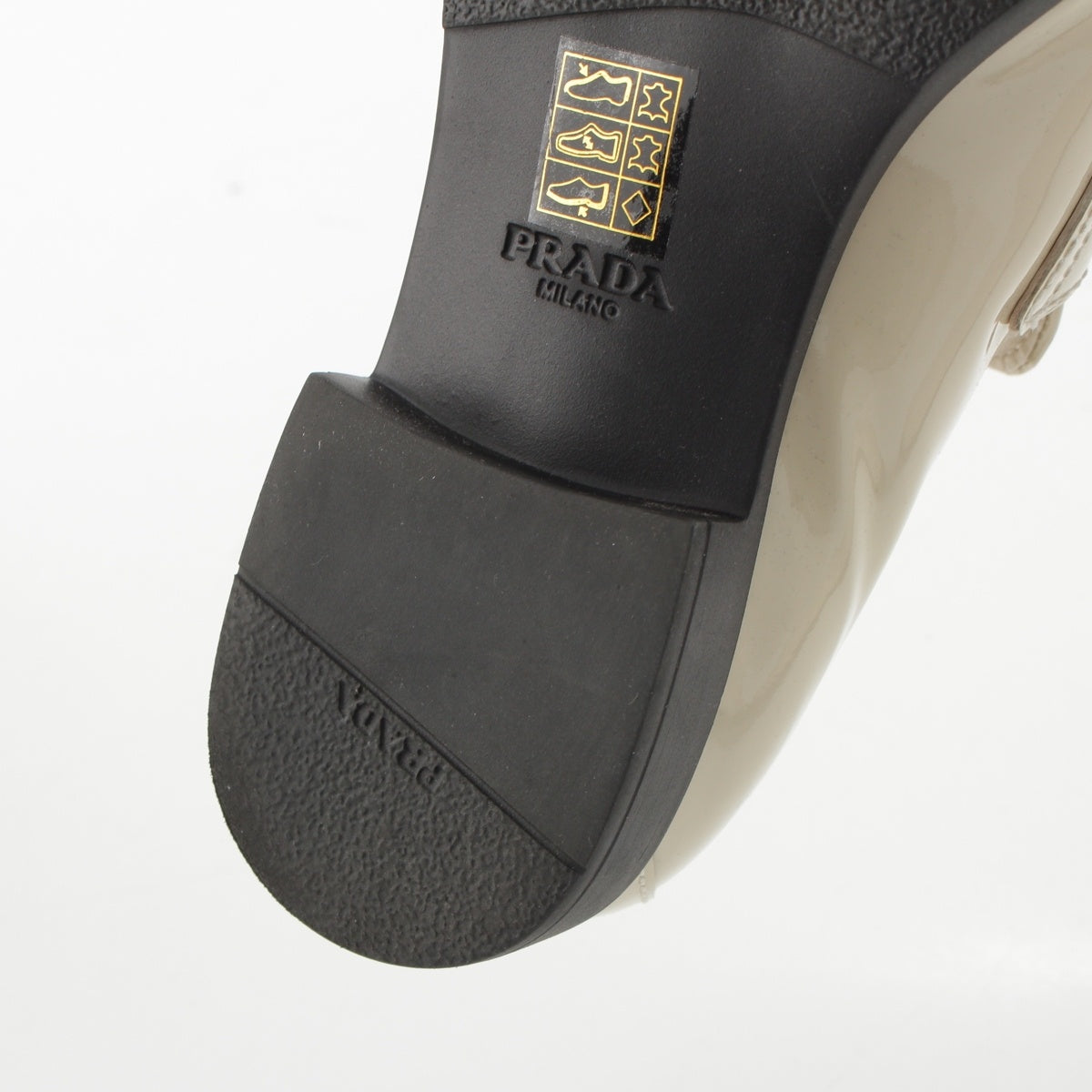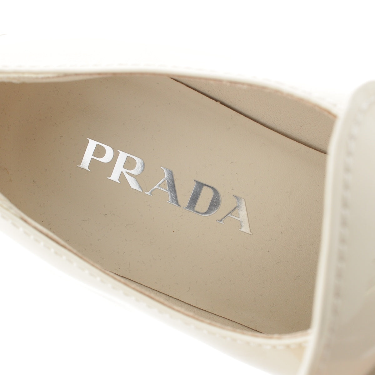 PRADA Patent leather Triangle Logo Chocolate Brushed loafers off white 37