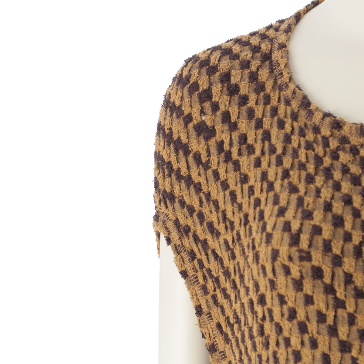 ISSEY MIYAKE cotton Brush tag deformation plane knit long one piece Brown beige M
