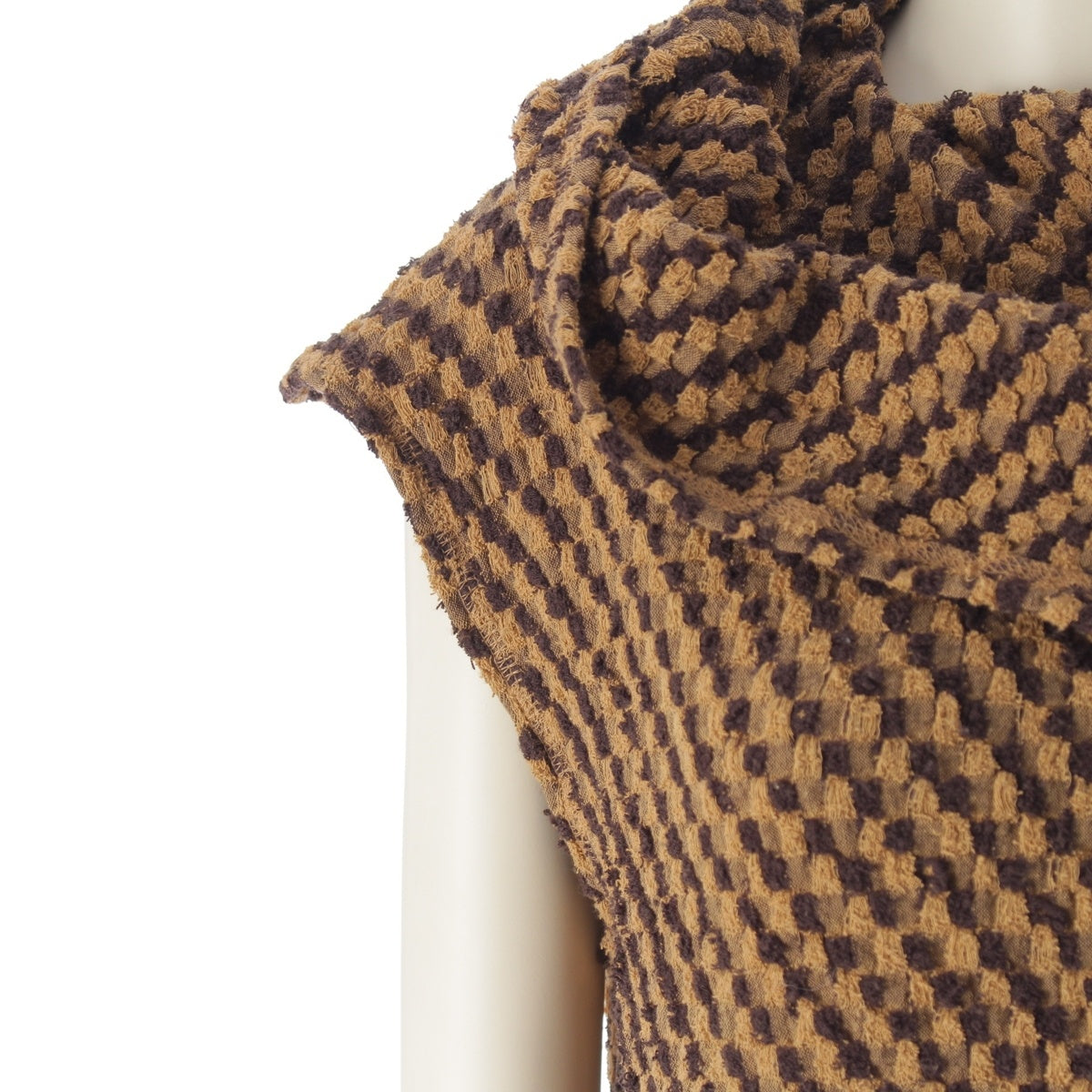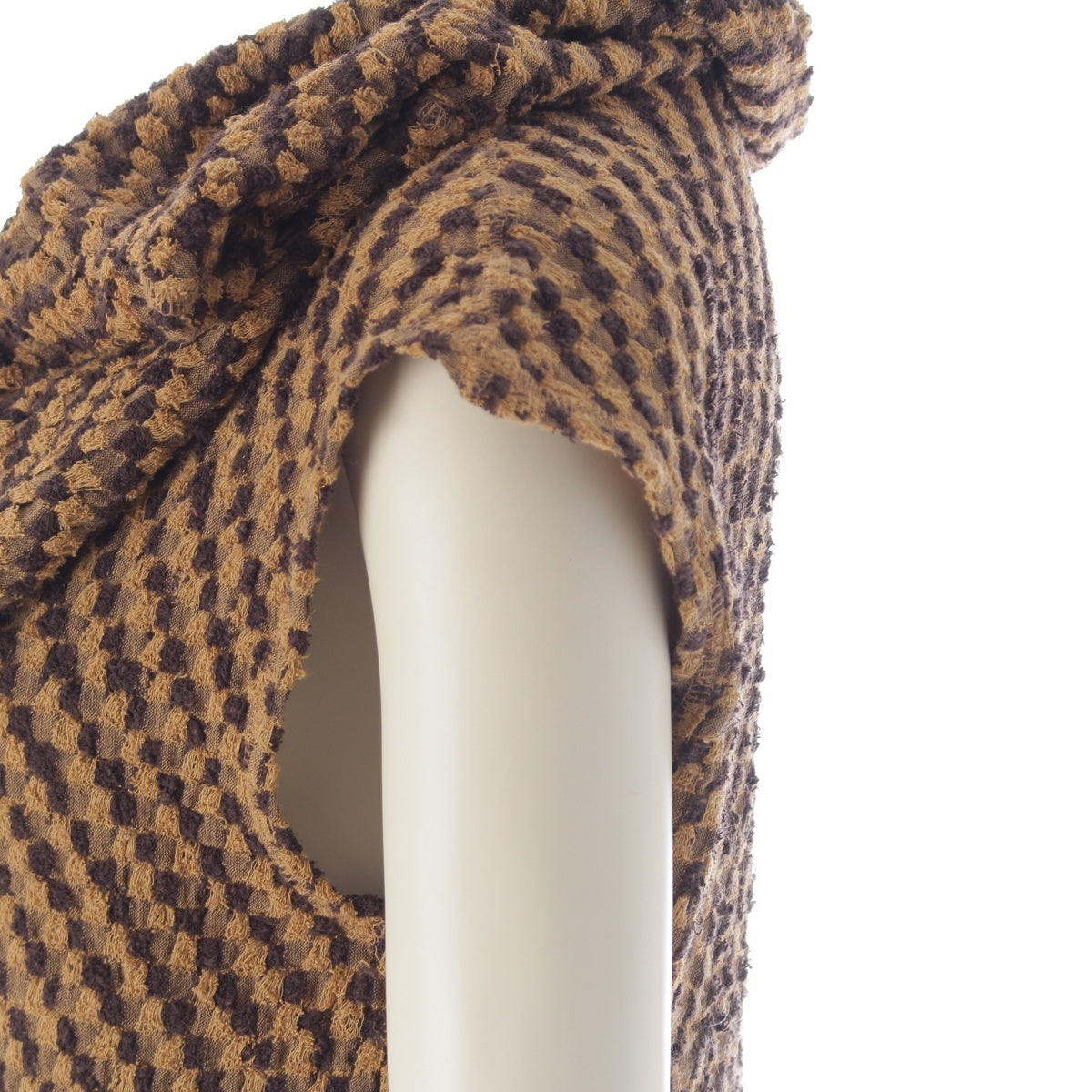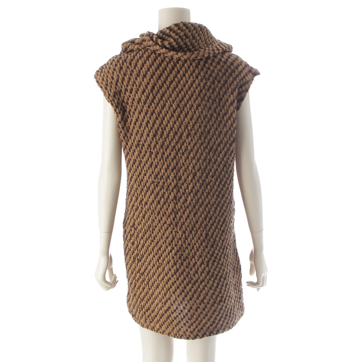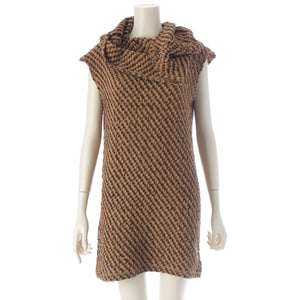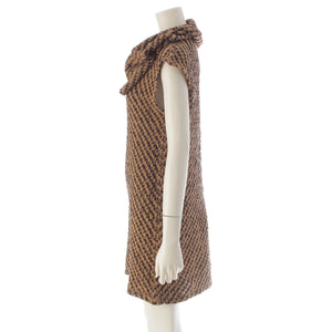 ISSEY MIYAKE cotton Brush tag deformation plane hooded knit one piece Brown beige 9