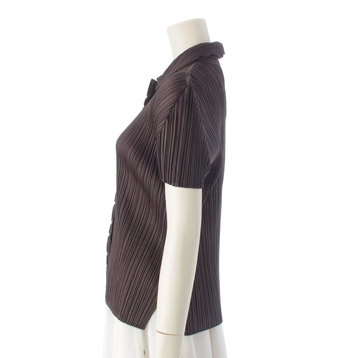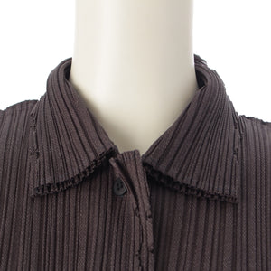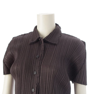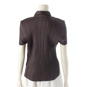 PLEATS PLEASE ISSEY Jagged Cutting Short Sleeve Shirt blouse PP51-JJ692 Charcoal gray 3
