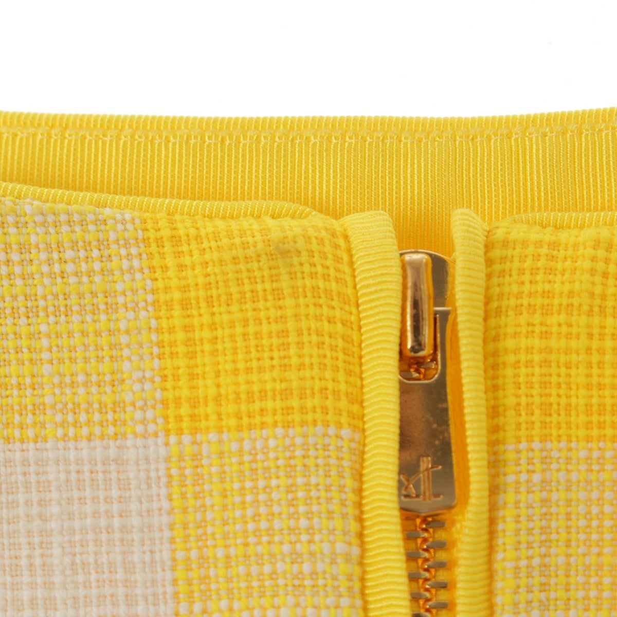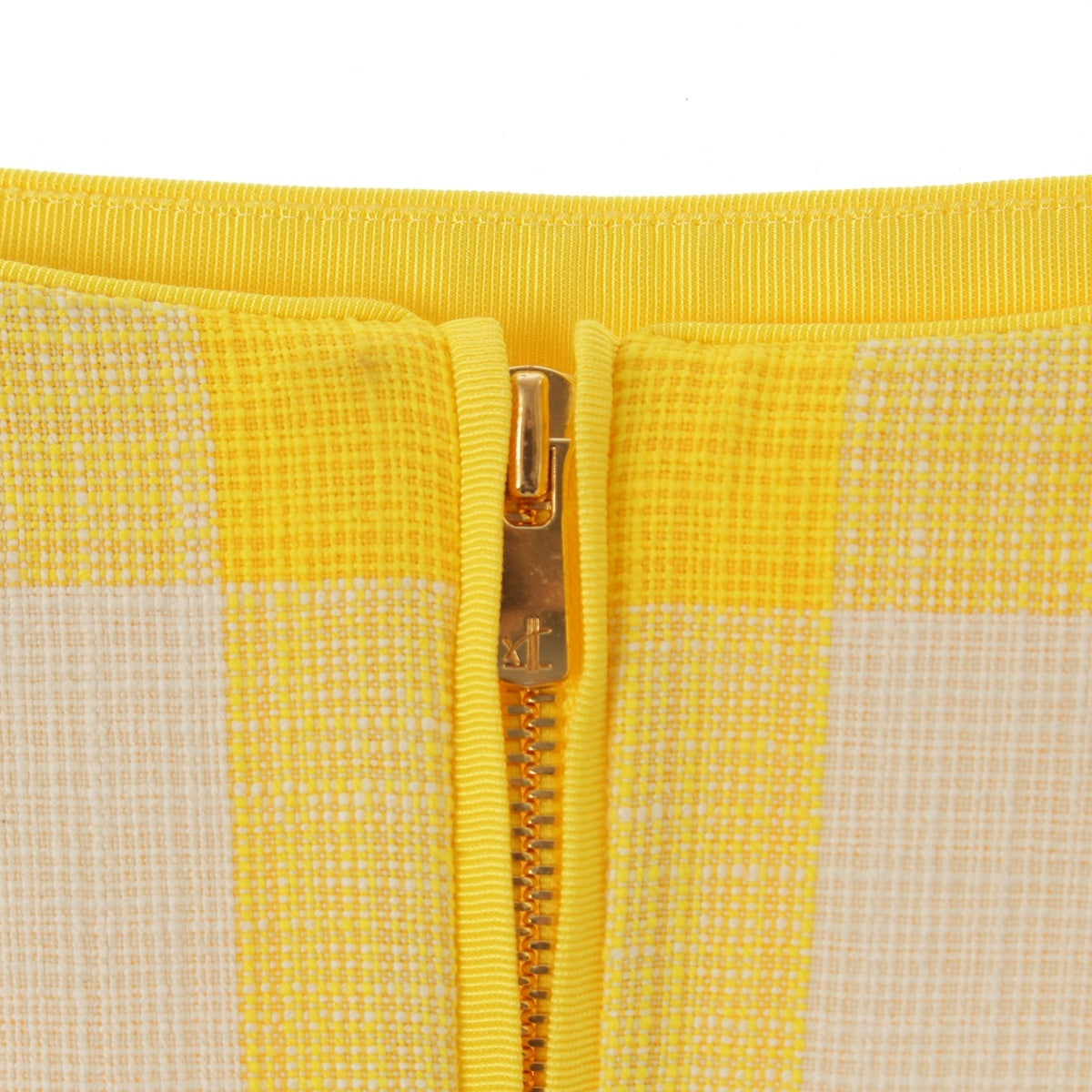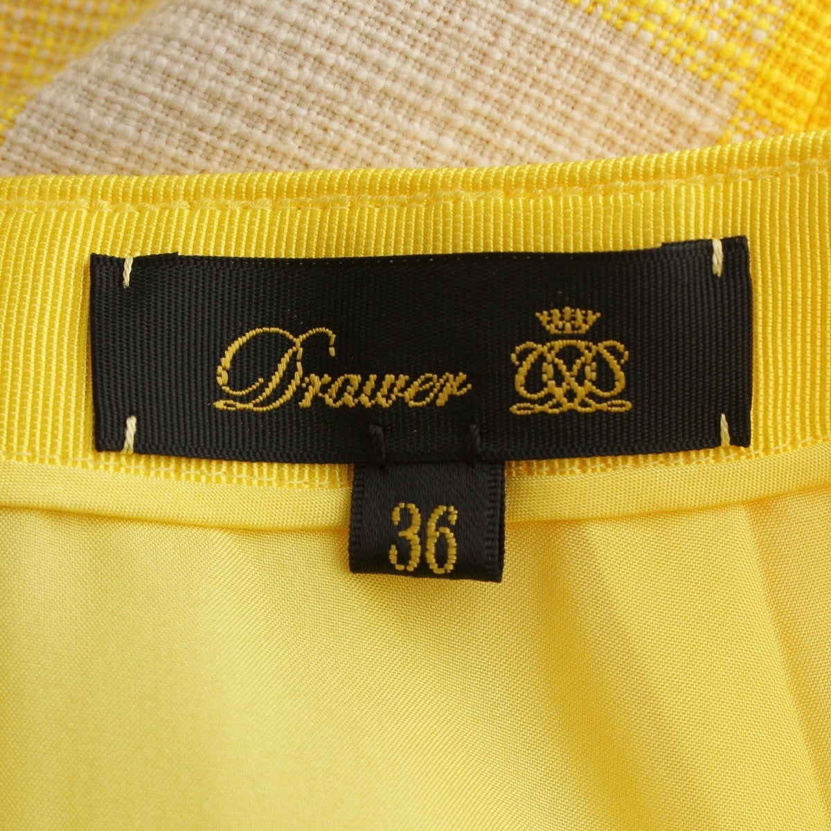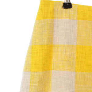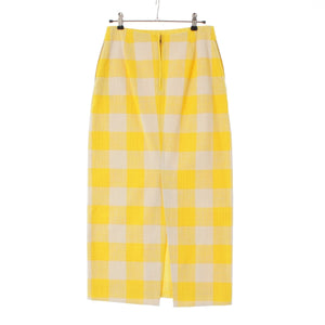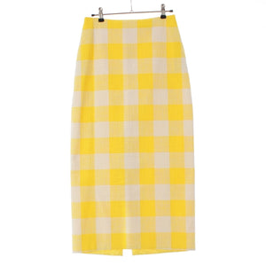 Drawer cotton Back slit block check tight long skirt Bottoms 6524-299-1718 Yellow white 36