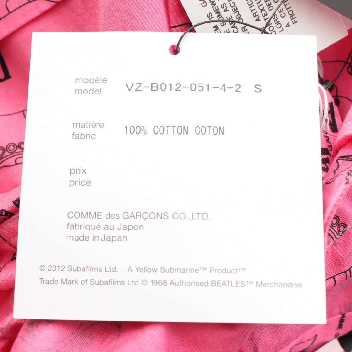 COMME des GARCONS THE BEATLES graphic Long sleeve shirt tops VZ-B012-051-4-2 pink S