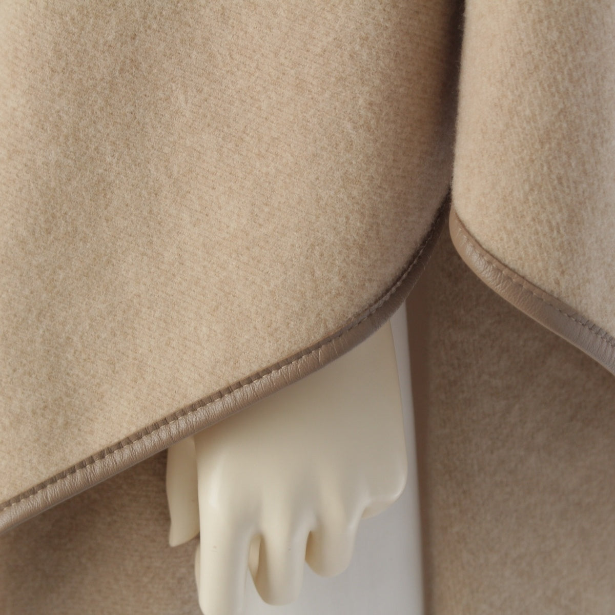 MAX MARA Virgin wool Belt Leather Piping Cape poncho beige