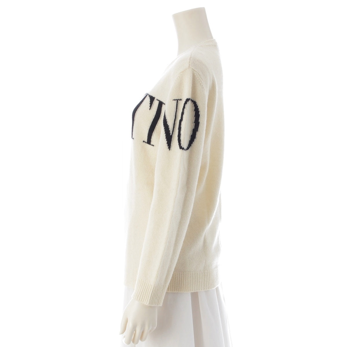 VALENTINO Cashmere Wool logo crew neck sweater Knit Top white