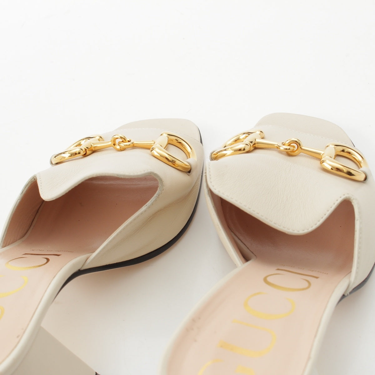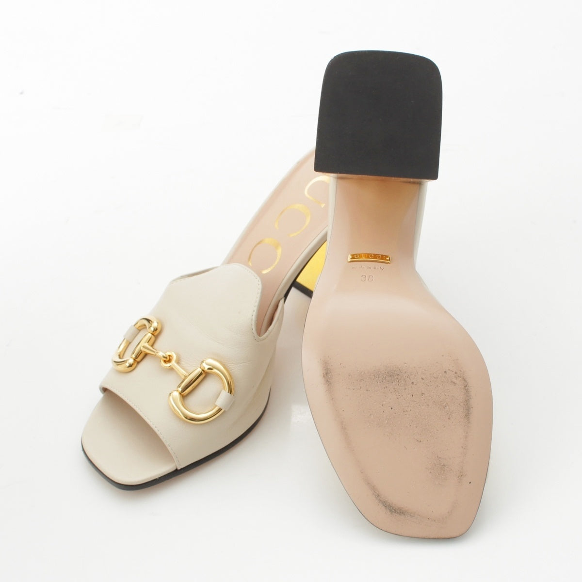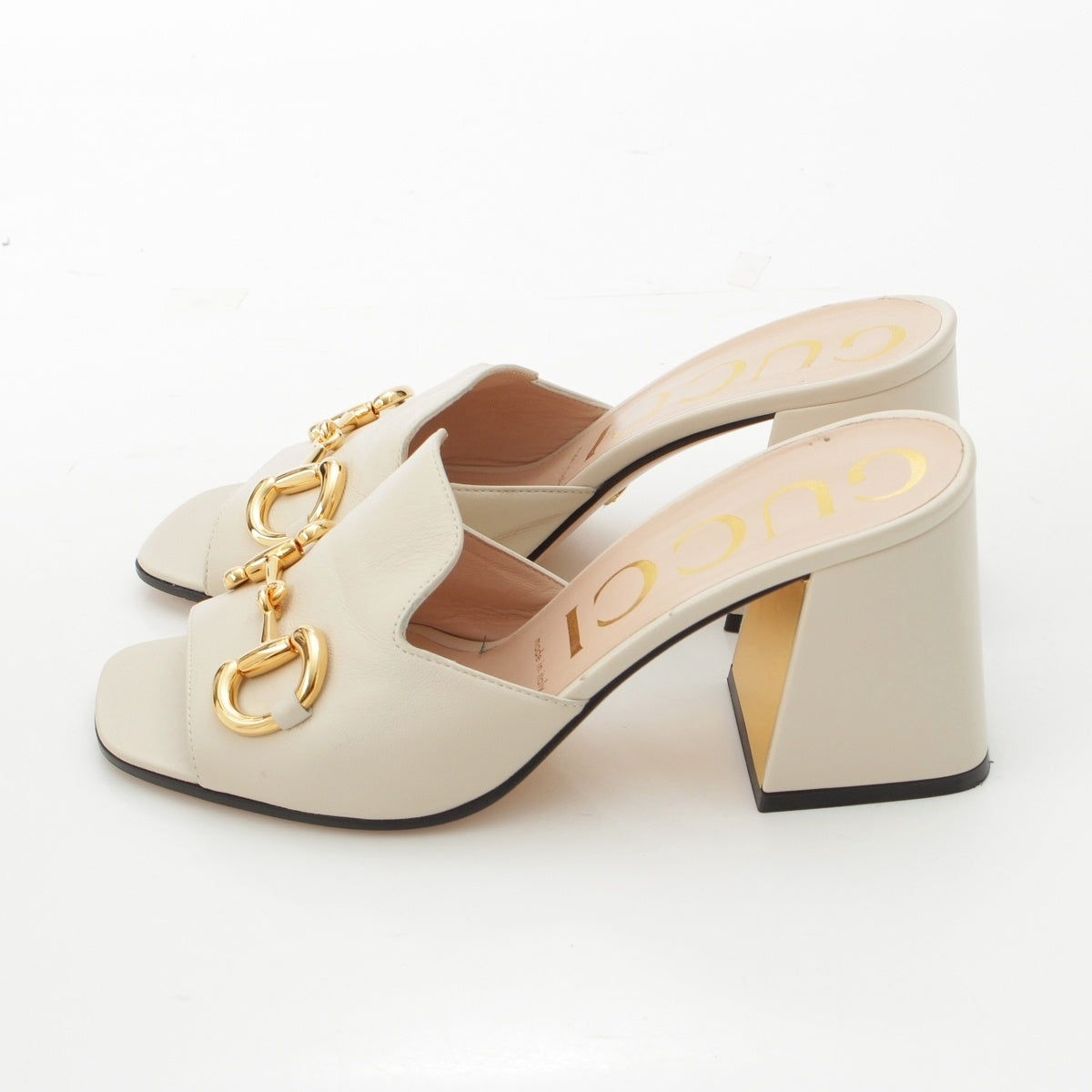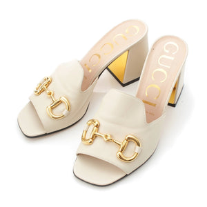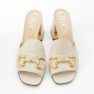GUCCI Horsebit Heel Mule Sandals shoes white 38