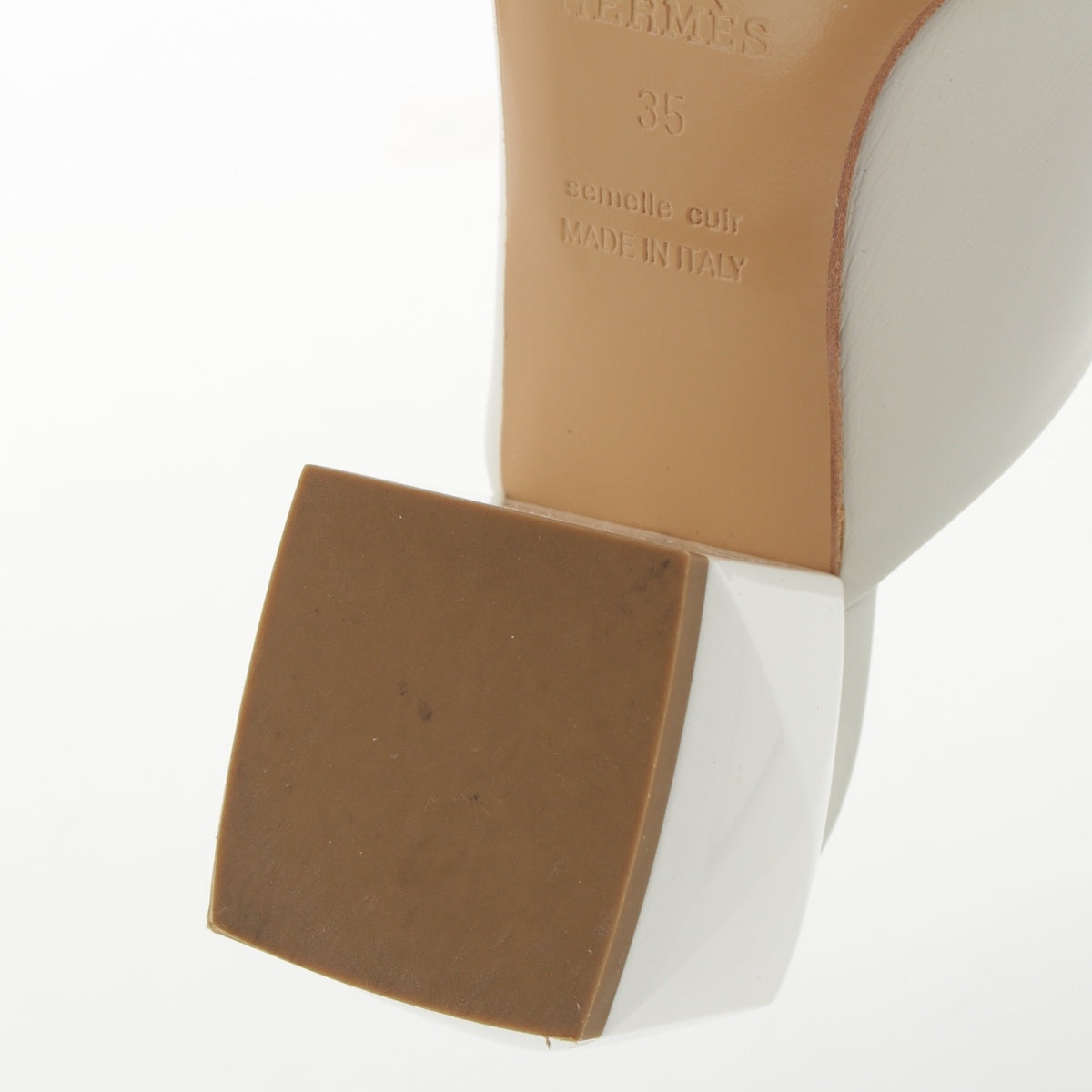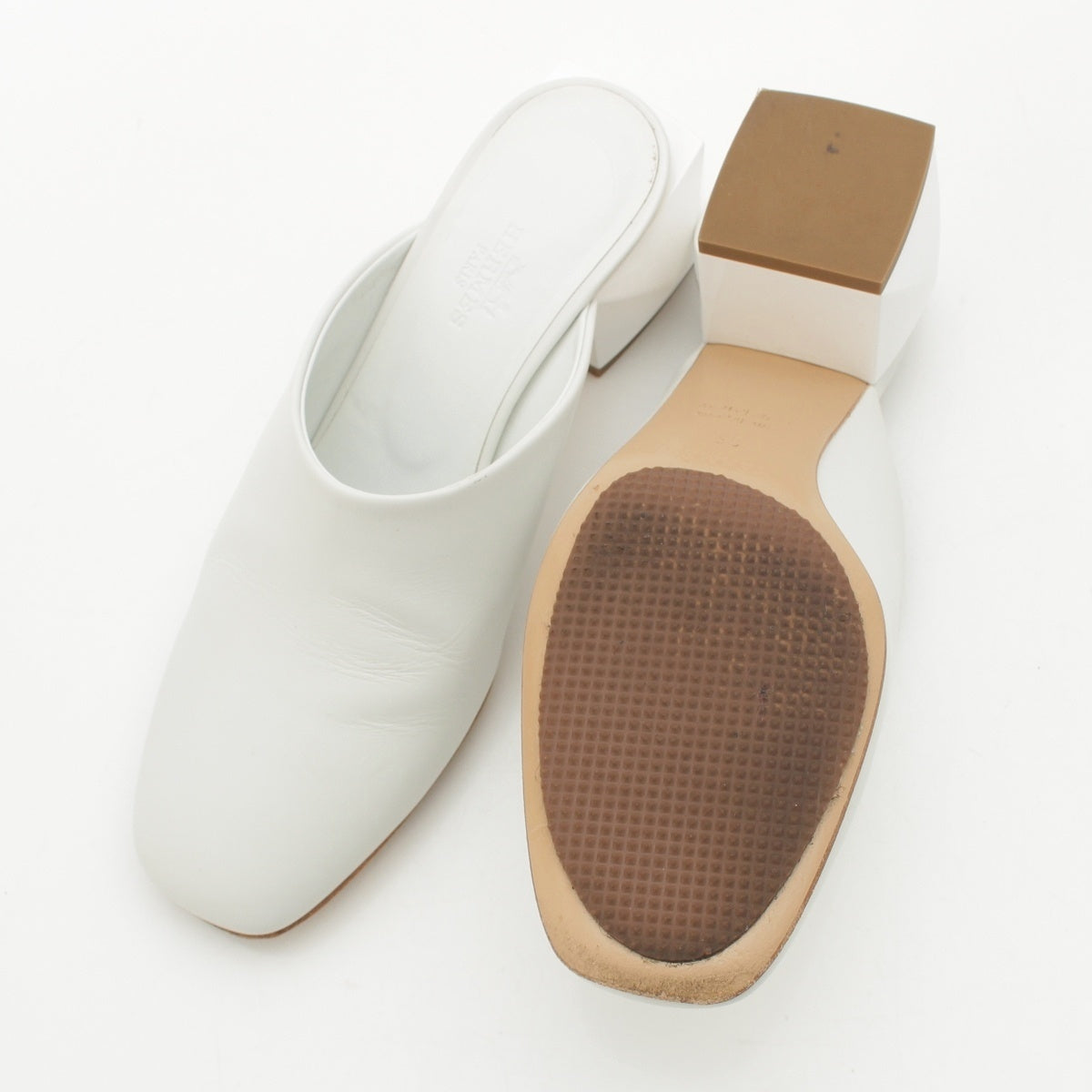 HERMES Christy Meador leather Heel Mule Sandals white 35