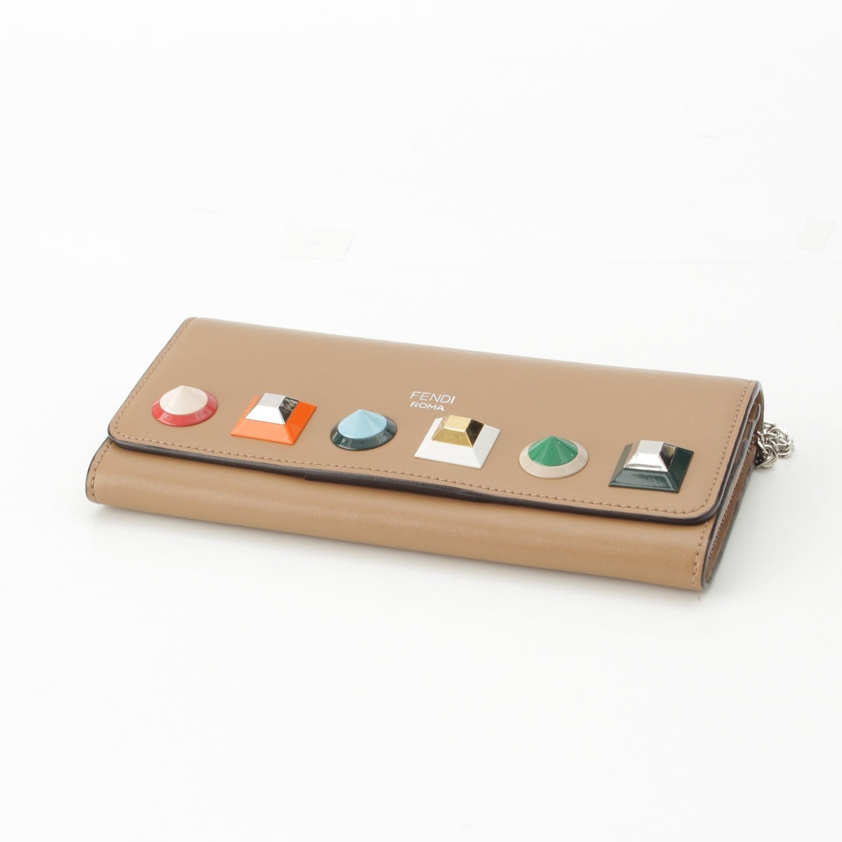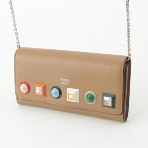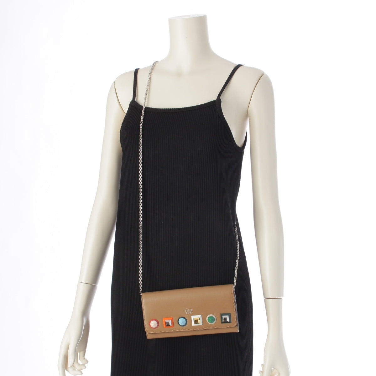 FENDI leather Multi-Stud Purse Chain Wallet bag 8M0365 beige