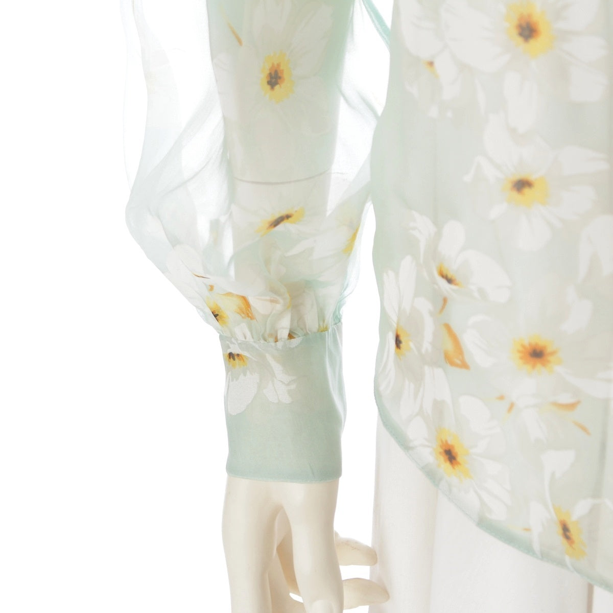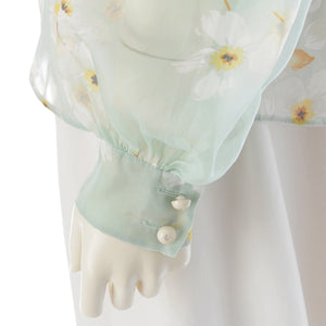 VALENTINO silk Floral Print Ribbon Ruffle blouse Long Sleeve Shirt Tops Mint green 38