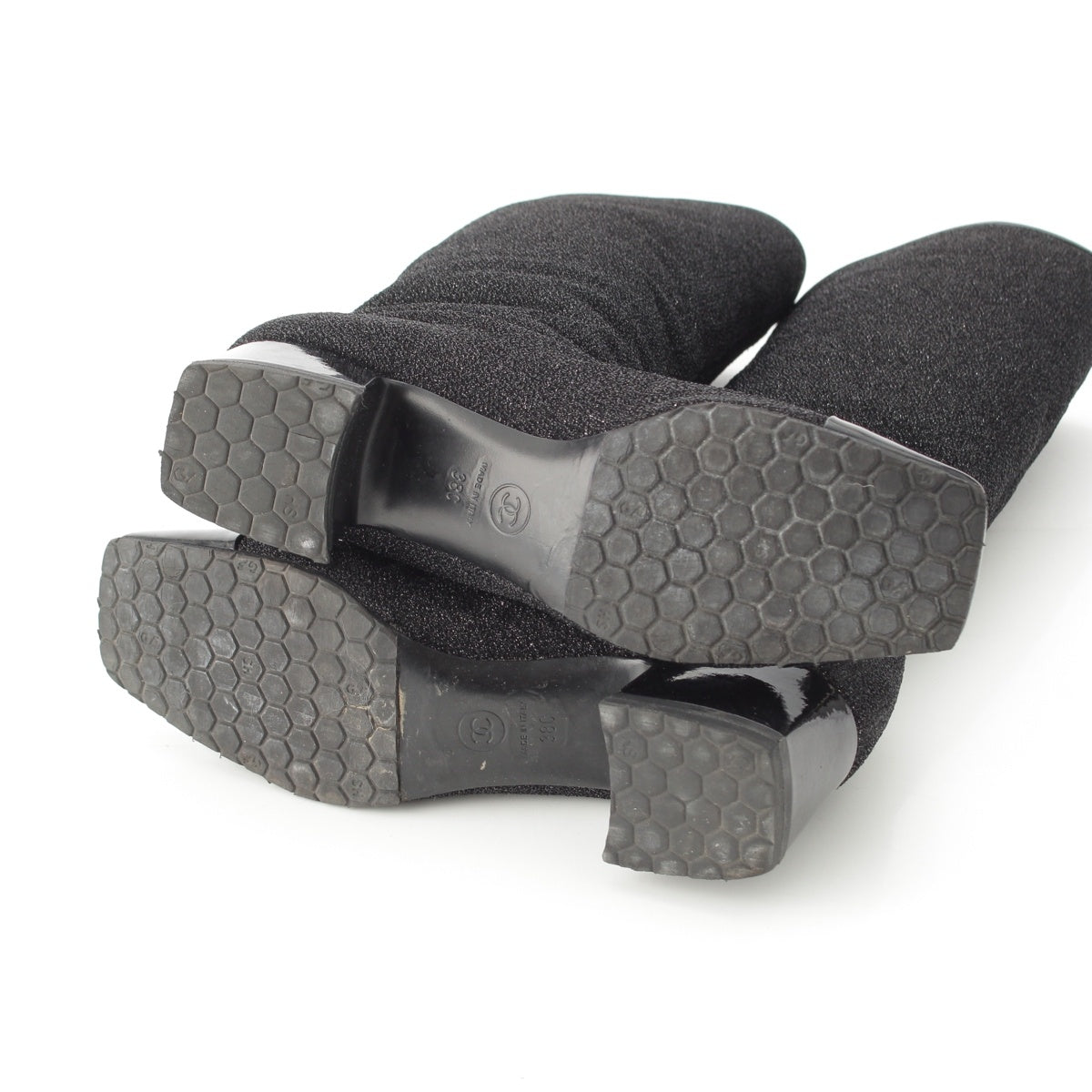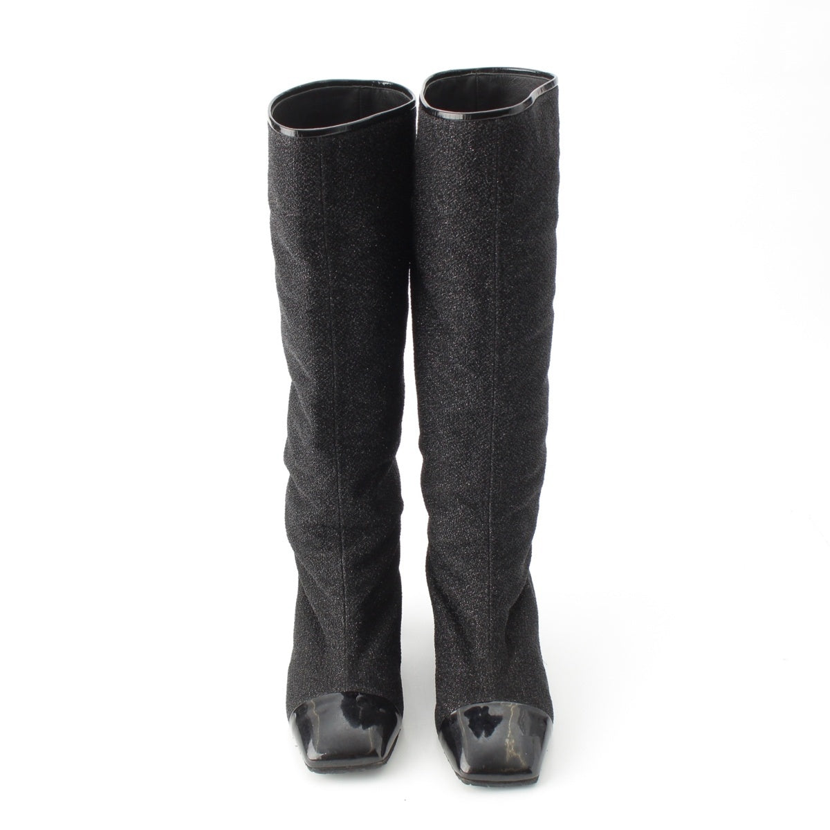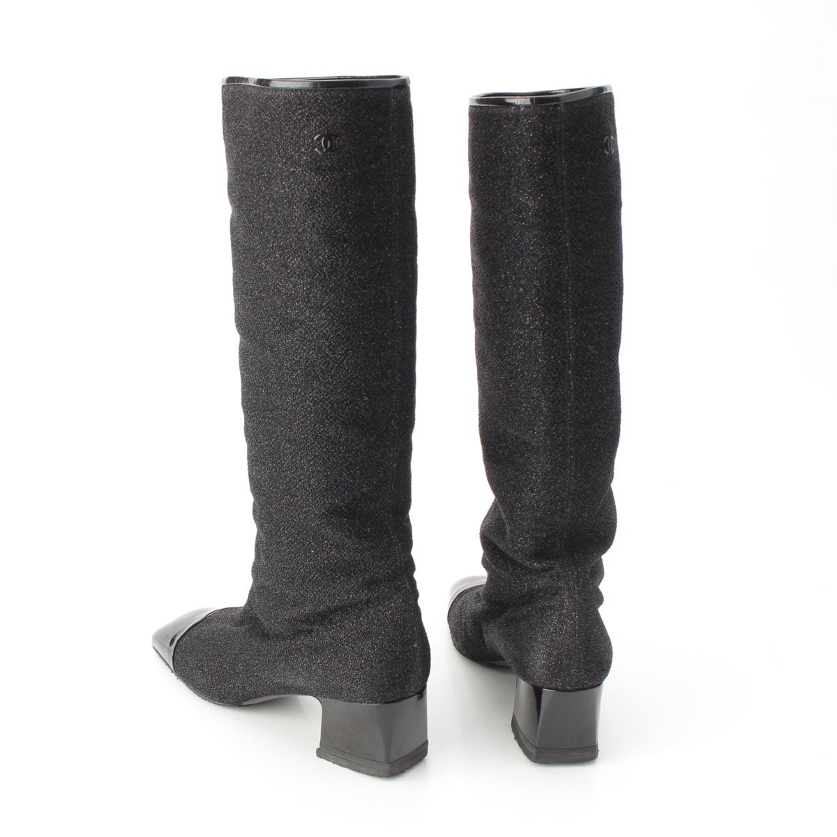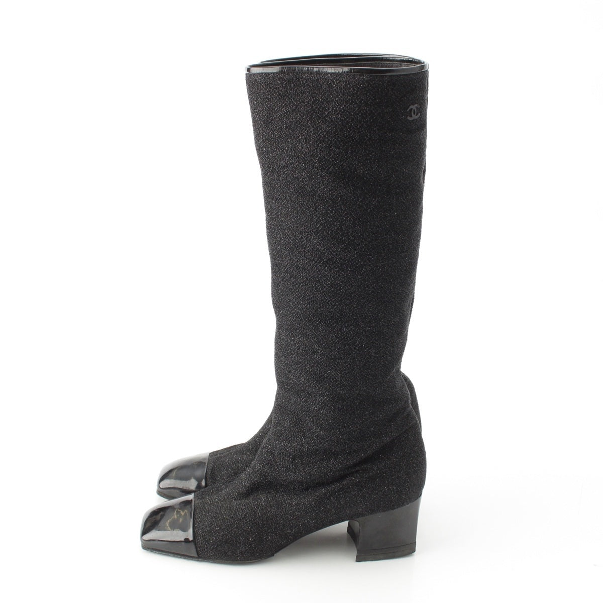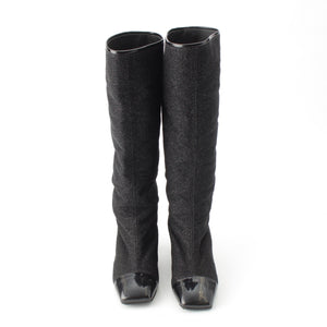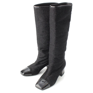 CHANEL COCO Mark Glitter Long Heels boots G33220 black 38C