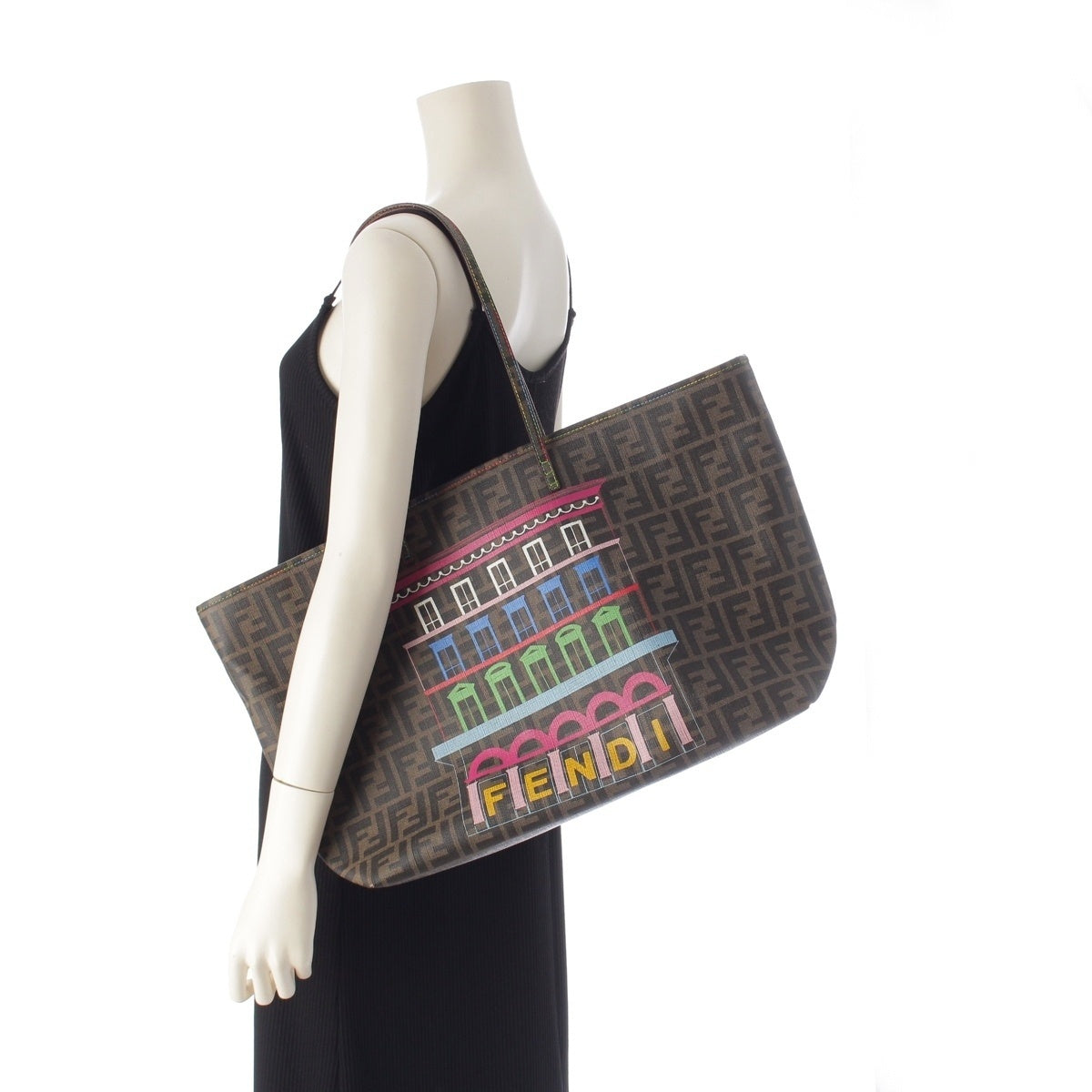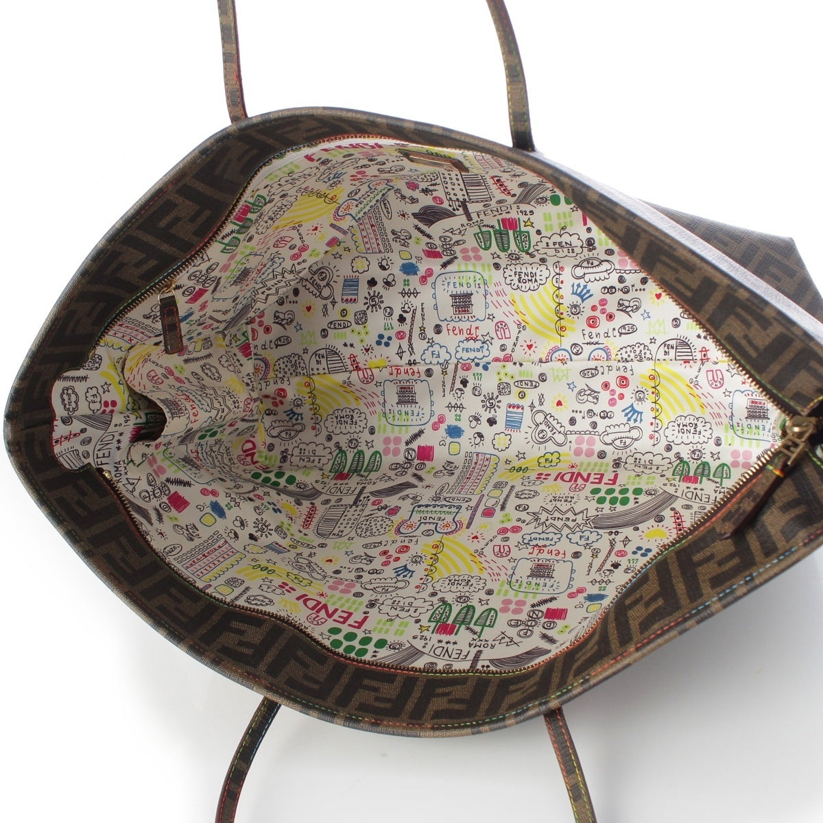 FENDI PVC Zucca Pattern All-over Logo Handbag Shopping tote 8BH199 Brown multicolor