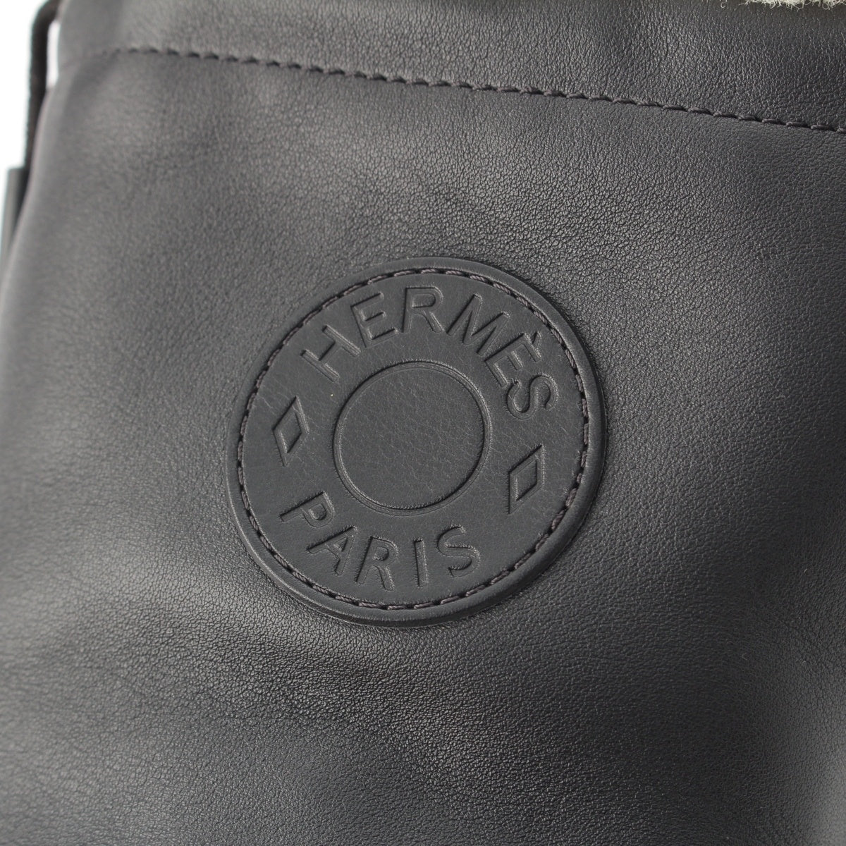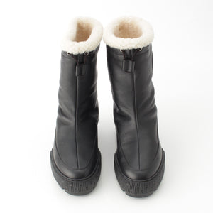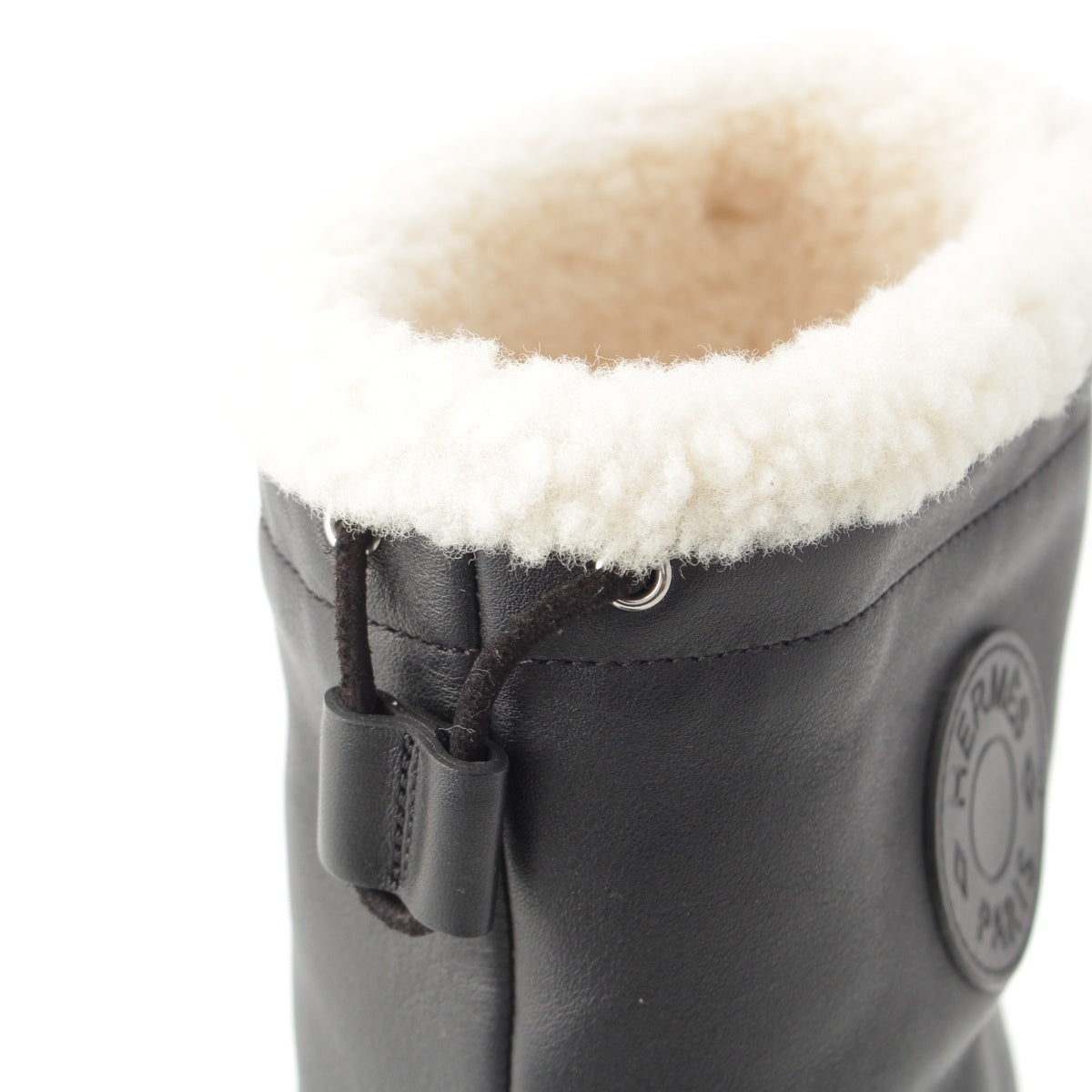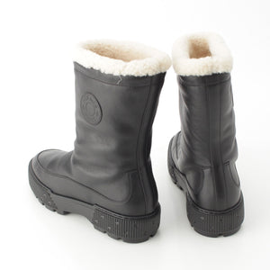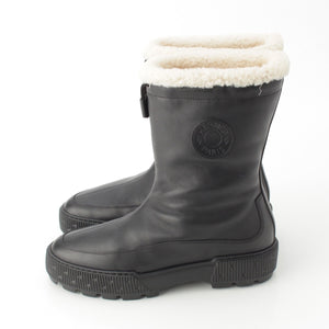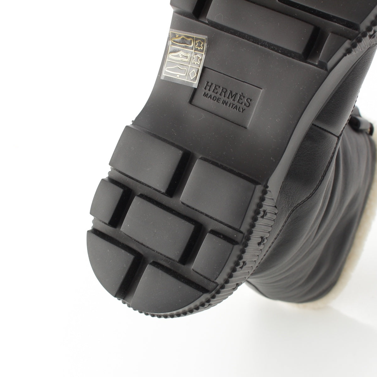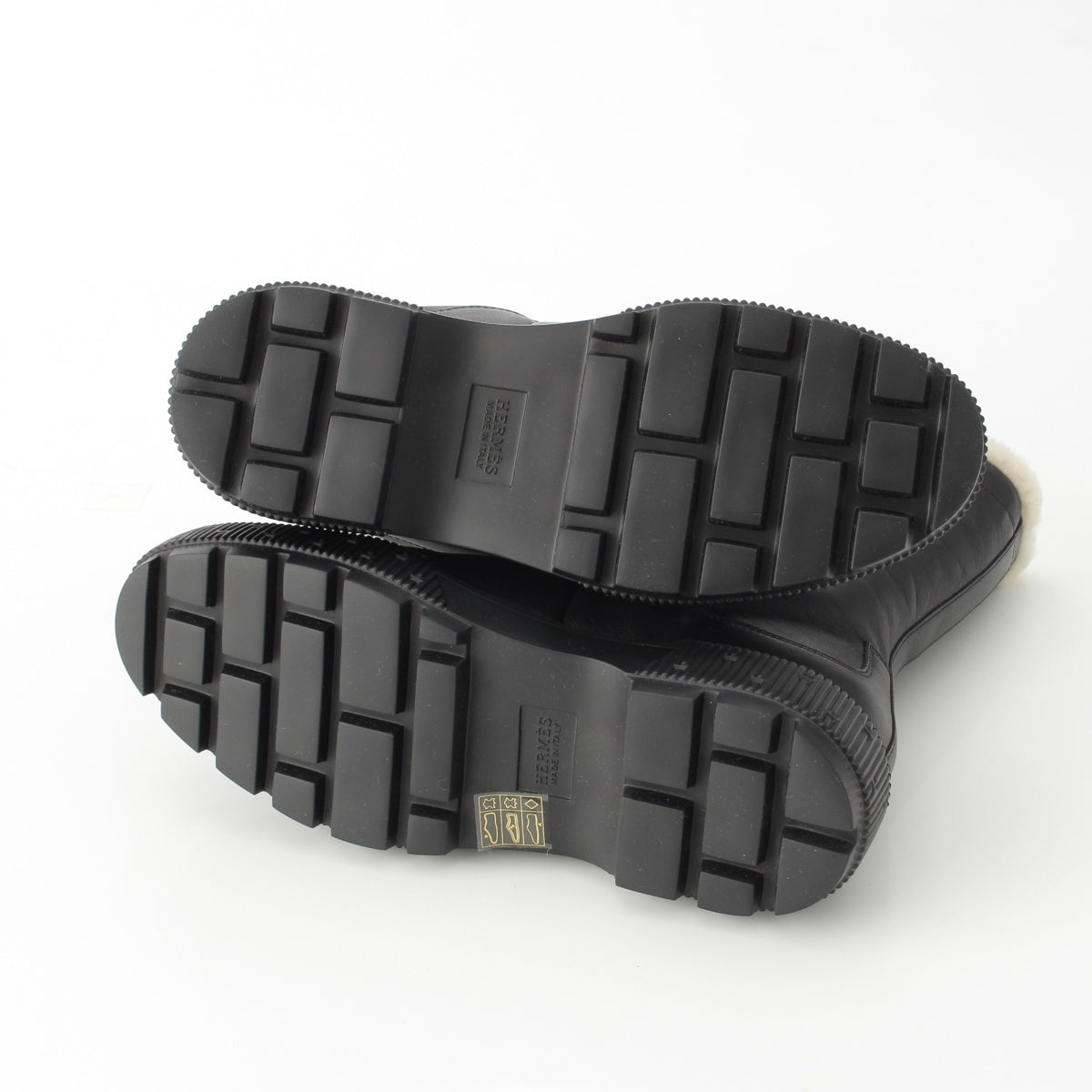 HERMES Journey leather Logo Mouton Ankle boots shoes black 36