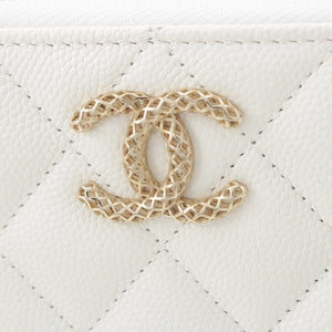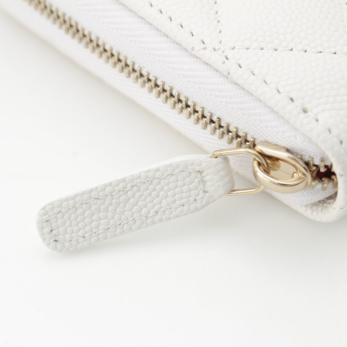 CHANEL Caviar skin COCO Mark Matrasse Purse Wallet Random Serial white