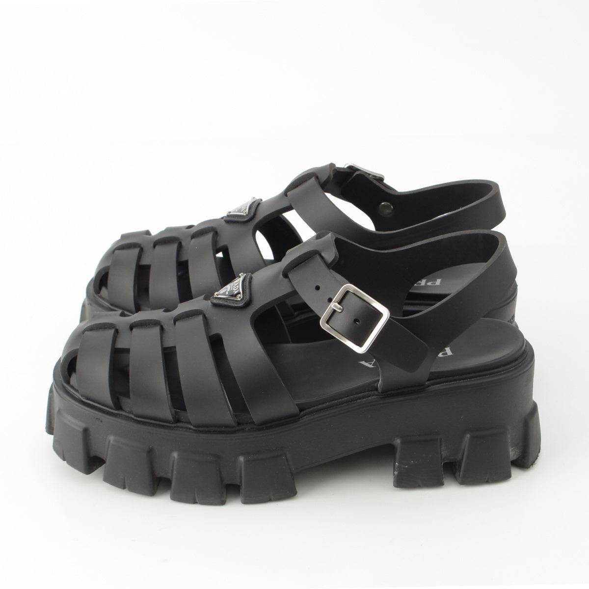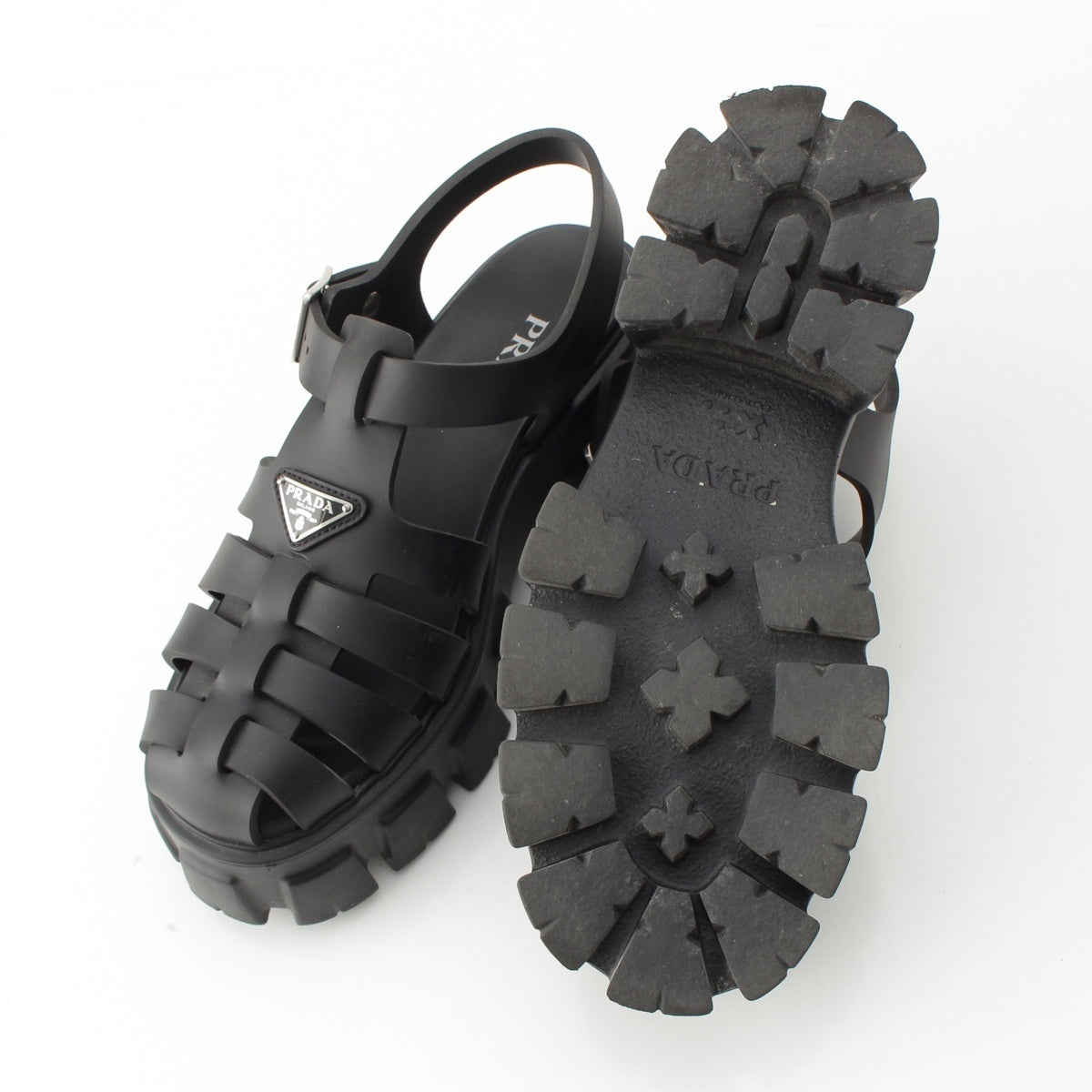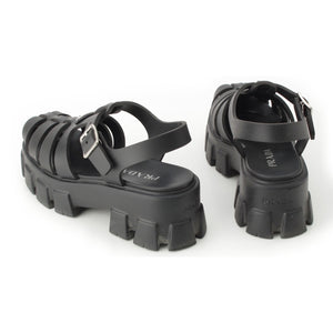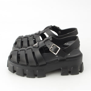 PRADA monolith rubber Strap Triangle Logo Sandals black 39