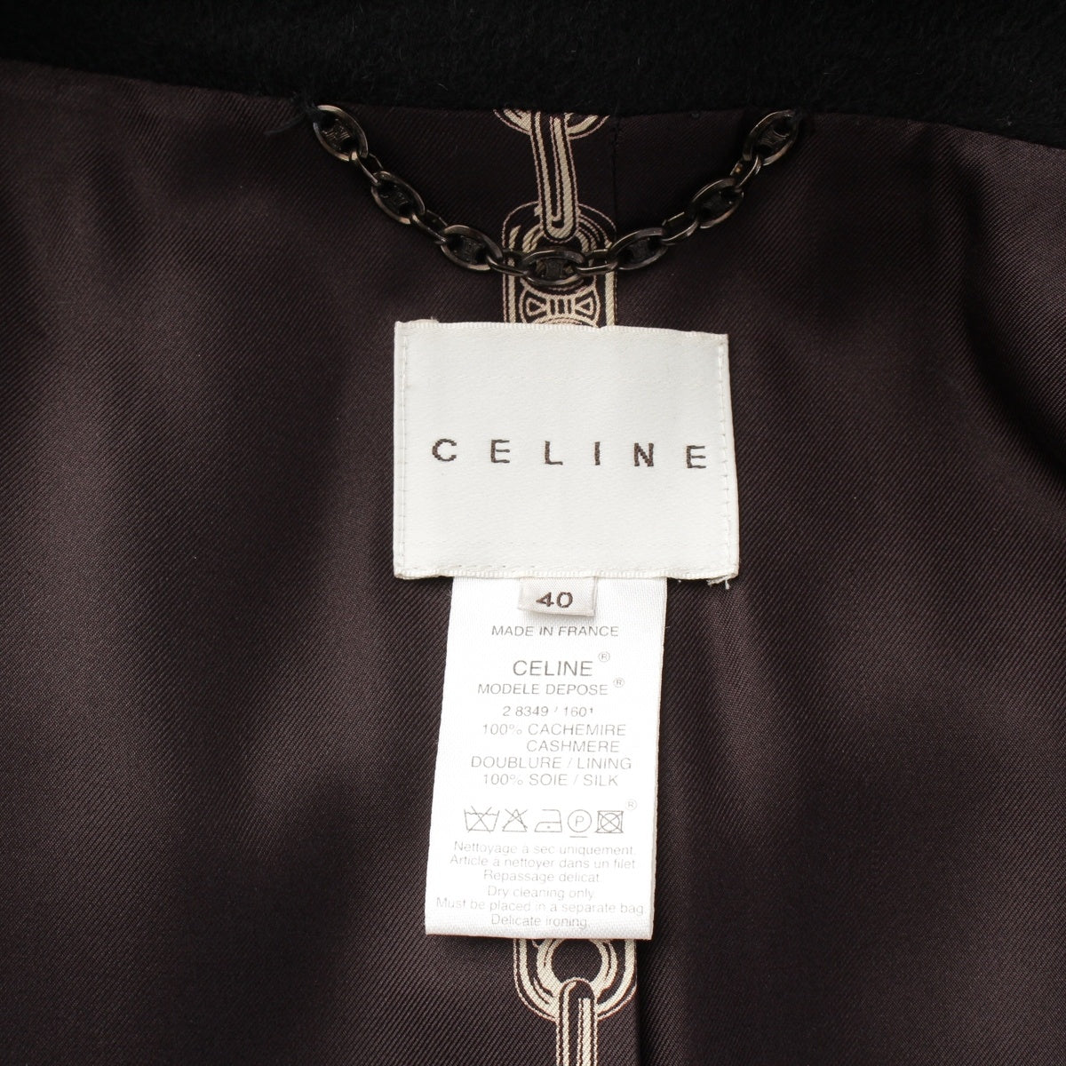 CELINE cashmere silk Belted coat Long Outerwear black 40