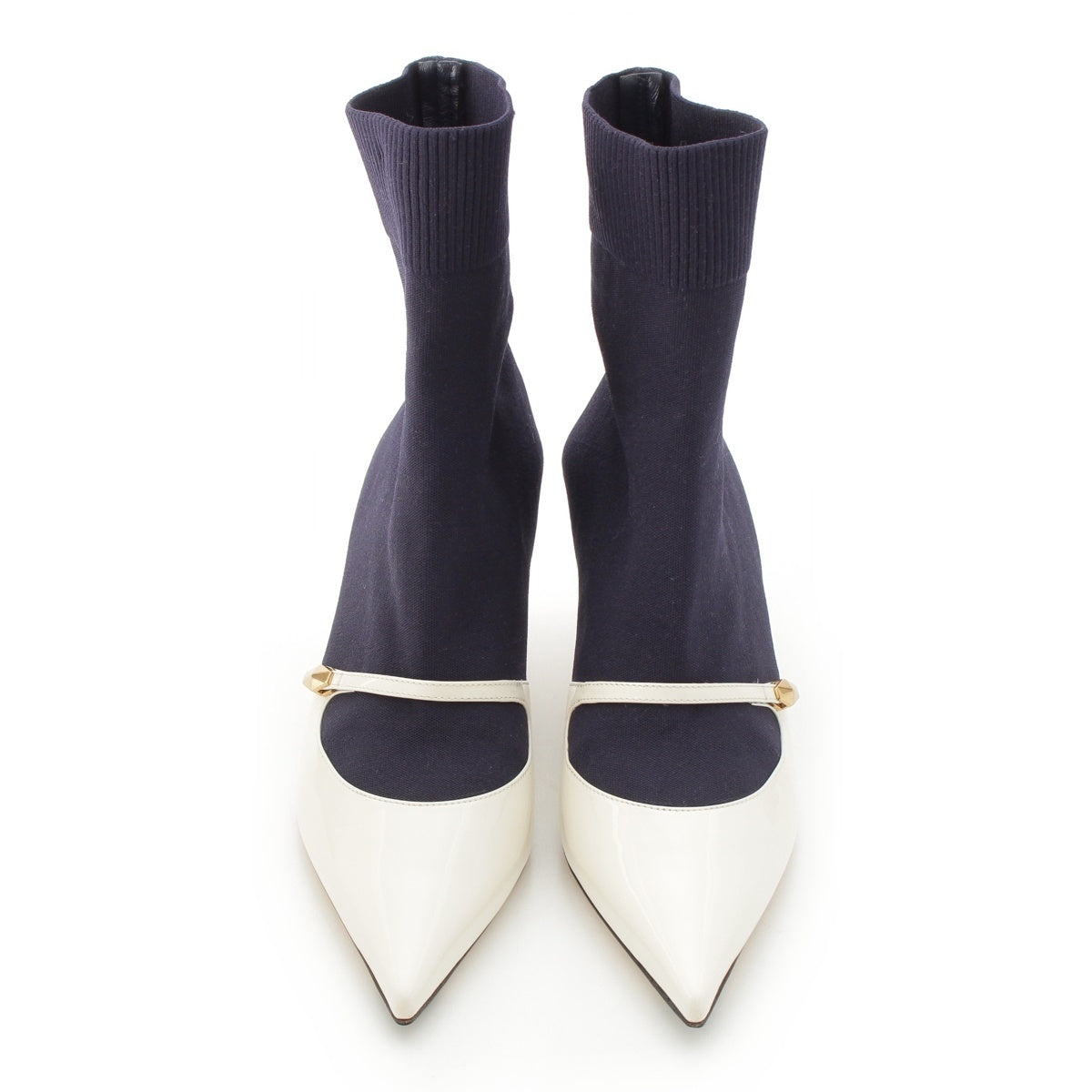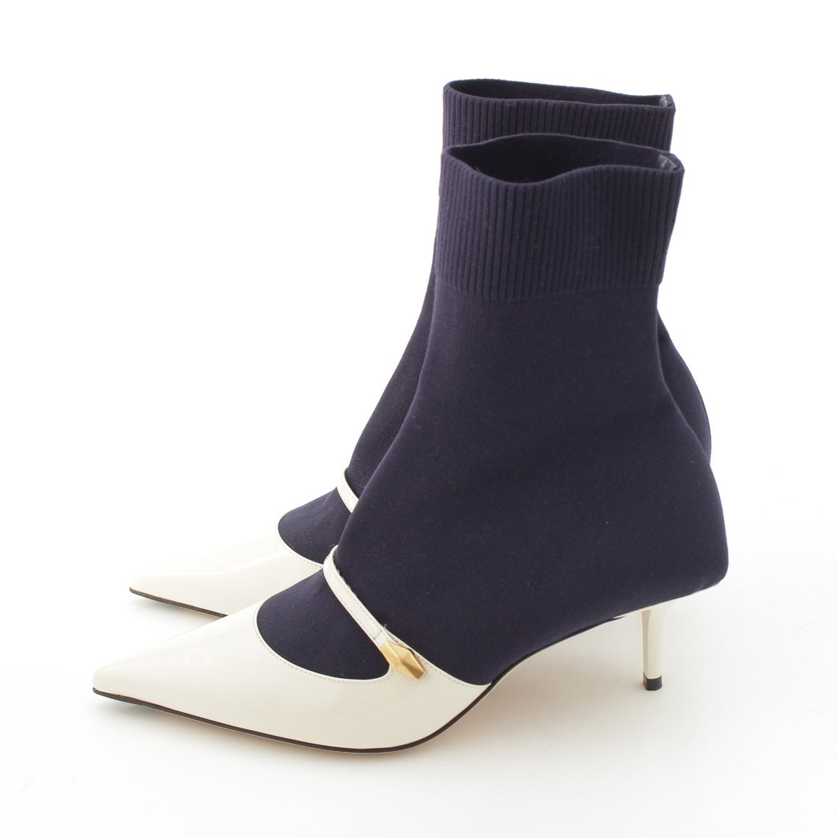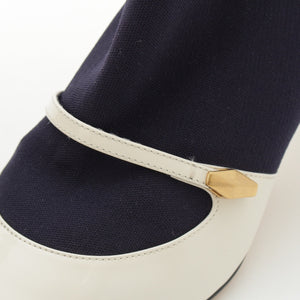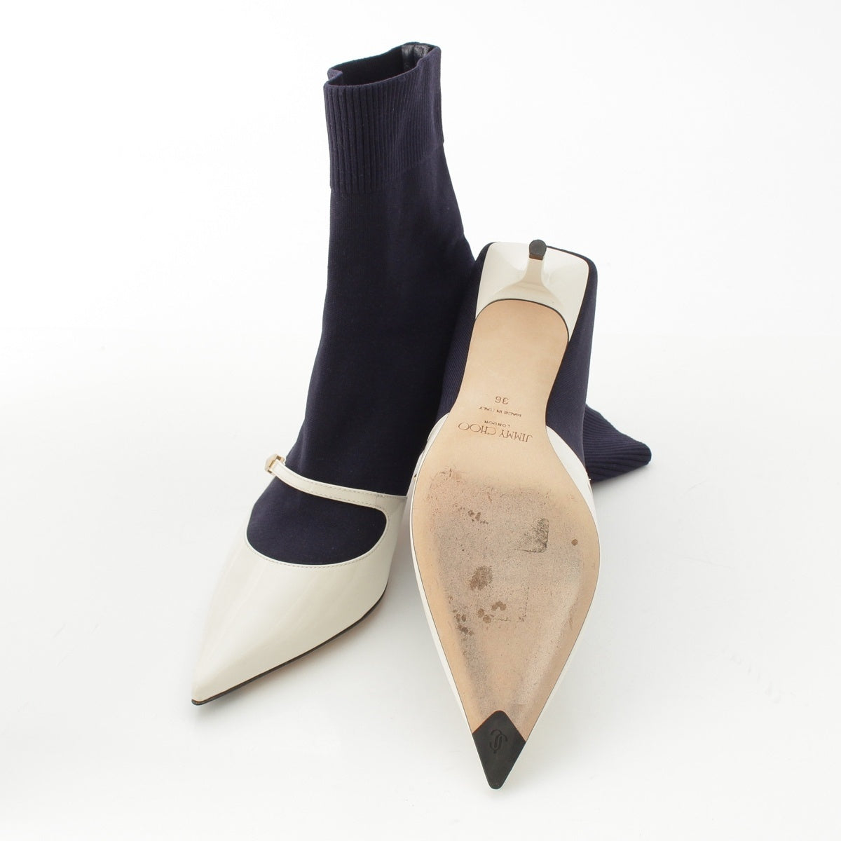 JIMMY CHOO Knit patent leather Carolyn Ankle boots 60 White navy 36