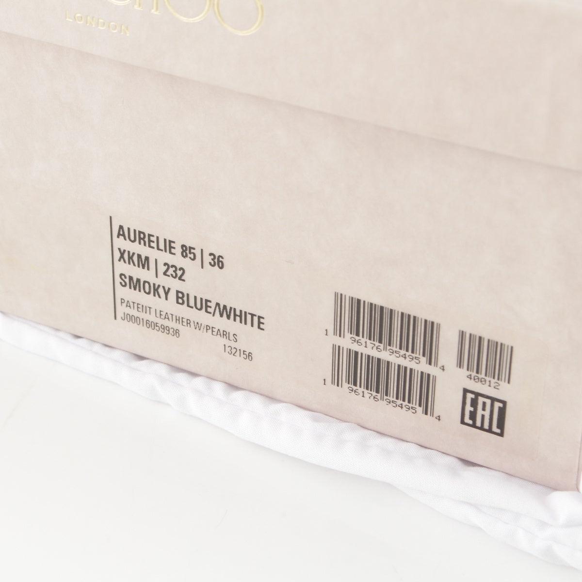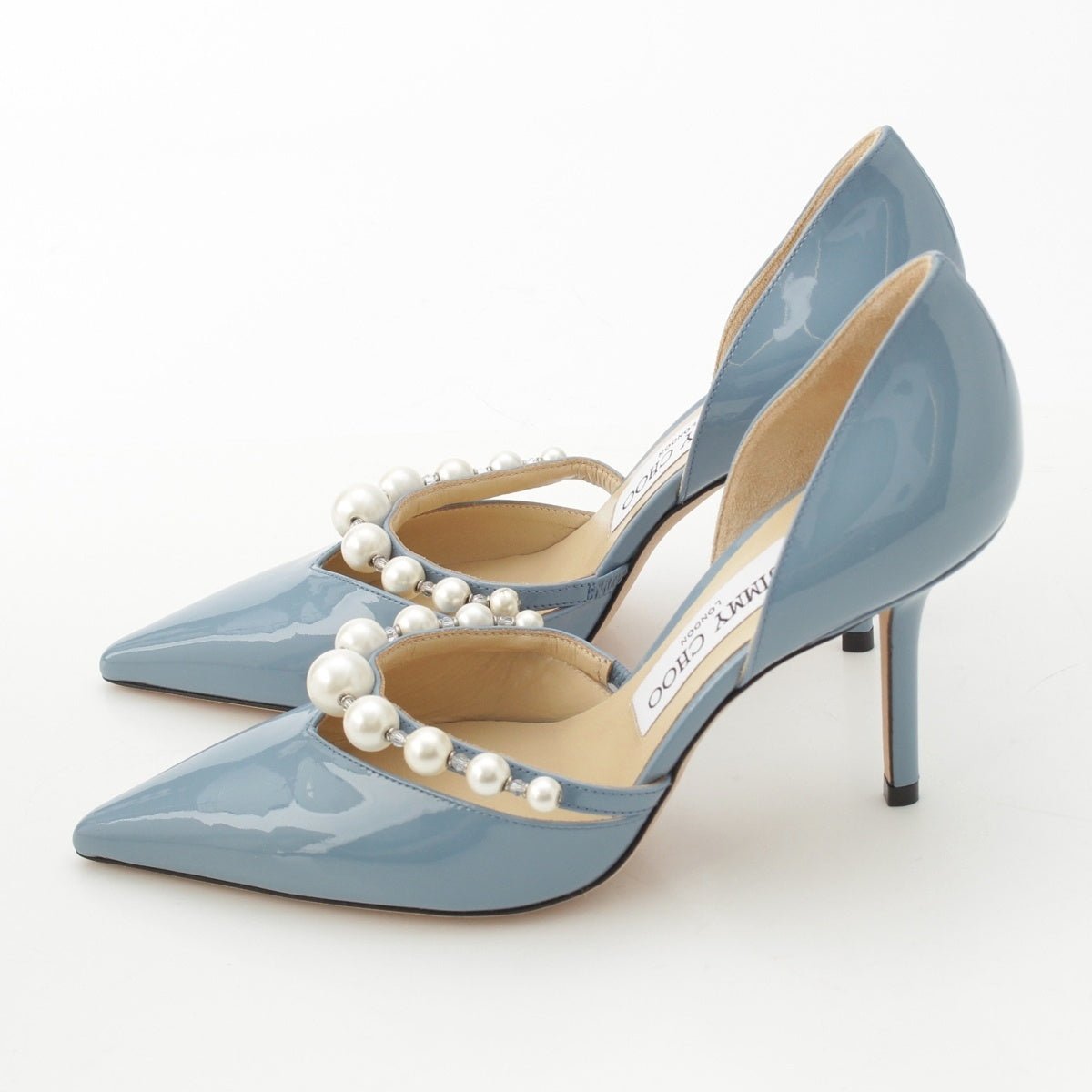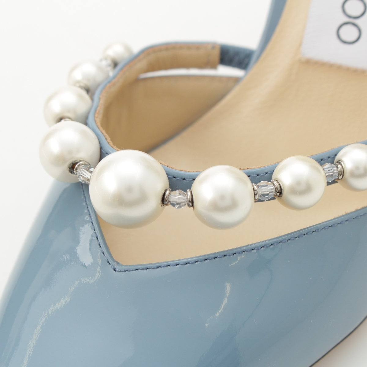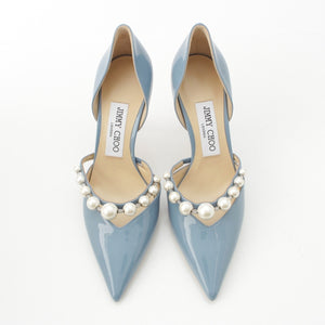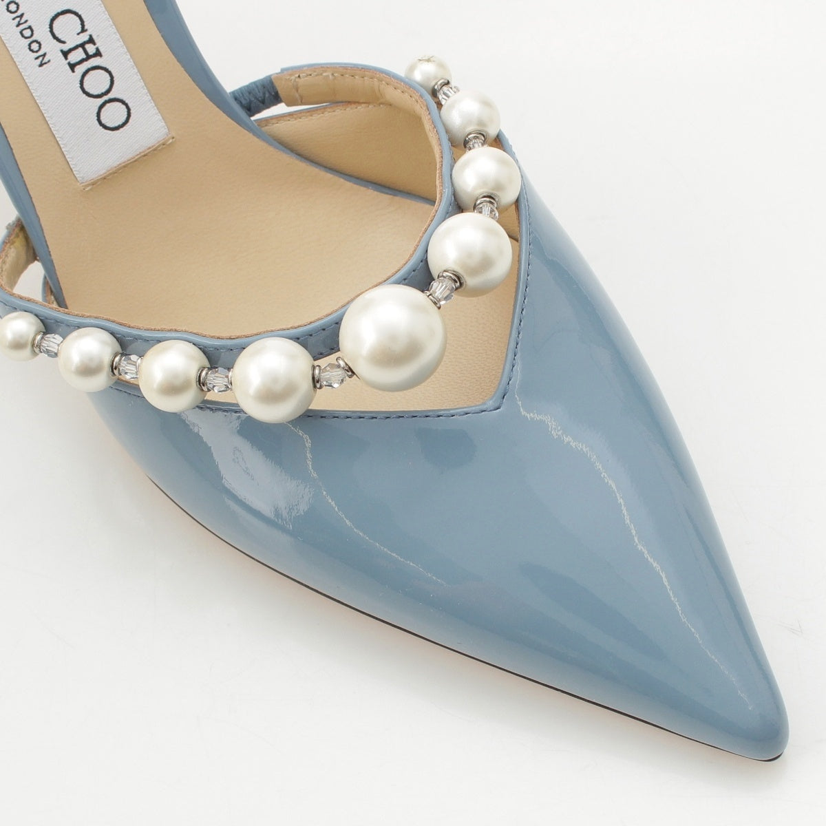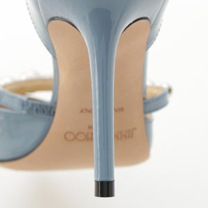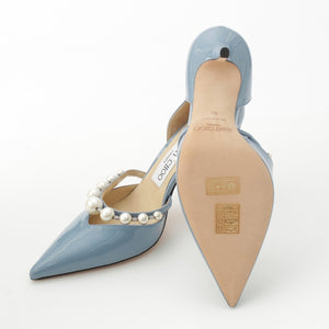 JIMMY CHOO AURELIE 85 patent Pearl and jewel pumps Mule Heel Smokey blue 36