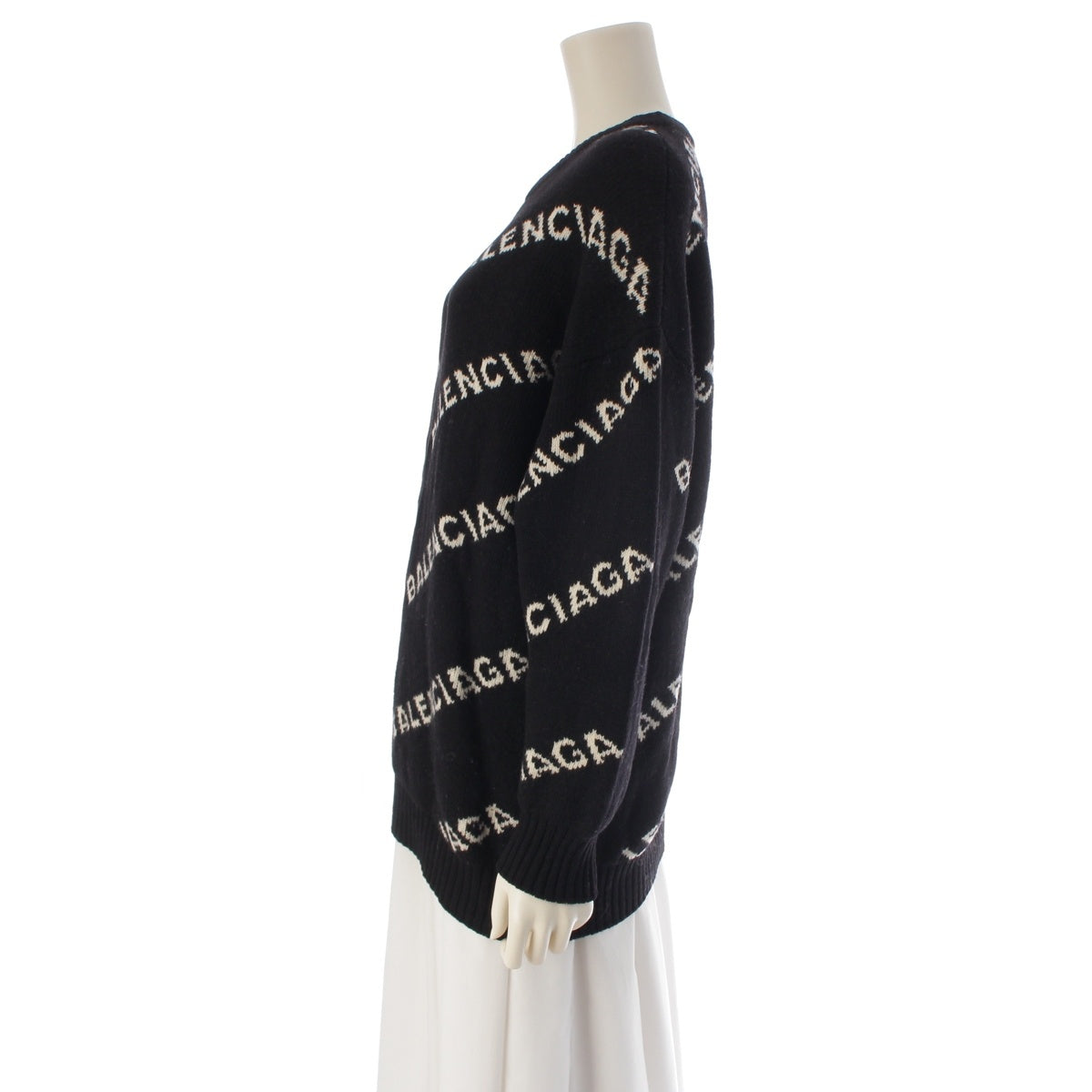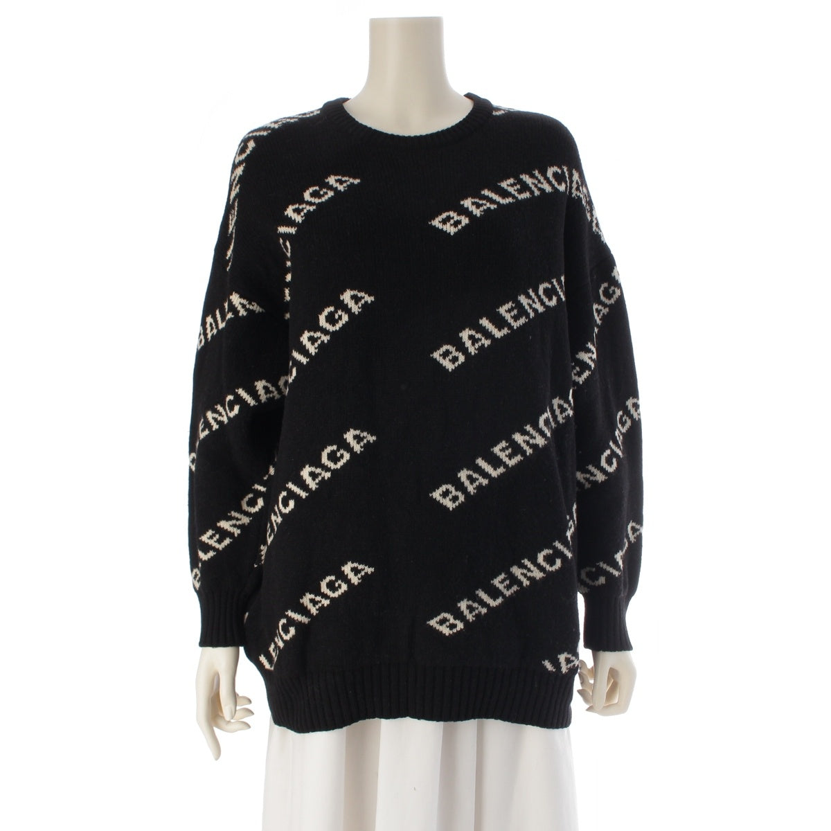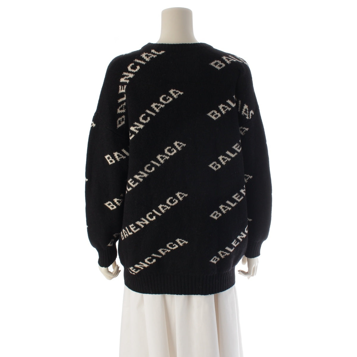 BALENCIAGA wool Logo jacquard sweater Tops knit Black White M