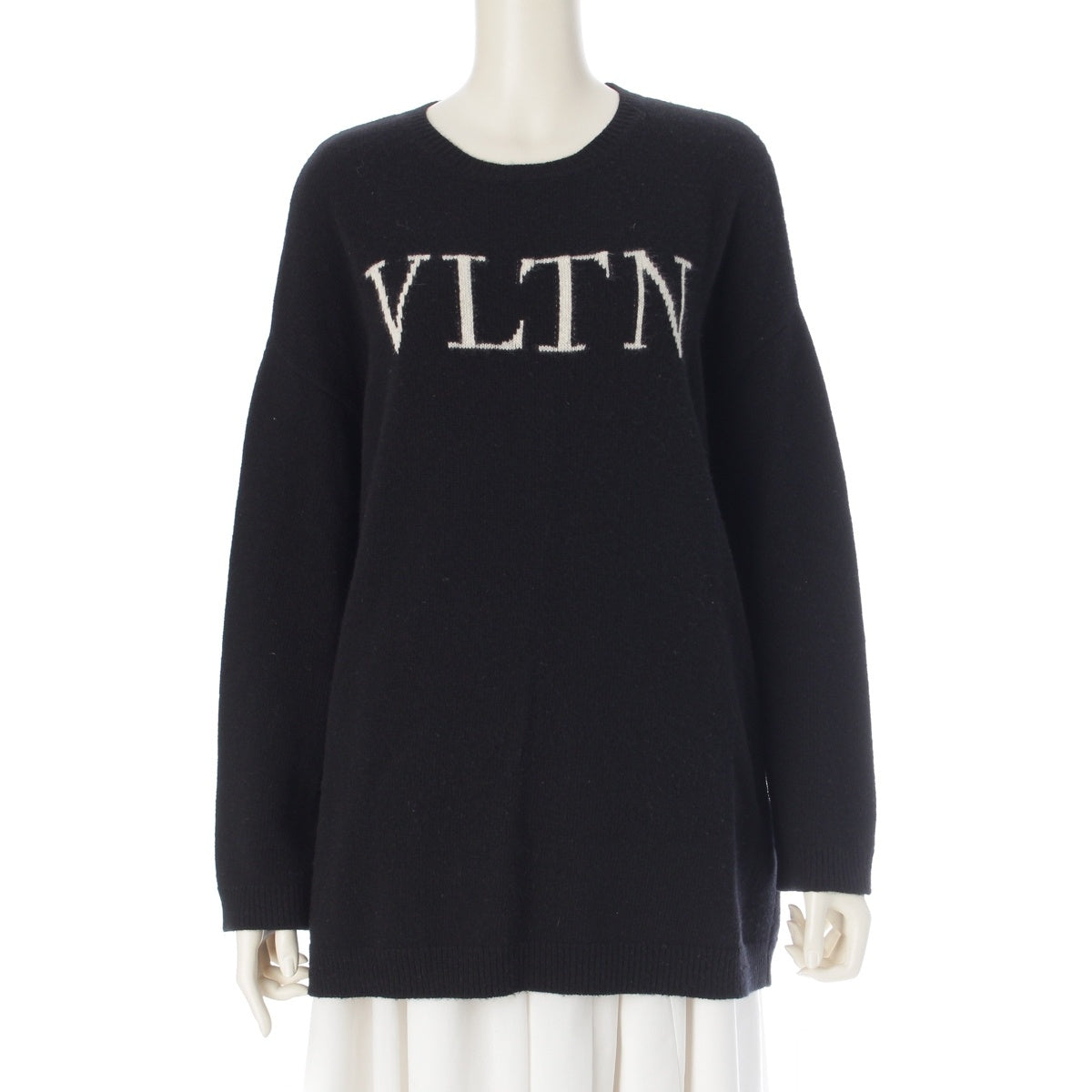 VALENTINO Cashmere Wool VLTN logo knit sweater tops black XS