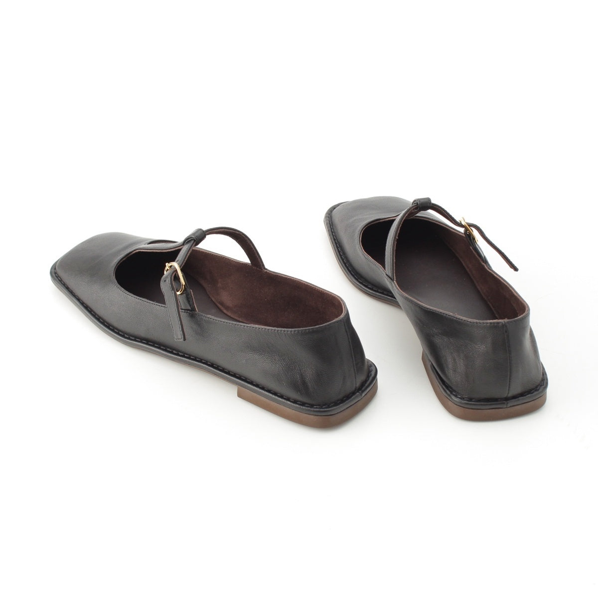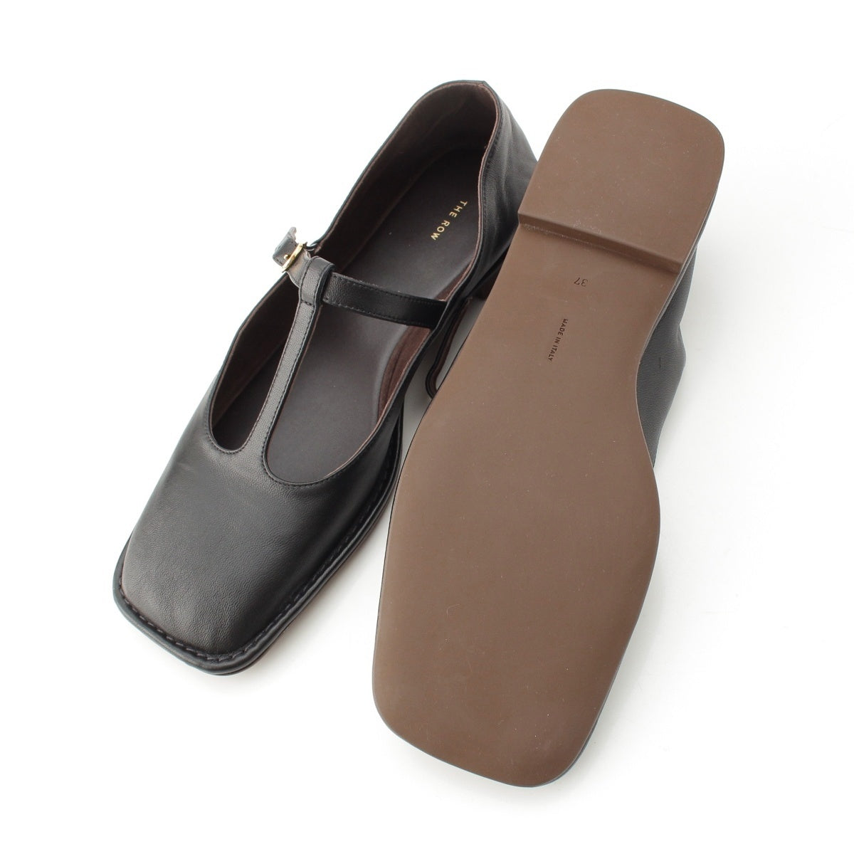 THE ROW leather SQUARE T-STRAP T-strap Mary Jane Flats pumps shoes F1599SL3 black 37