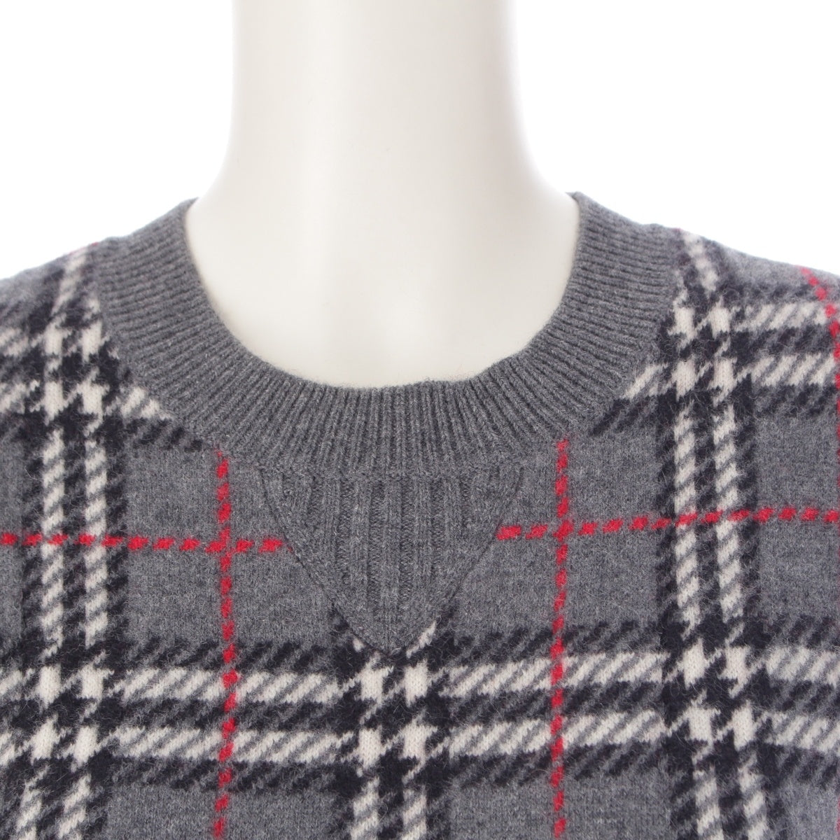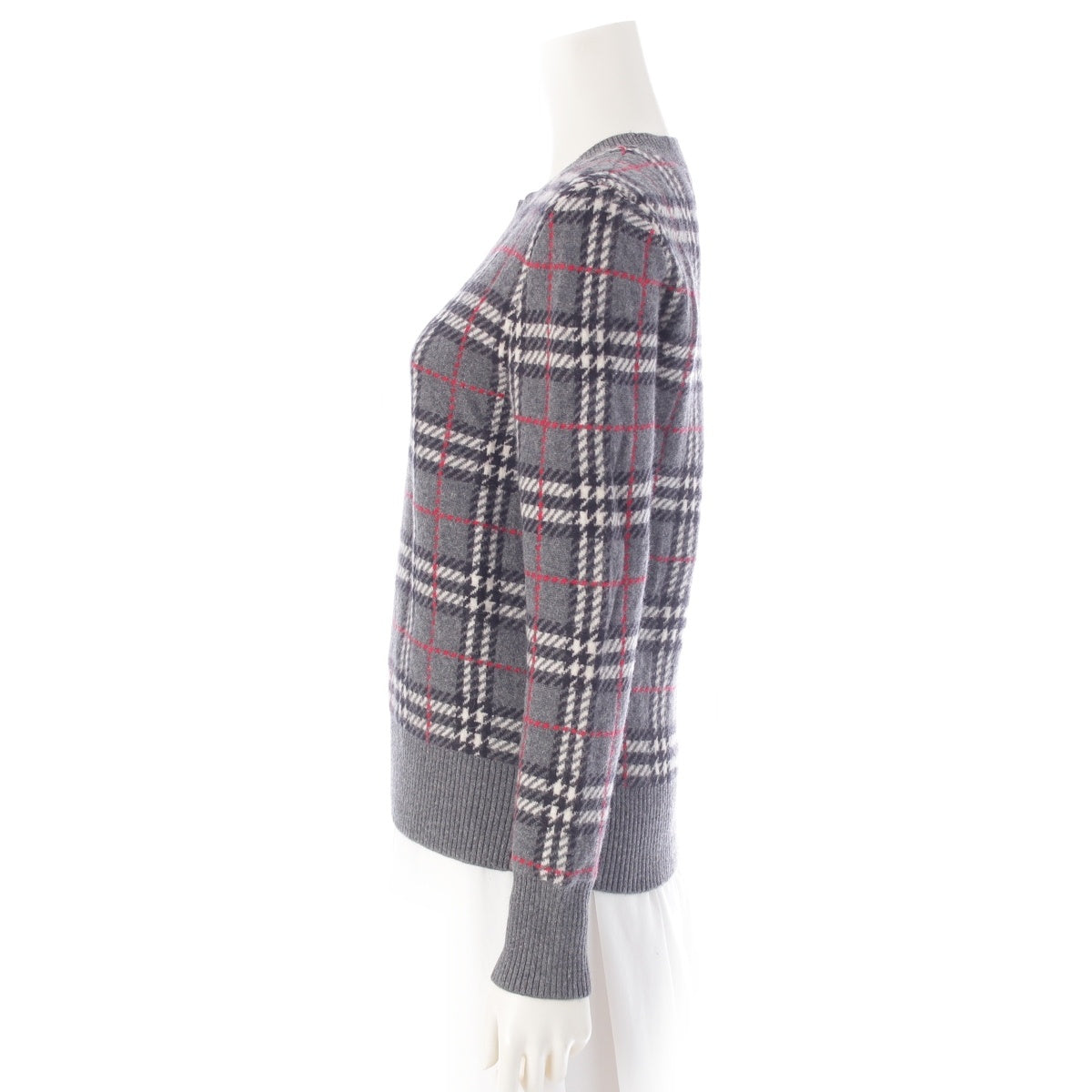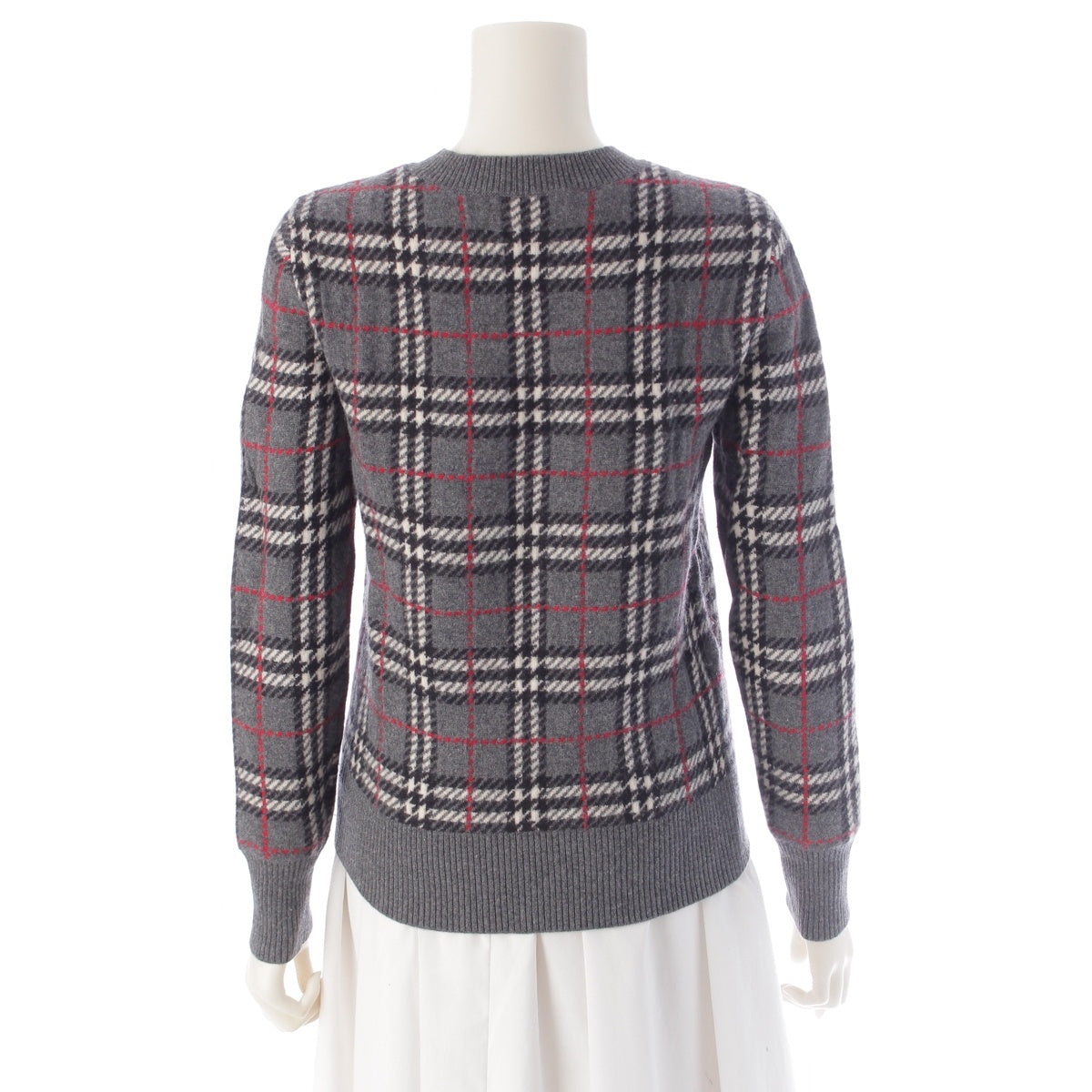 BURBERRY cashmere Check Pattern Knit sweater tops 8007927 gray XXS