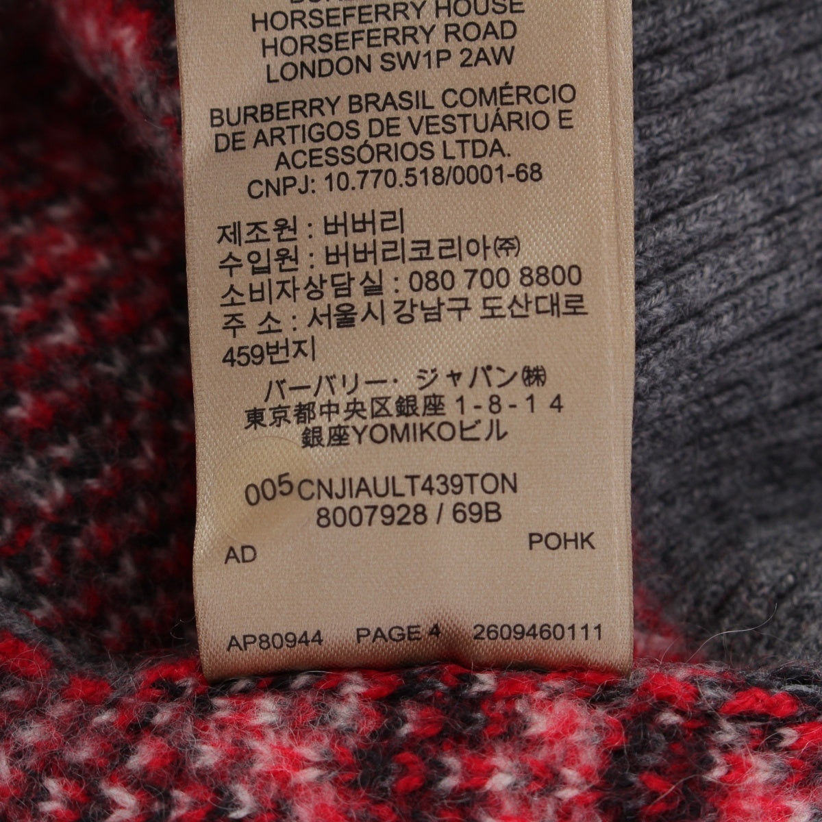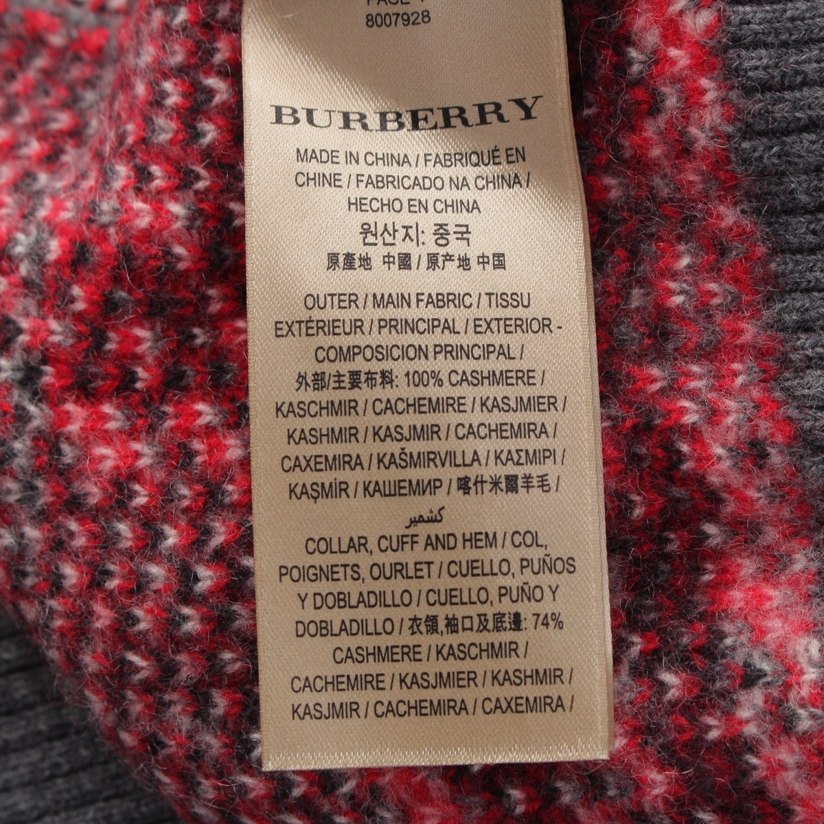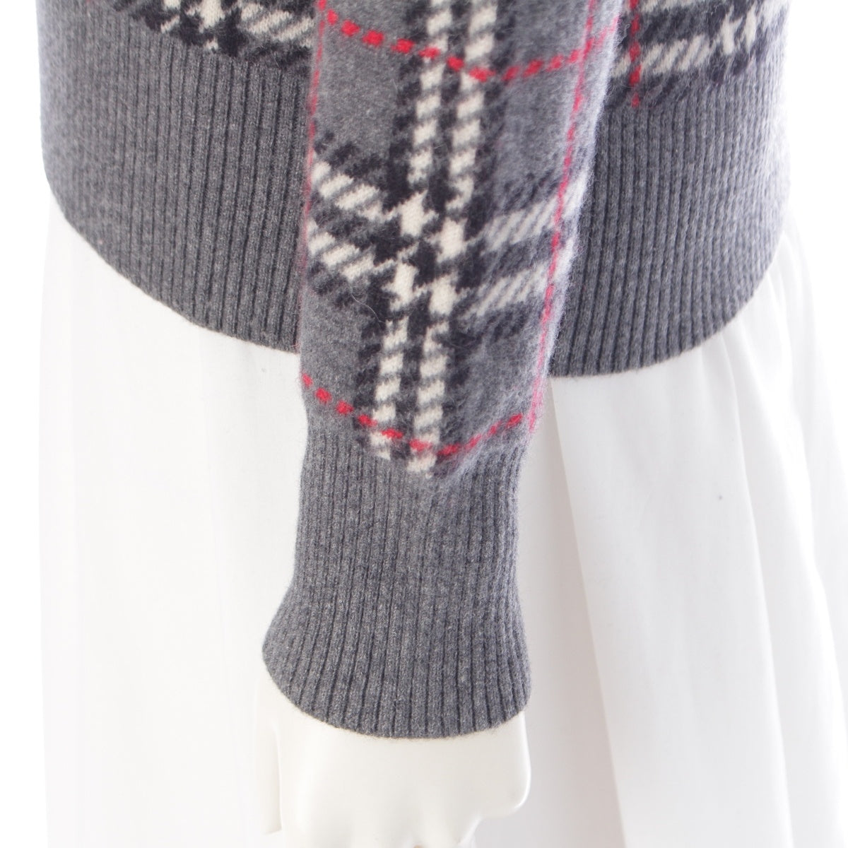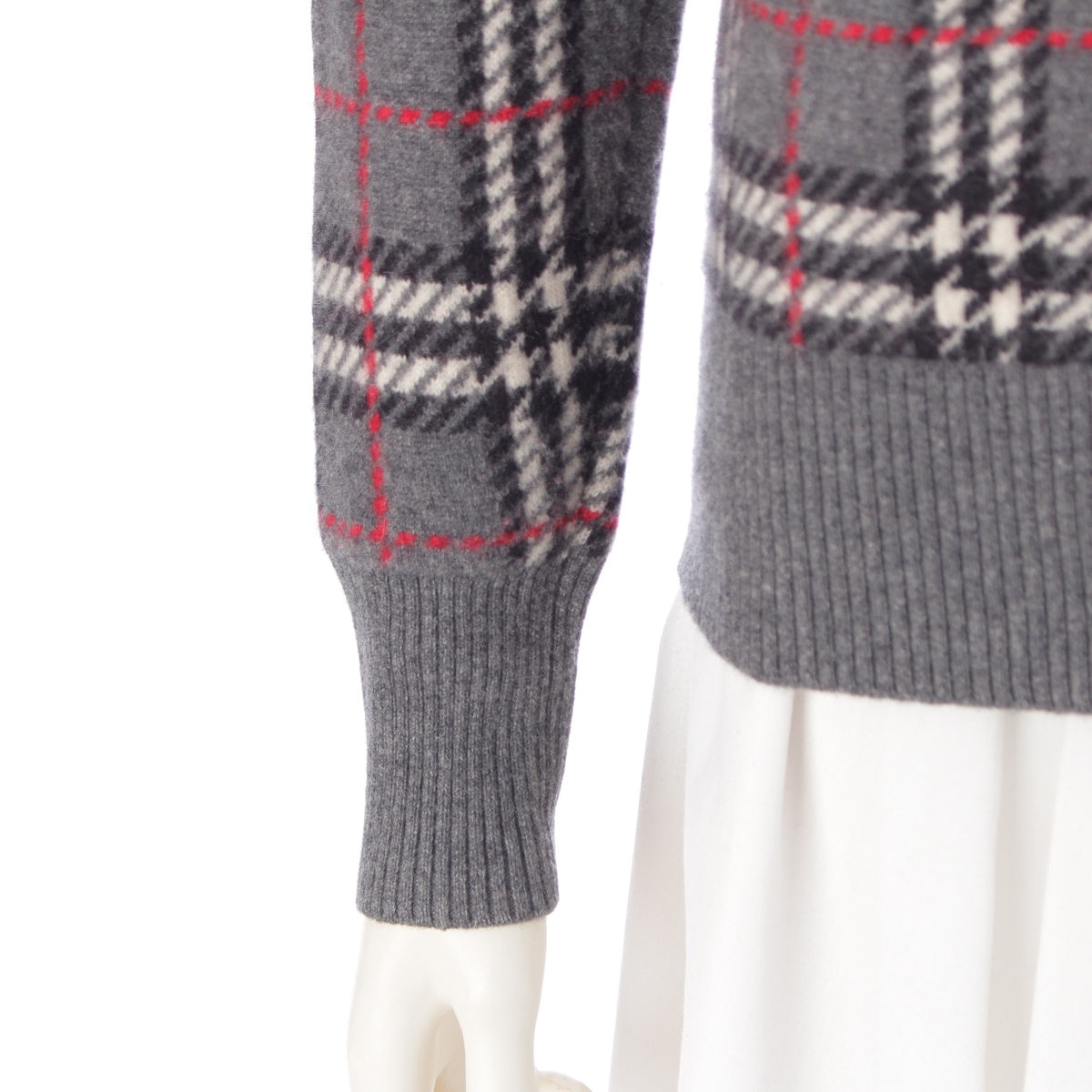 BURBERRY cashmere Check Pattern Knit sweater tops 8007927 gray XXS
