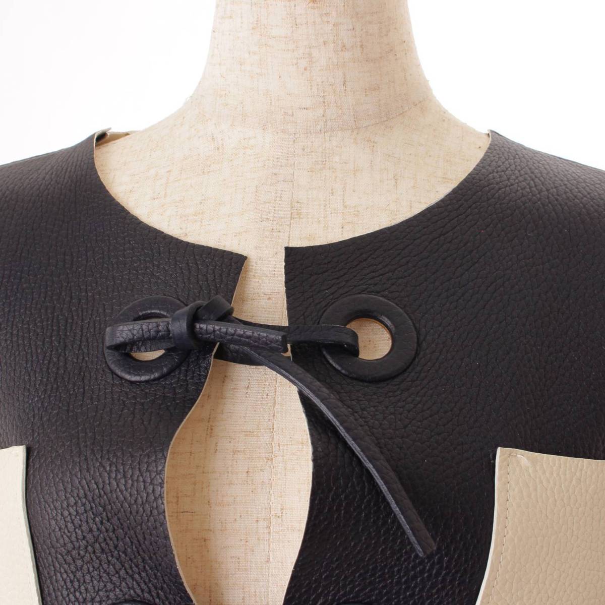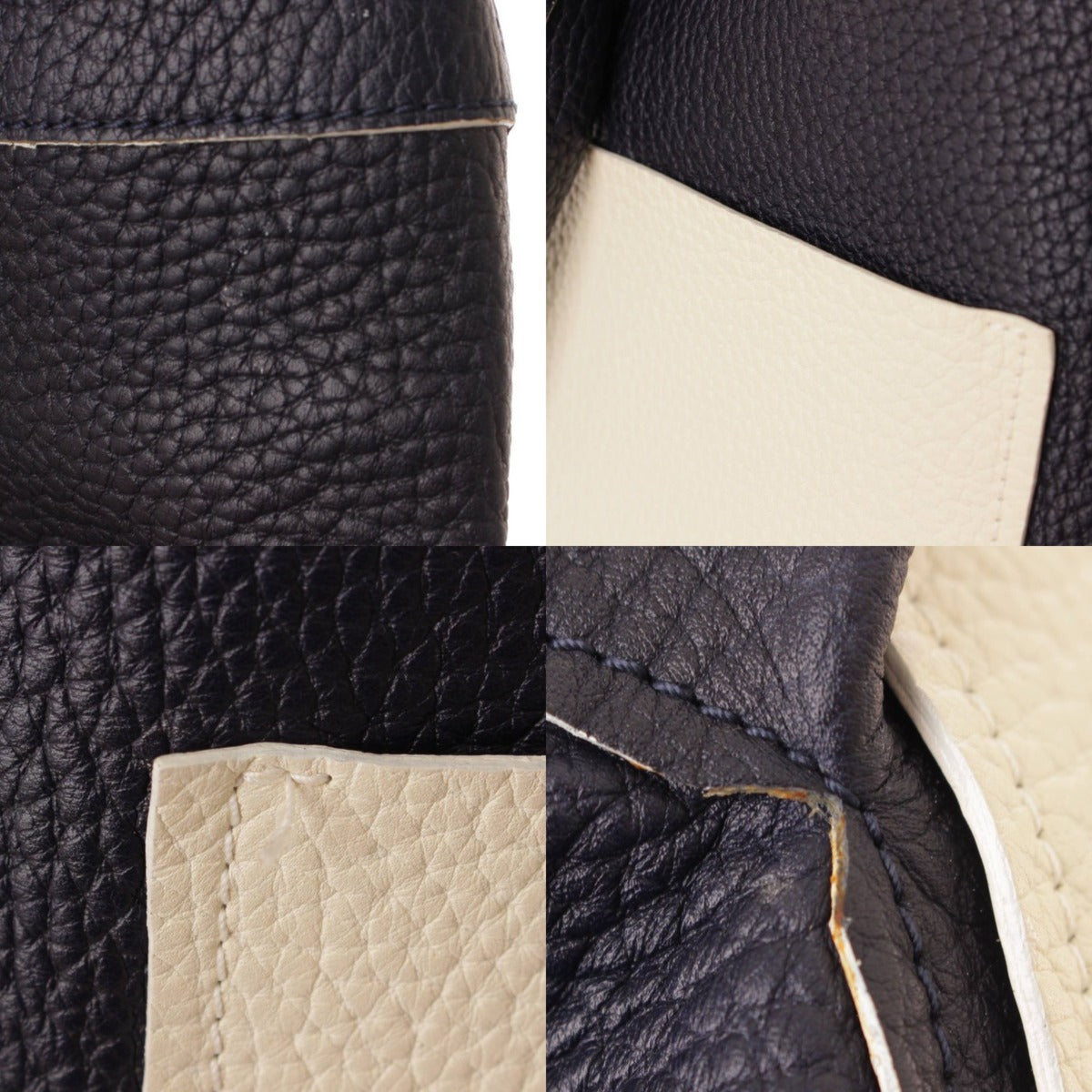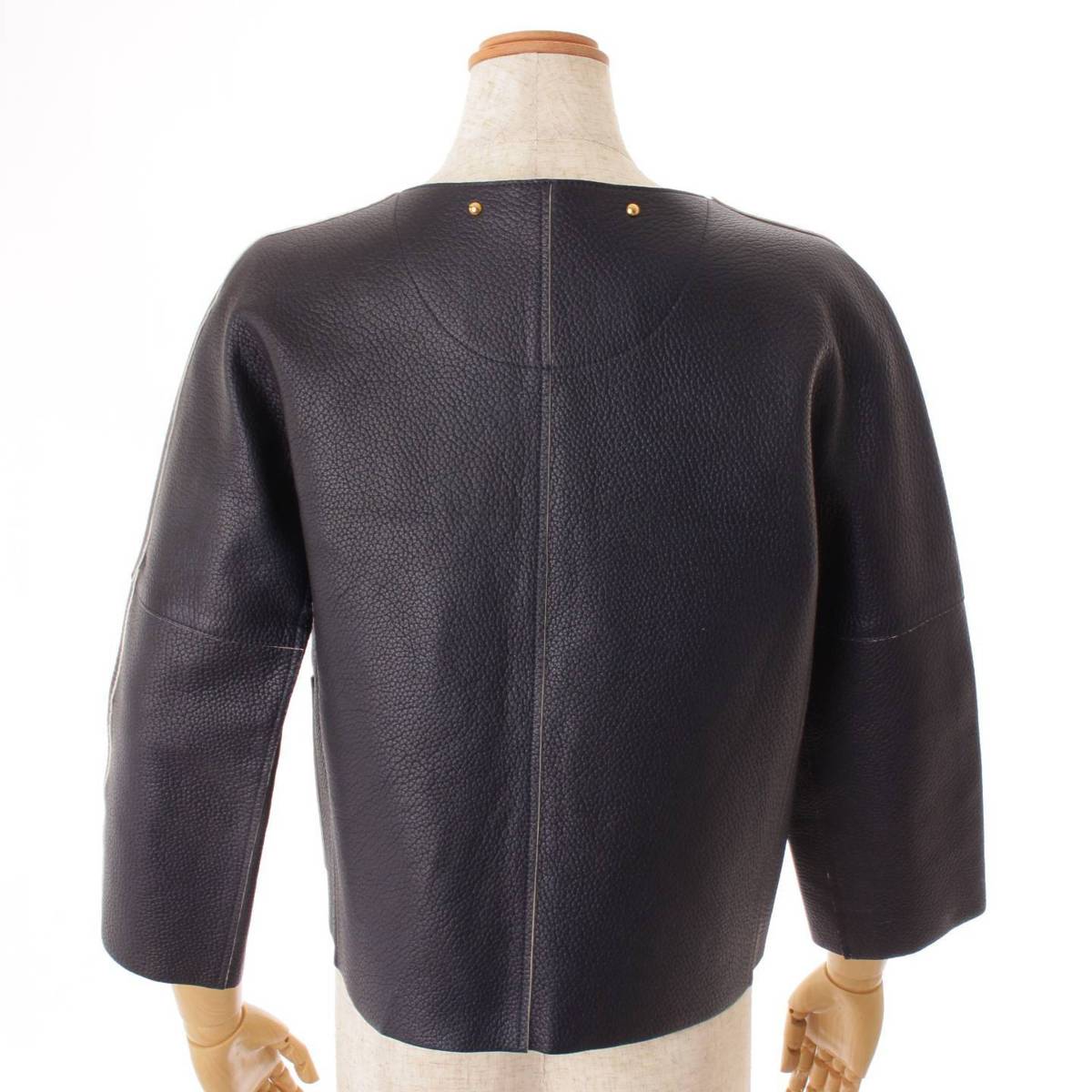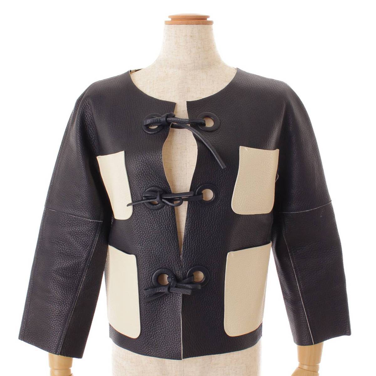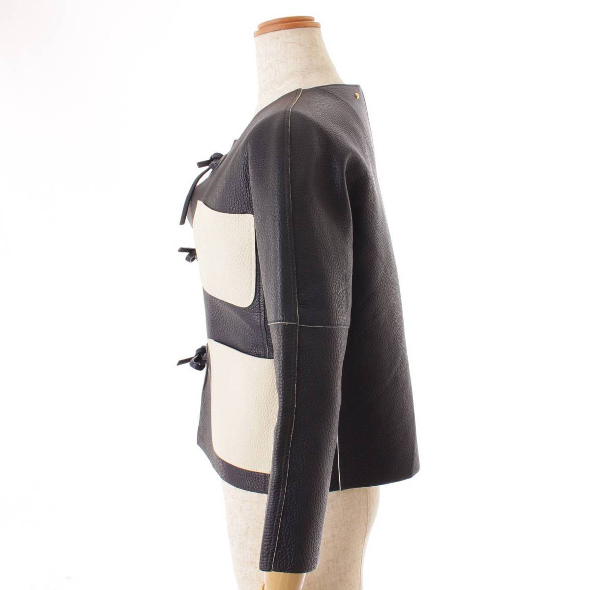 [Louis Vuitton] Louis Vuitton No-collar Leather Jacket Navy x White [Used] [Authenticated and Guaranteed Authentic] 141973