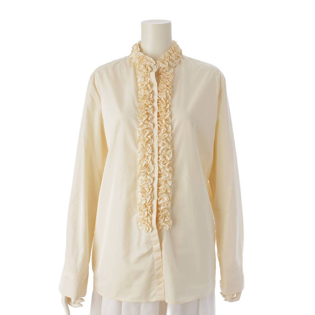 [Jil Sander] Jil Sander 24 Stainless Steel Ruffle Trim Blouse Shirt Top J01DL0101 Almond Beige 34 [Used] [Authenticated and Guaranteed Authentic] 212897