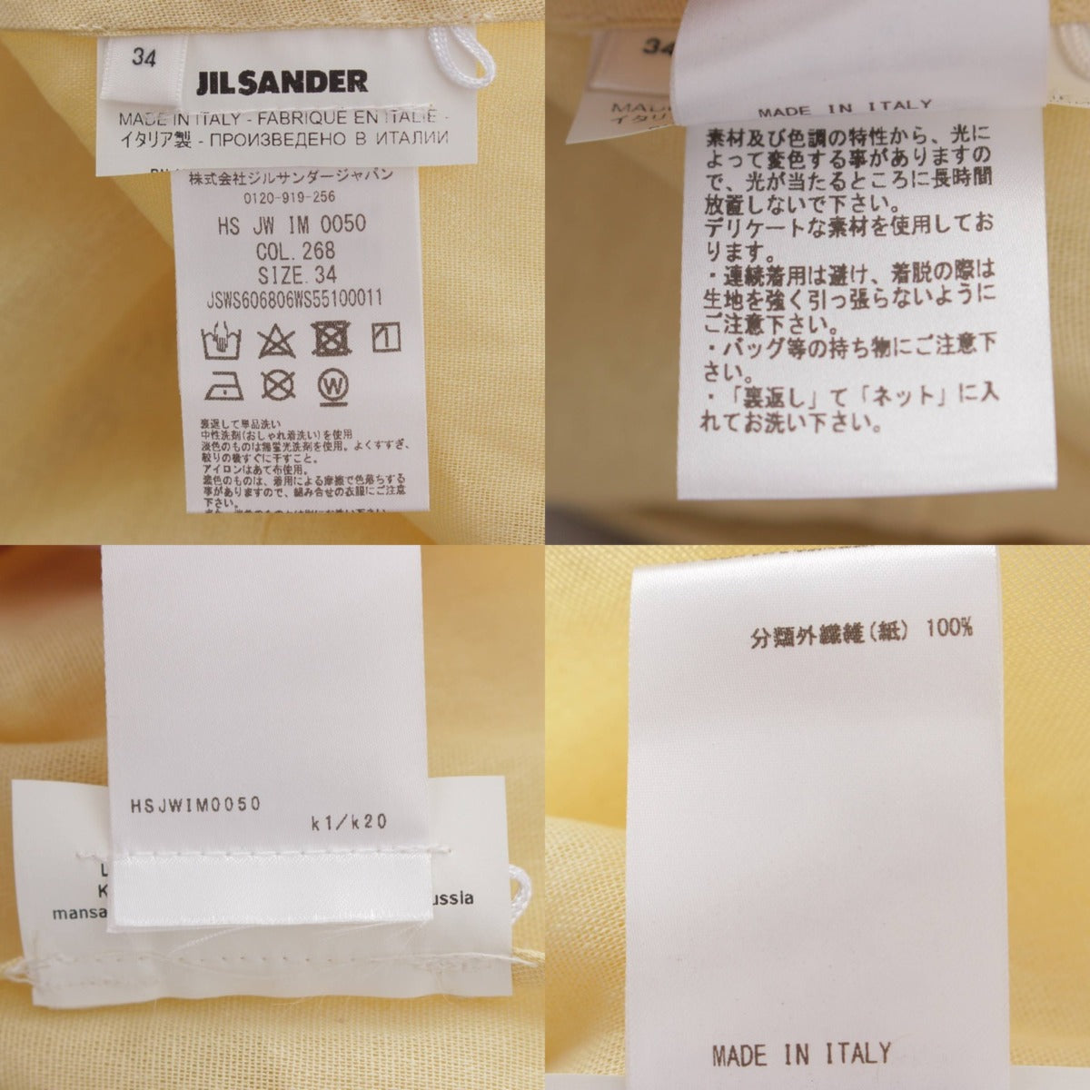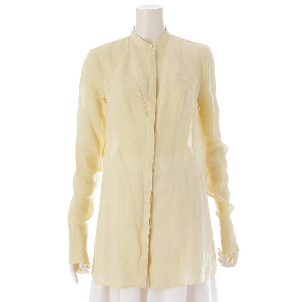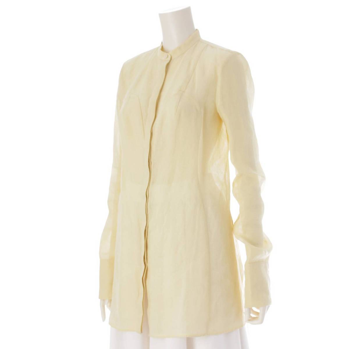 [Jil Sander] No-collar paper blouse with double cuffs, shirt, top, light yellow, size 34 [Used] [Authenticated and guaranteed authentic] 215458