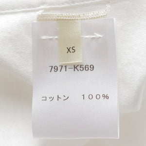 .detail {width:400px; font-size:12px;border-top:#000 2px solid; line-height:1.5em;border-bottom:#666 1px solid; margin-bottom:5px;}.detail .title{ padding:10px;border-bottom:#666 1px solid; background-color:#e3e3e3; margin:0;}.detail .text{ padding: 5px 10px;} Product details Color: White Material: Cotton Please see the composition label Accessories: None Damage: - *As this is a used item, there may be damage to the main body or accessories that is not listed. Please note. Product condition S: Not considered unused, but has no signs of use Size notation Size: XS Total length: around 28.9" Shoulder width: around 19.7" Width: around 20.7" Sleeve length: around 10.6" *Measured flat at maximum part