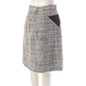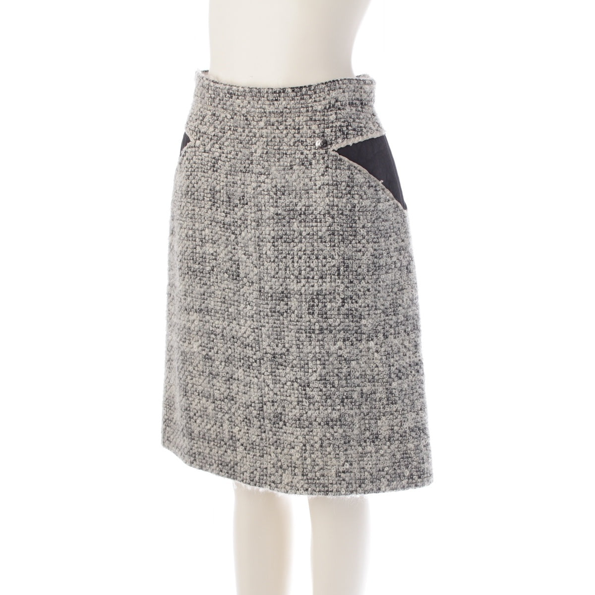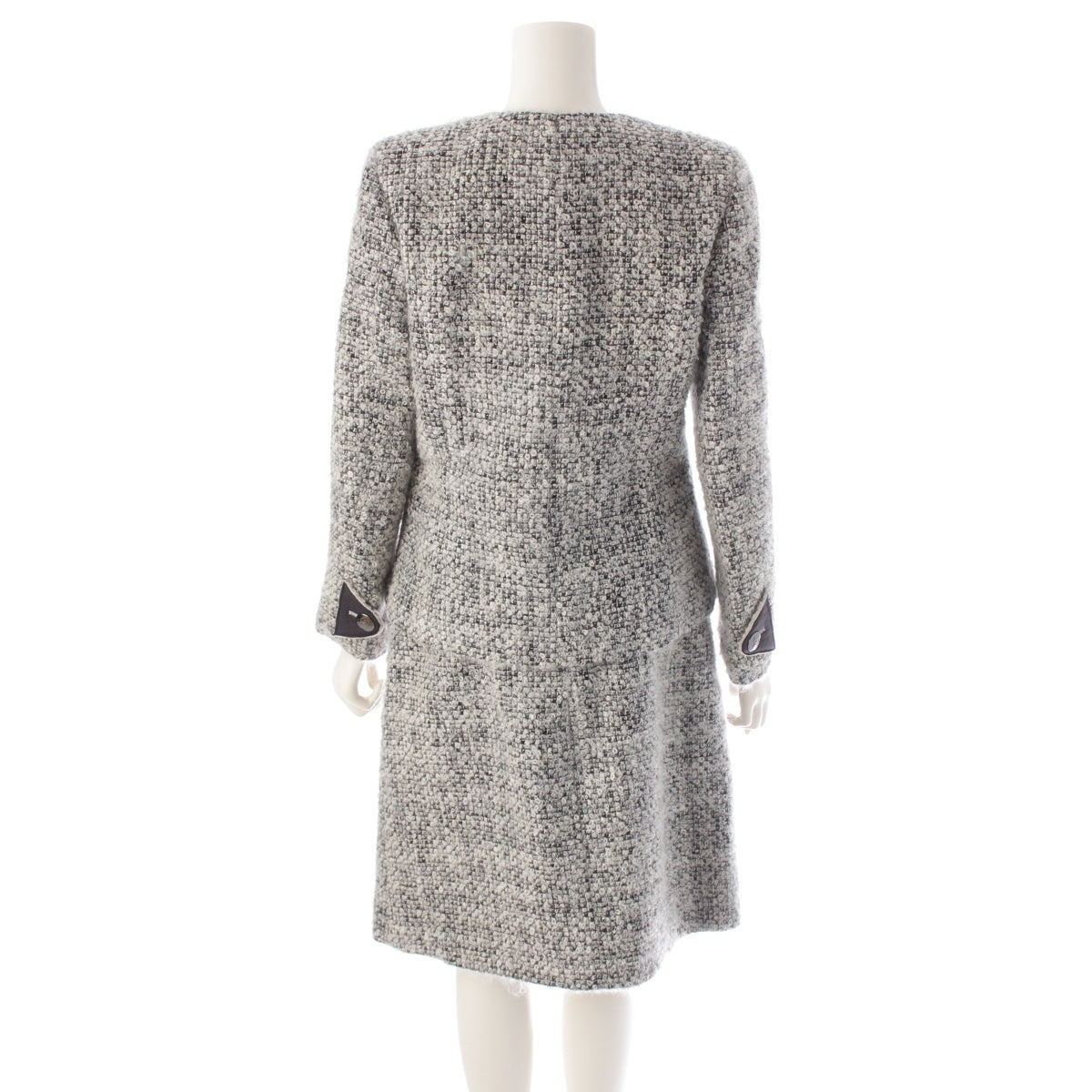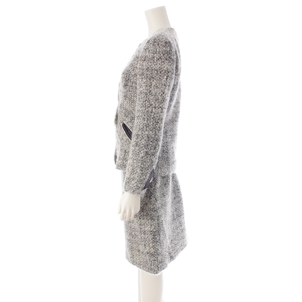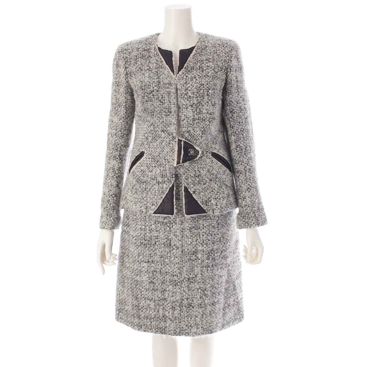 CHANEL Mohair Leather Turnlock Tweed Skirt setup Jacket P38975 P39047 gray 36 38