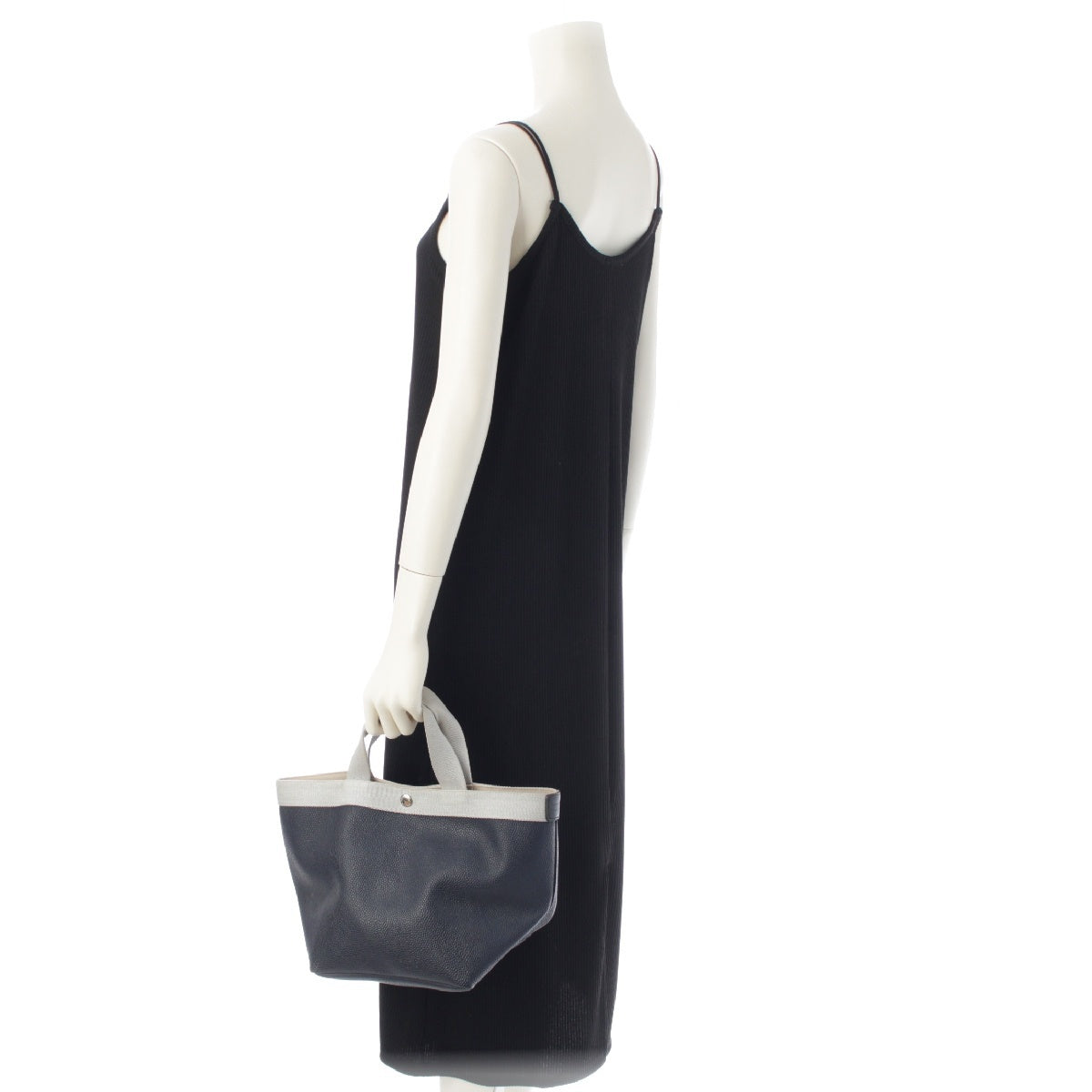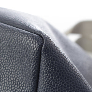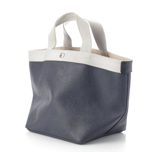 Herve Chapelier Luxe M Pebbled Grain Coated Canvas Template Tote Bag 707GP Navy Silver
