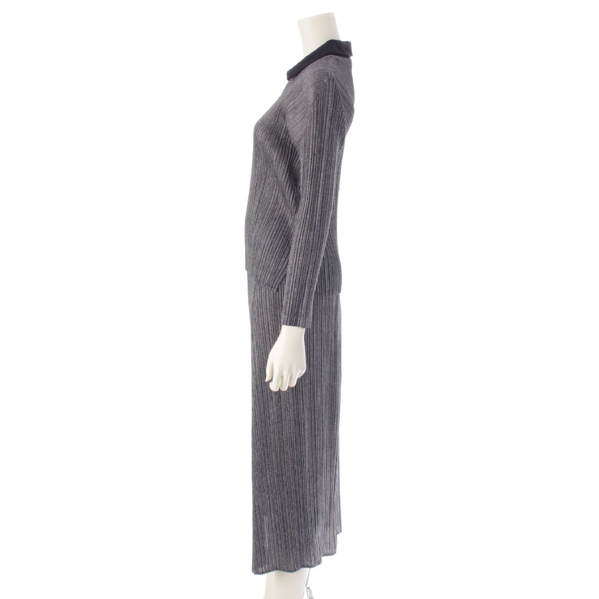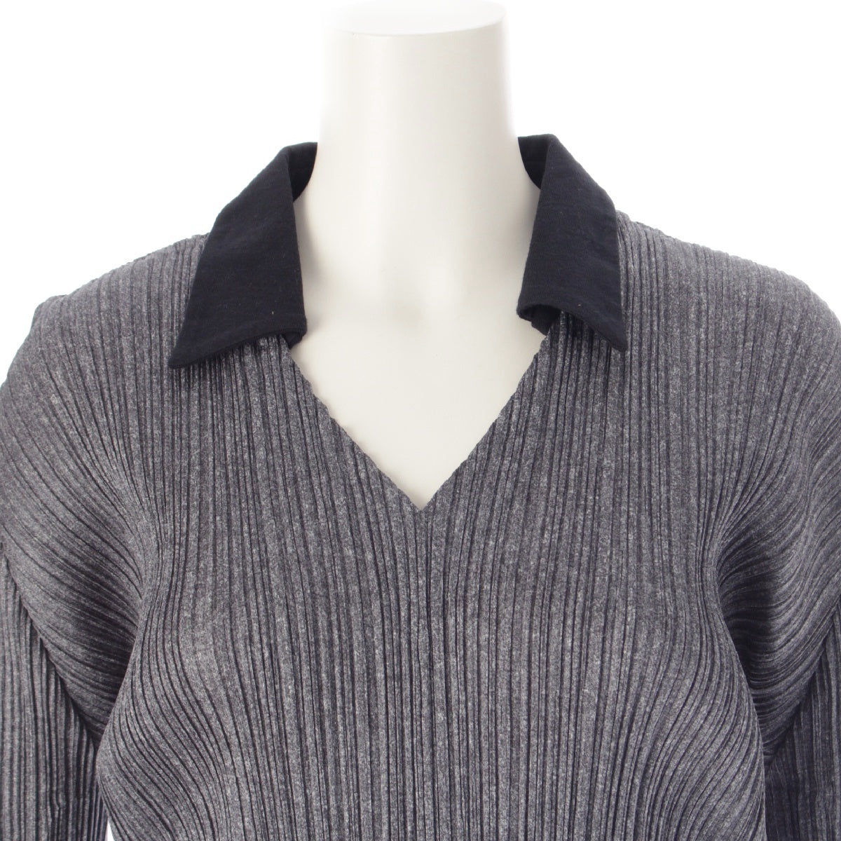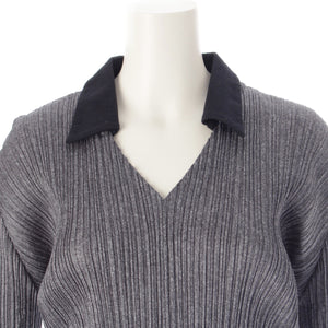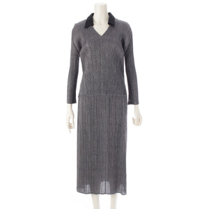 PLEATS PLEASE ISSEY V-neck top with collar Skirt setup PP43-JK633 /JG637 gray 3