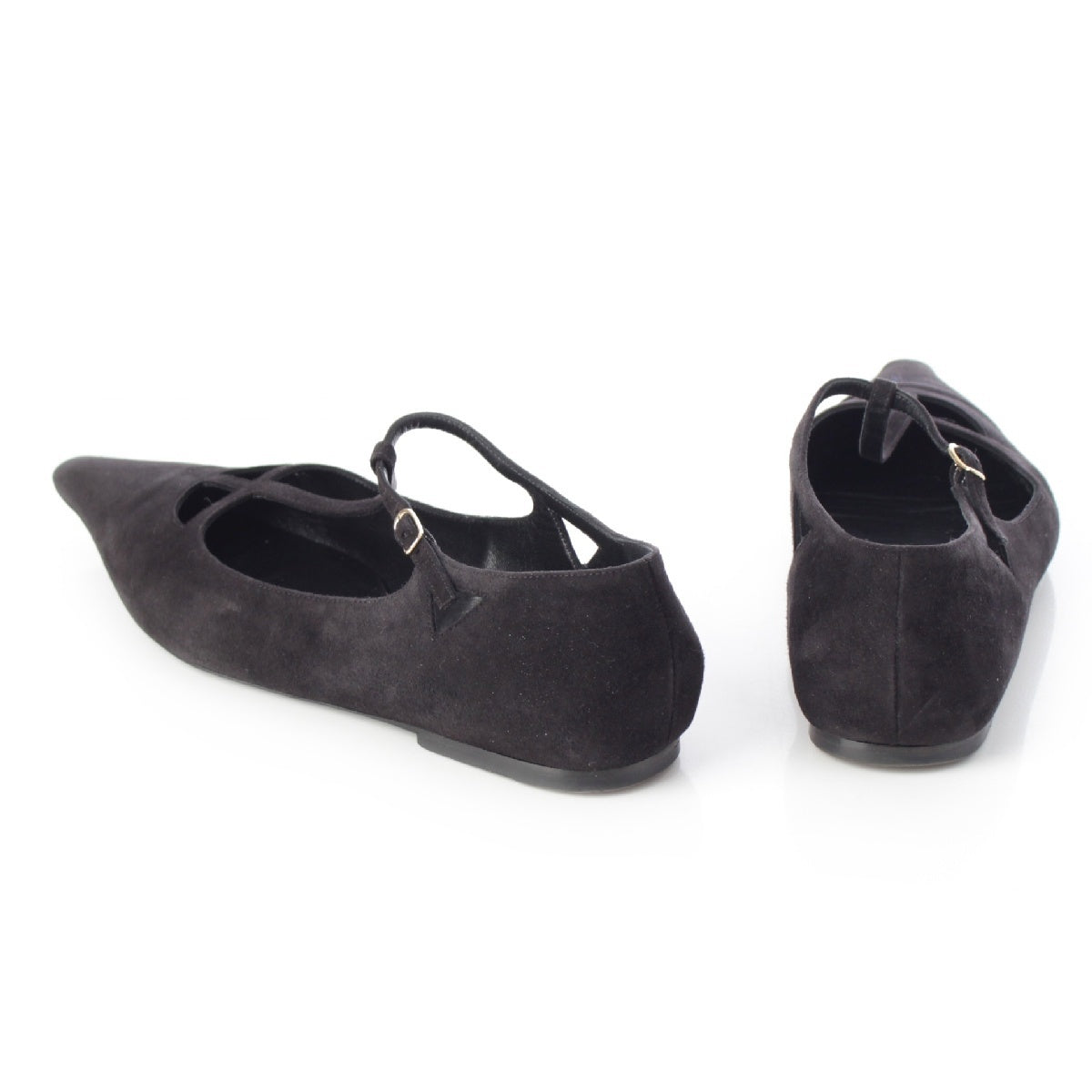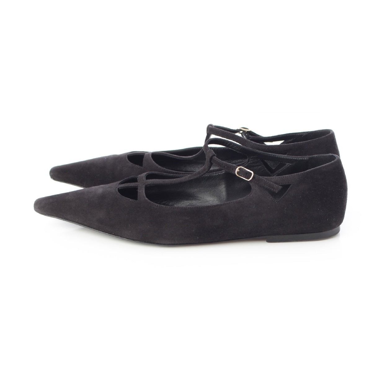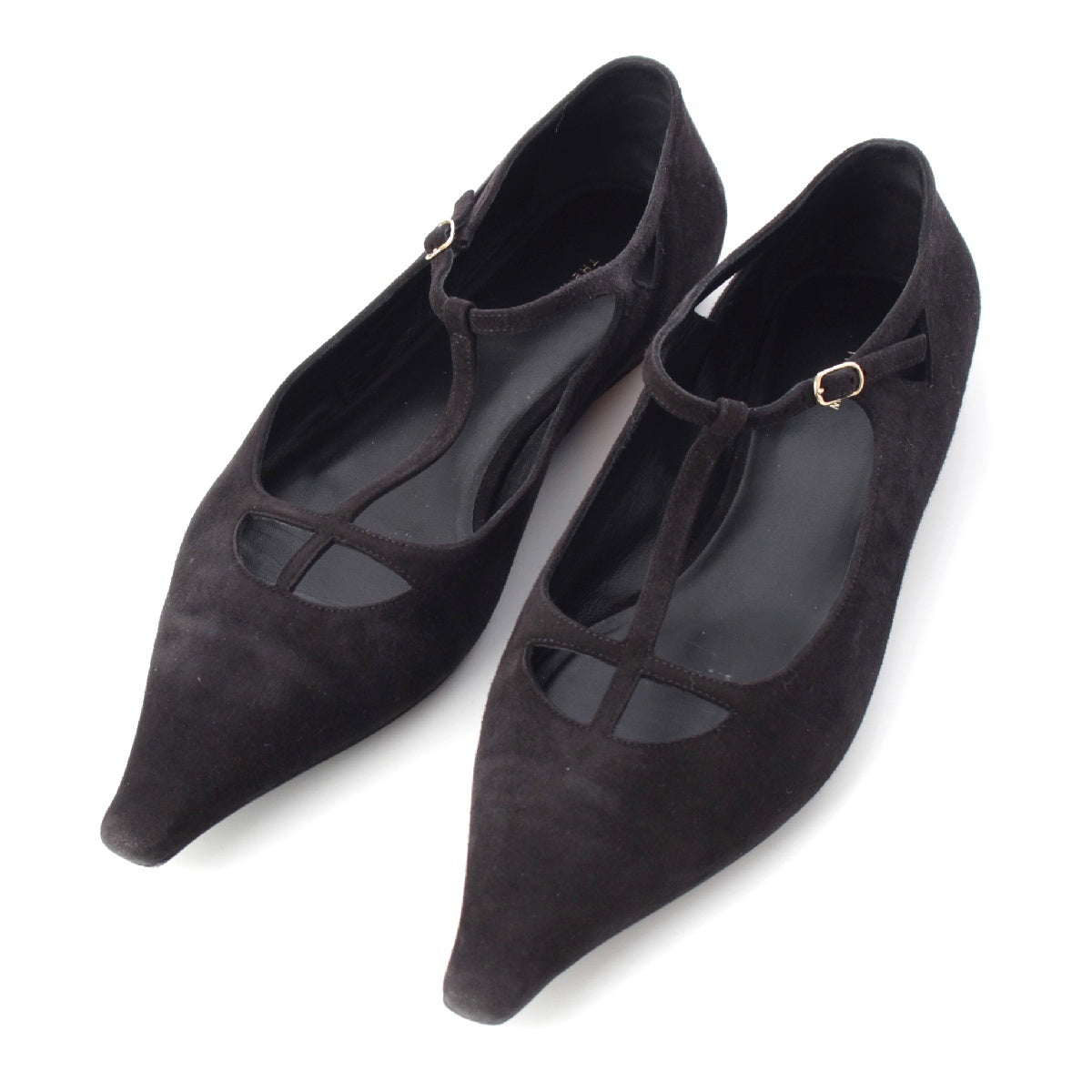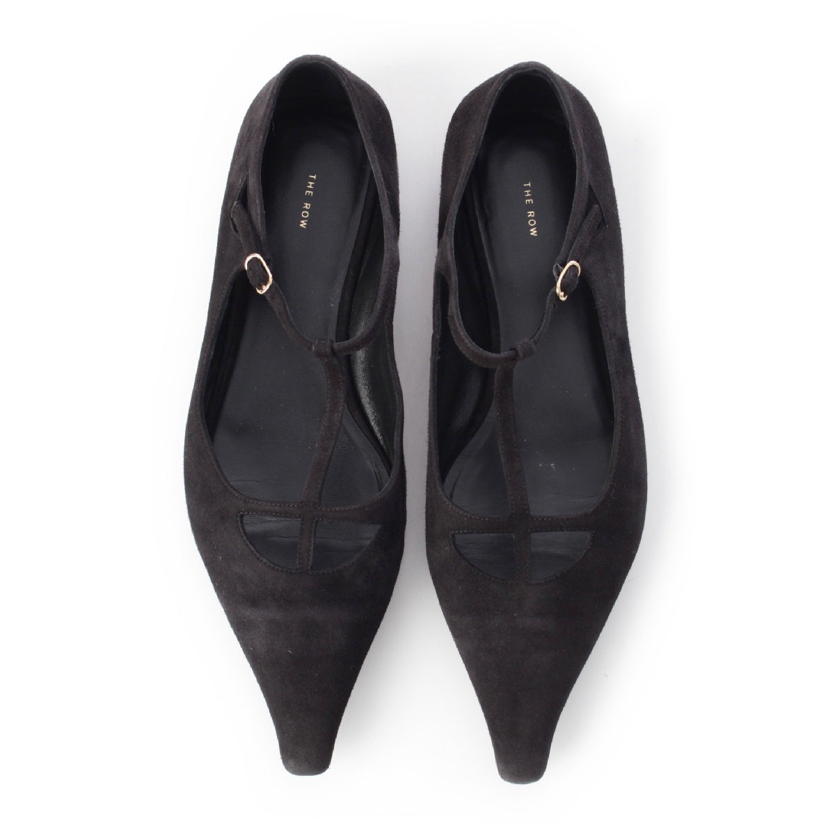 THE ROW cyd Leather suede Kitten Cutout Strap Flats pumps shoes Black Gold Metal 39 10.2" US9