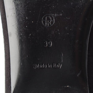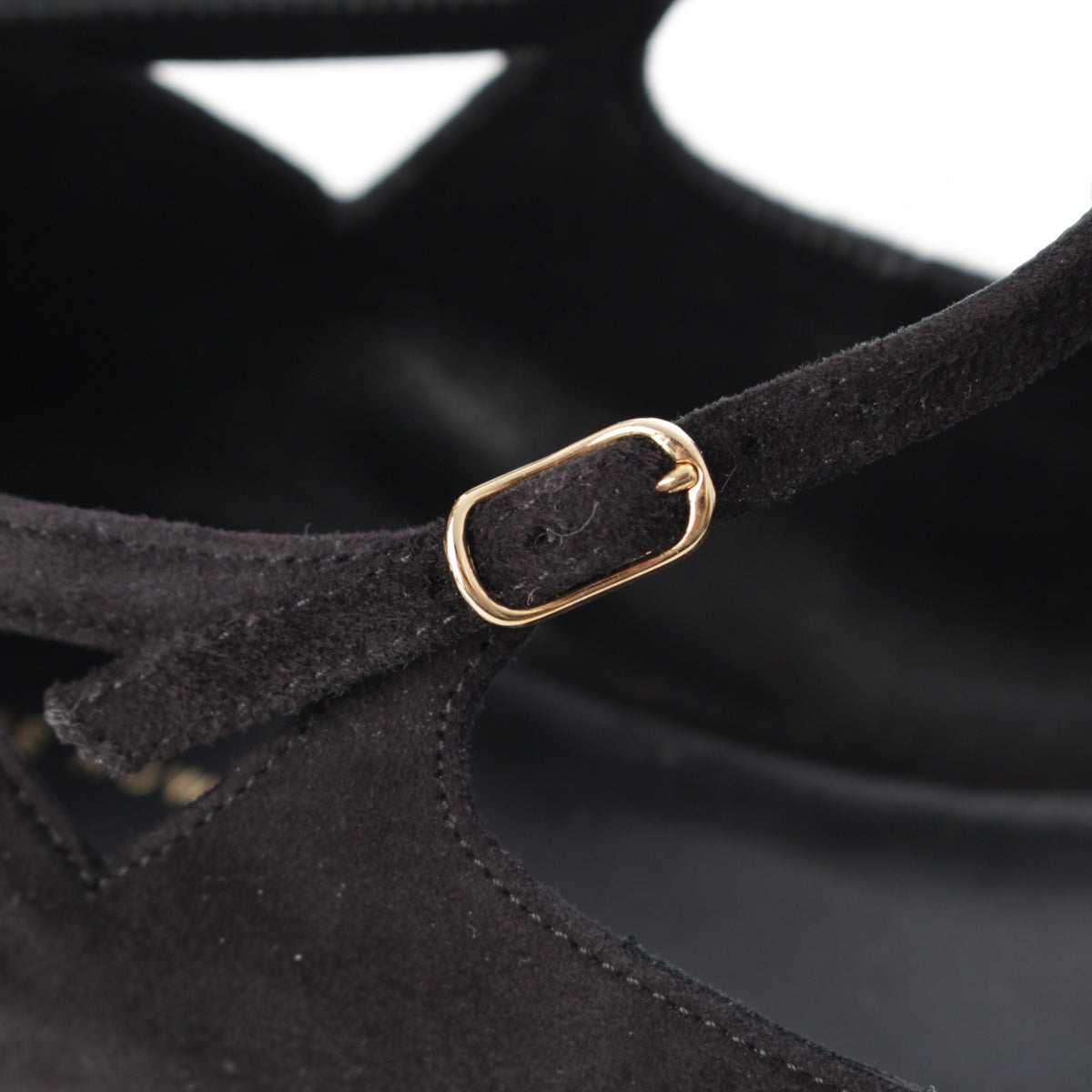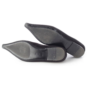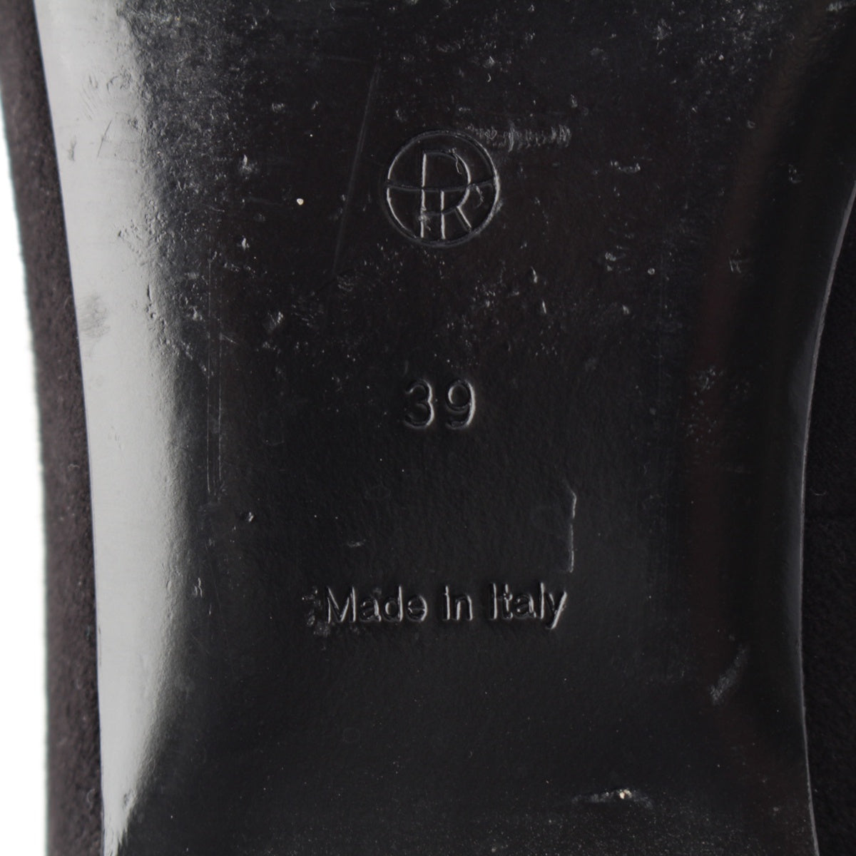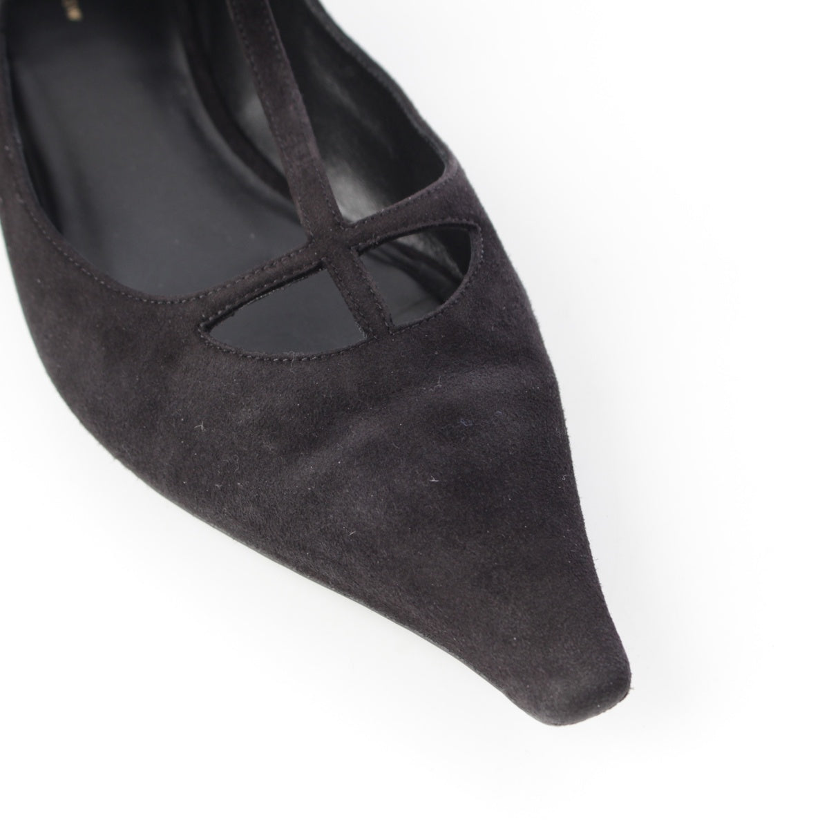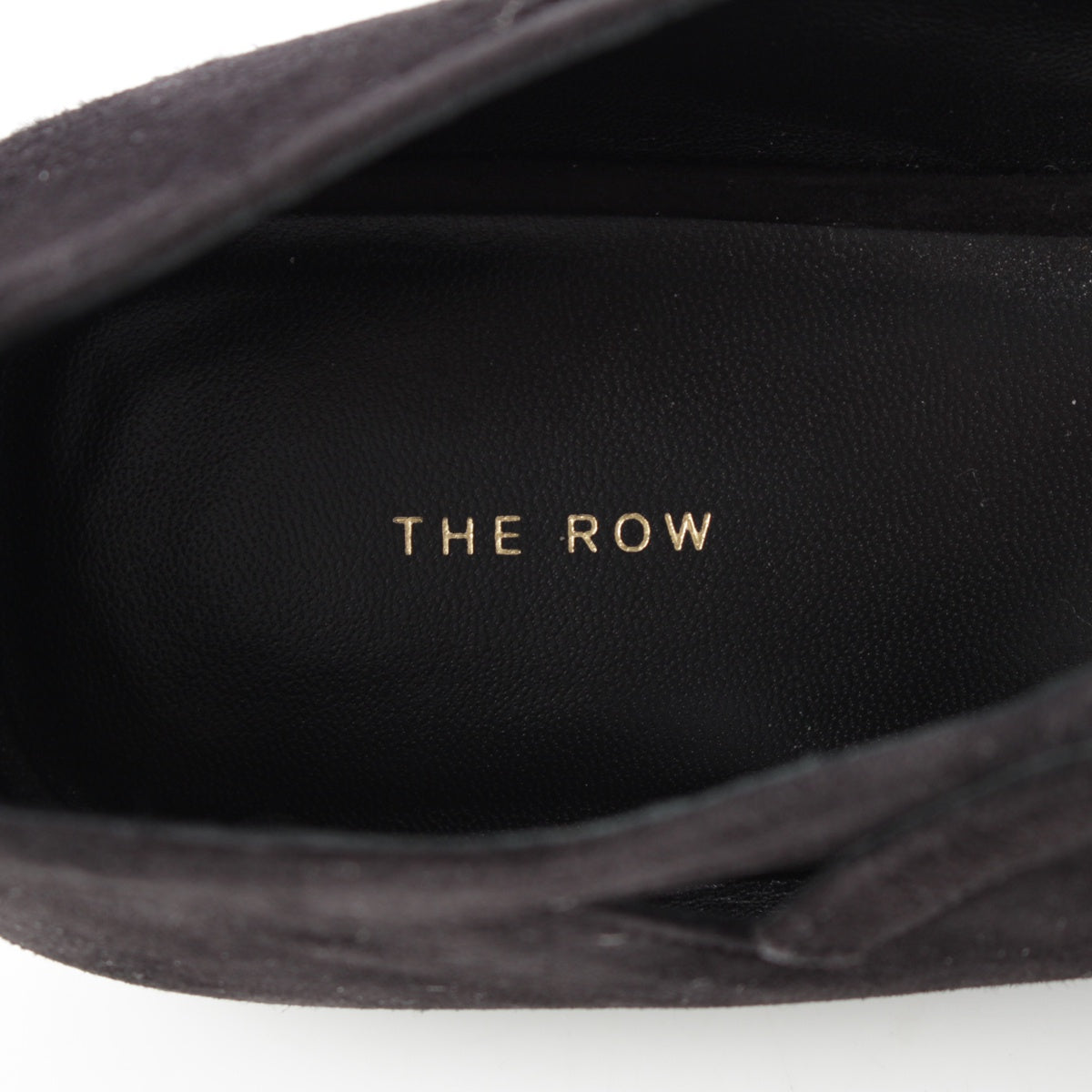 THE ROW cyd Leather suede Kitten Cutout Strap Flats pumps shoes Black Gold Metal 39 10.2" US9