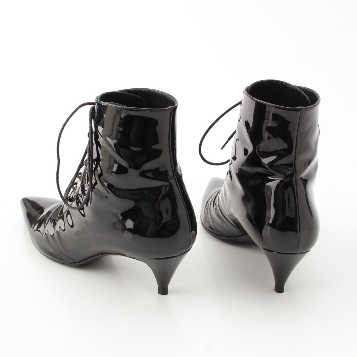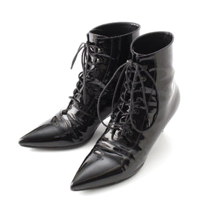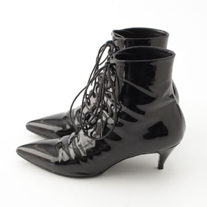 SAINT LAURENT patent Lace-up ankle boots shoes 351930 black 38