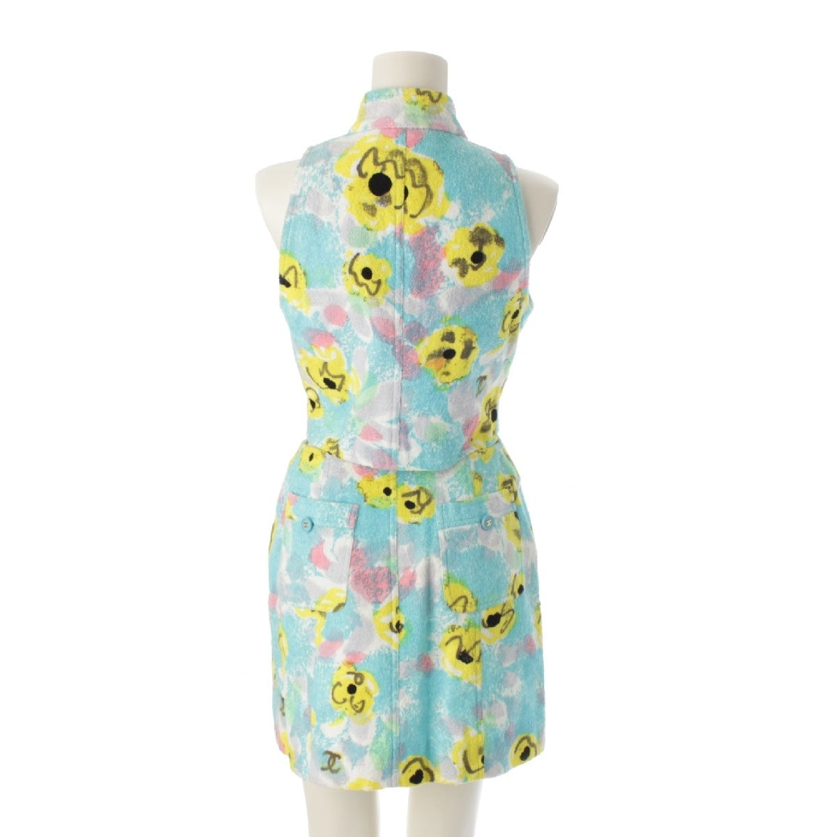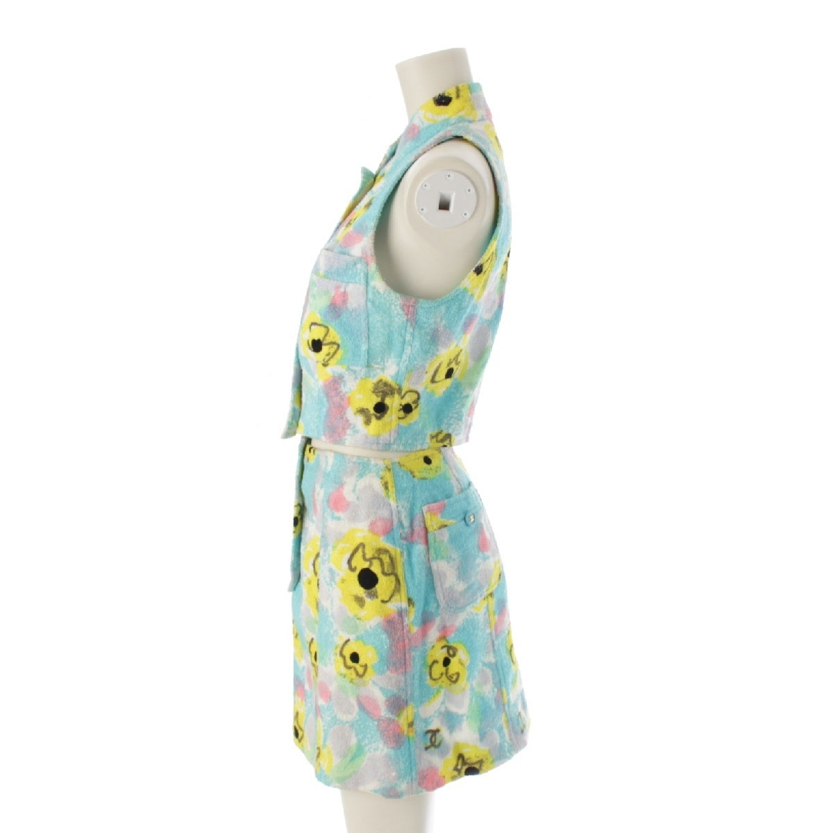 CHANEL Pile cropped floral COCO Button jacket Skirt setup No sleeve multicolor 38