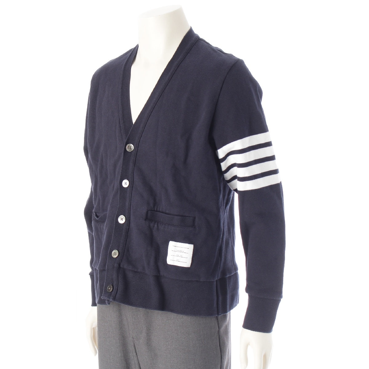 THOM BROWNE 4bar cotton Line V-neck cardigan tops MJT167A-00535415 Navy