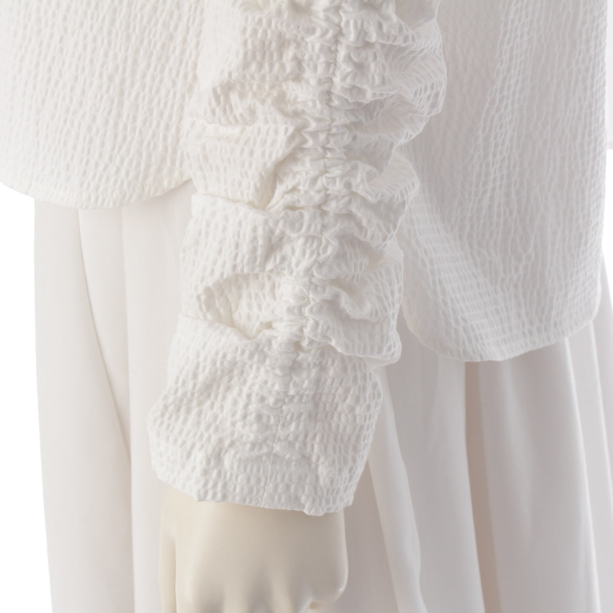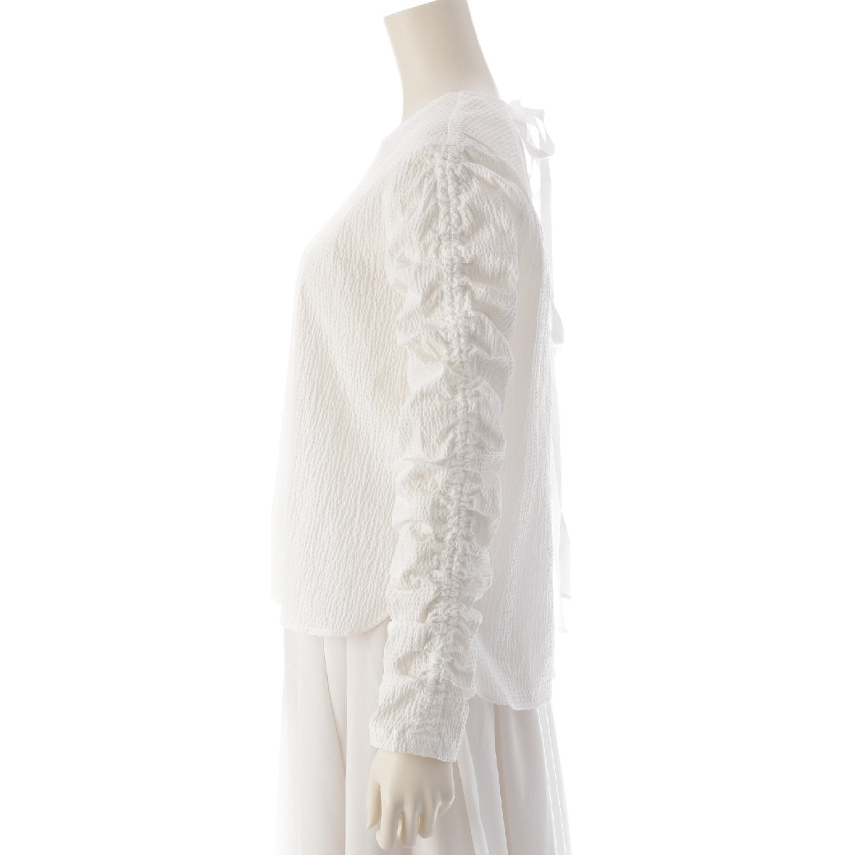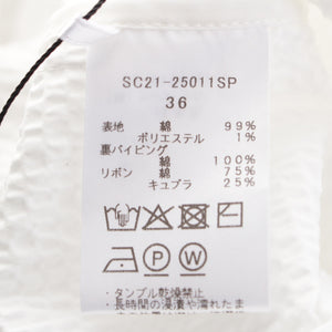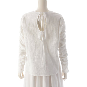 yori Shirocon 25Stainless Steel cotton Millefeuille Gathered blouse Long sleeve SC21-25011SP white 36