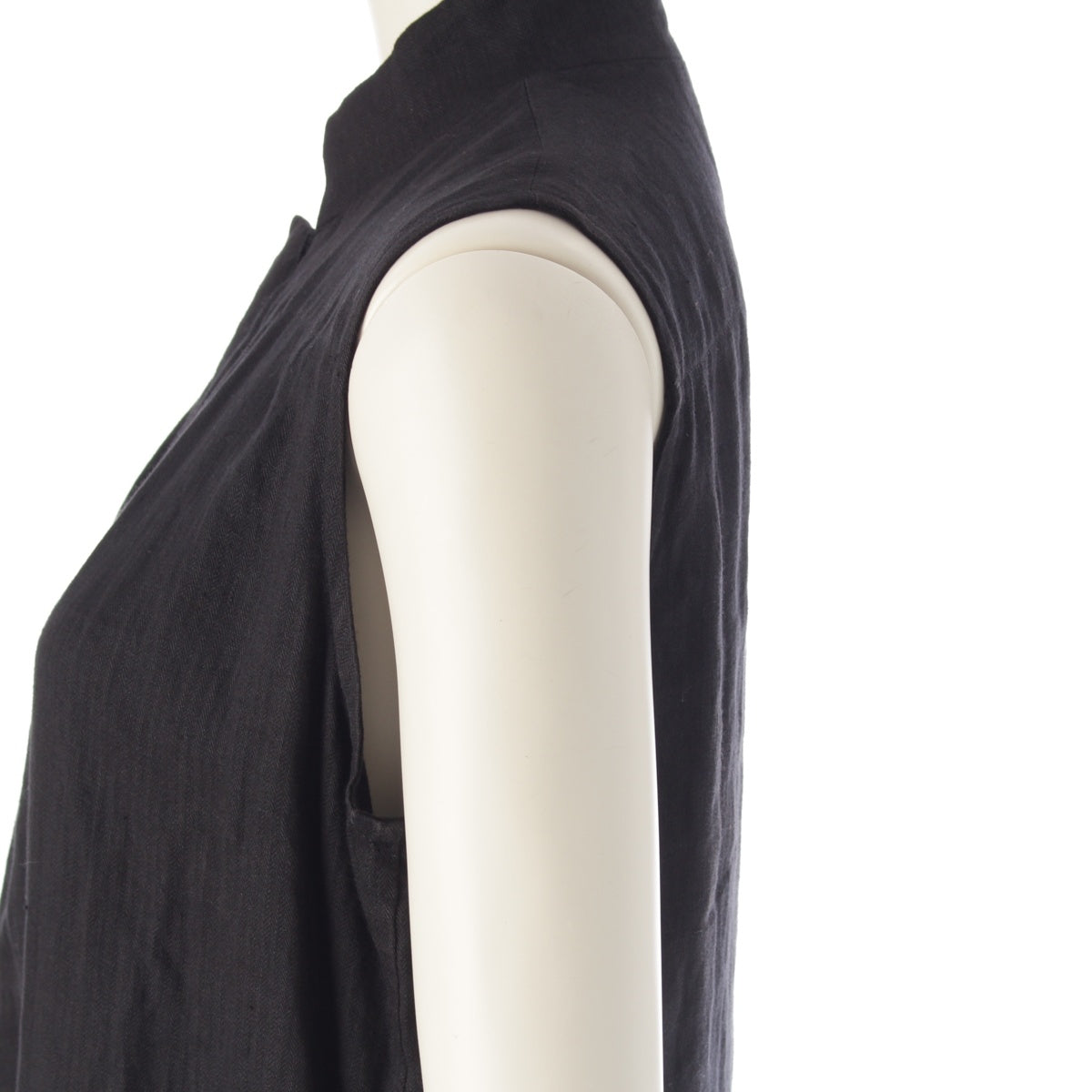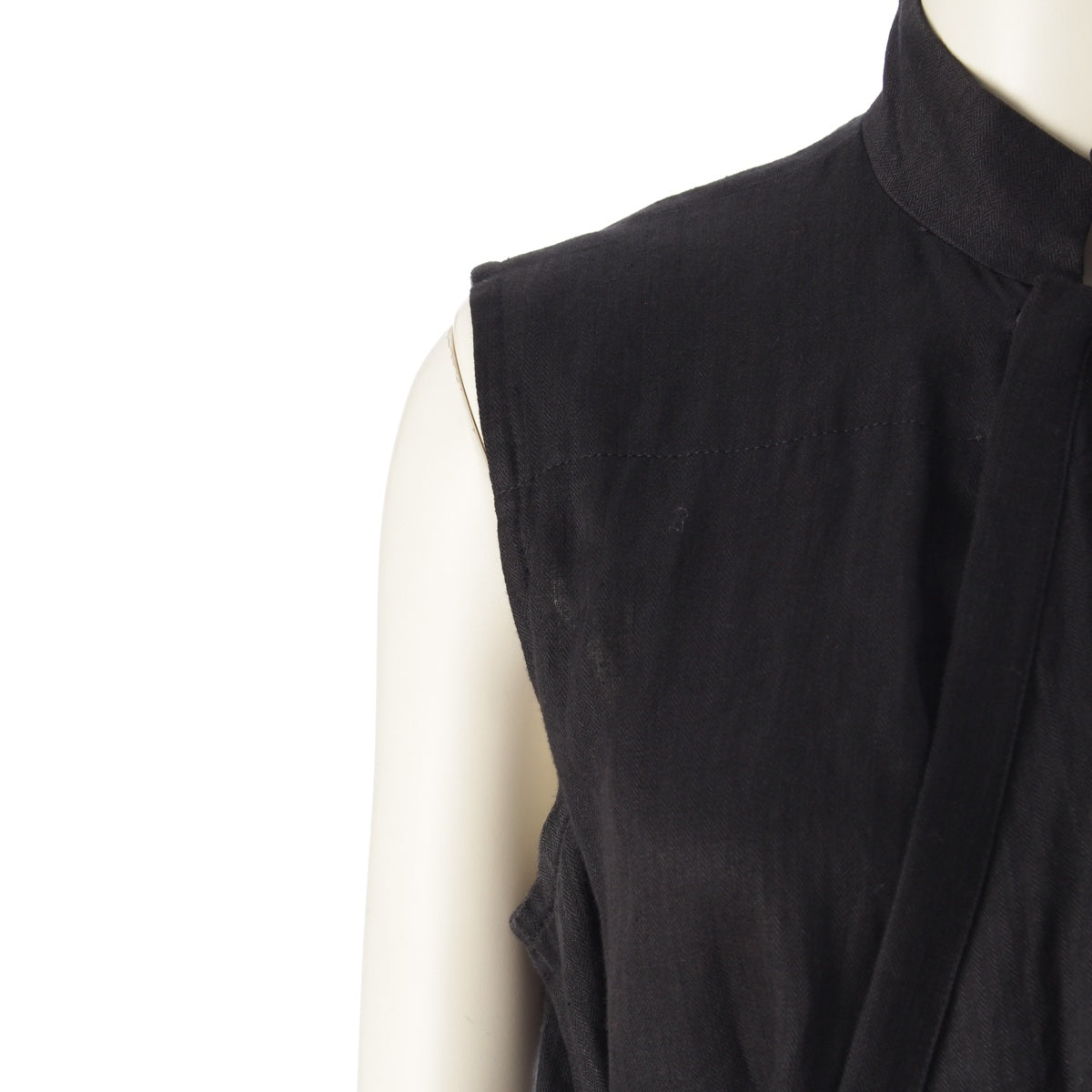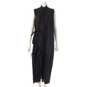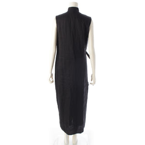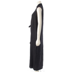 Y's Yohji Yamamoto linen Stand collar Belt Sleeveless one piece Long dress YZ-D07-307 black