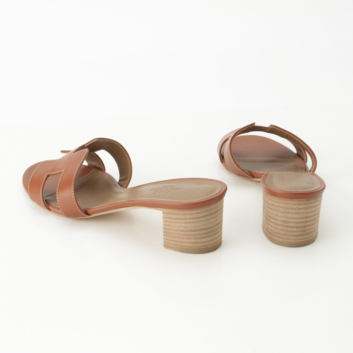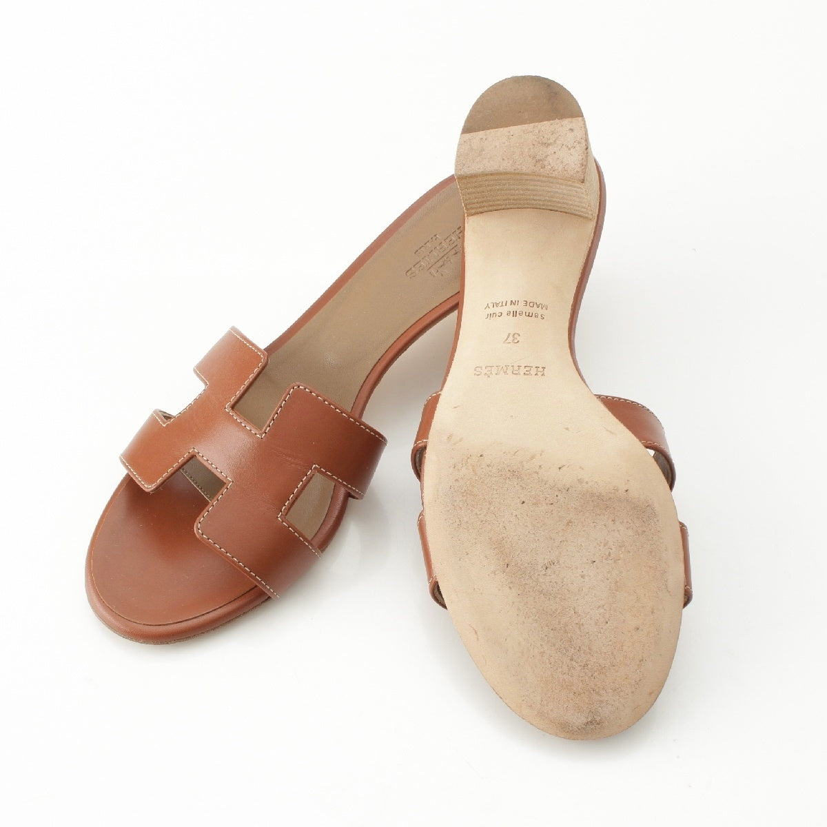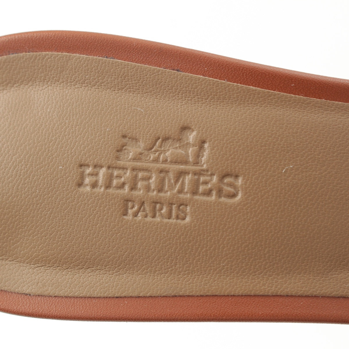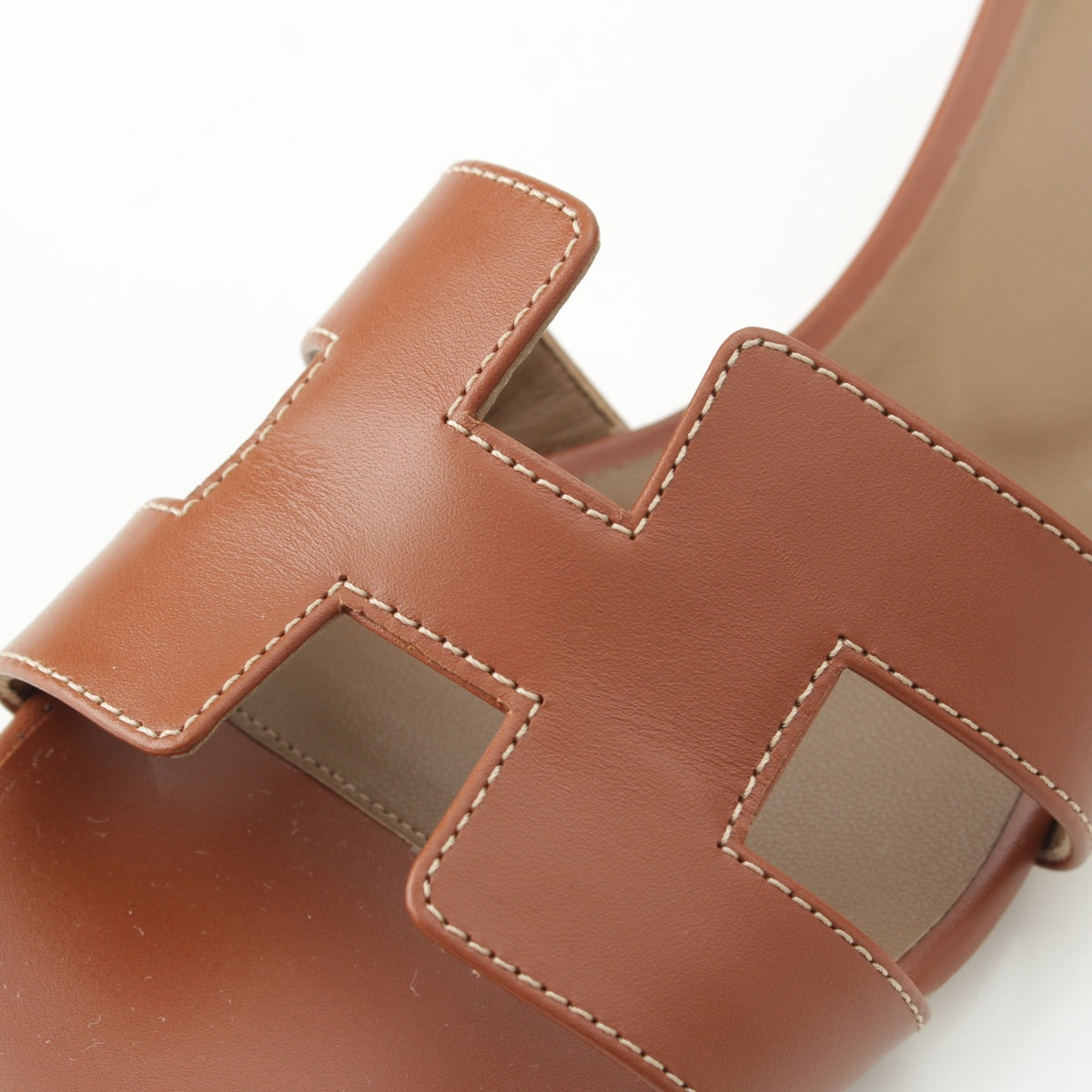 HERMES Oasis leather H motif heel Mule Sandals gold brown 37