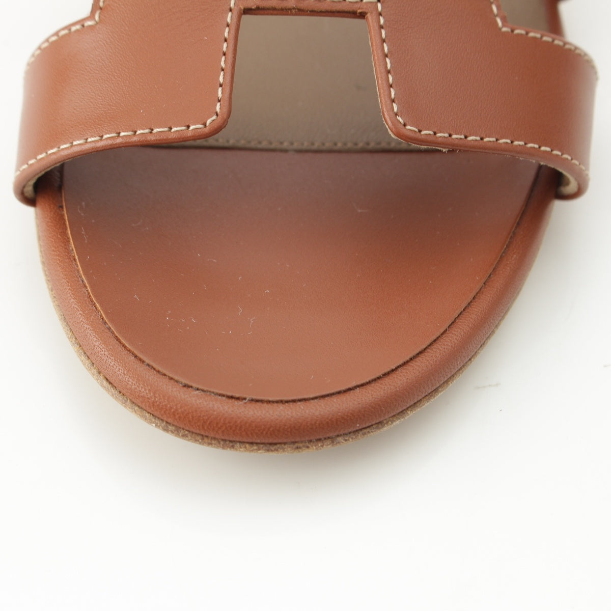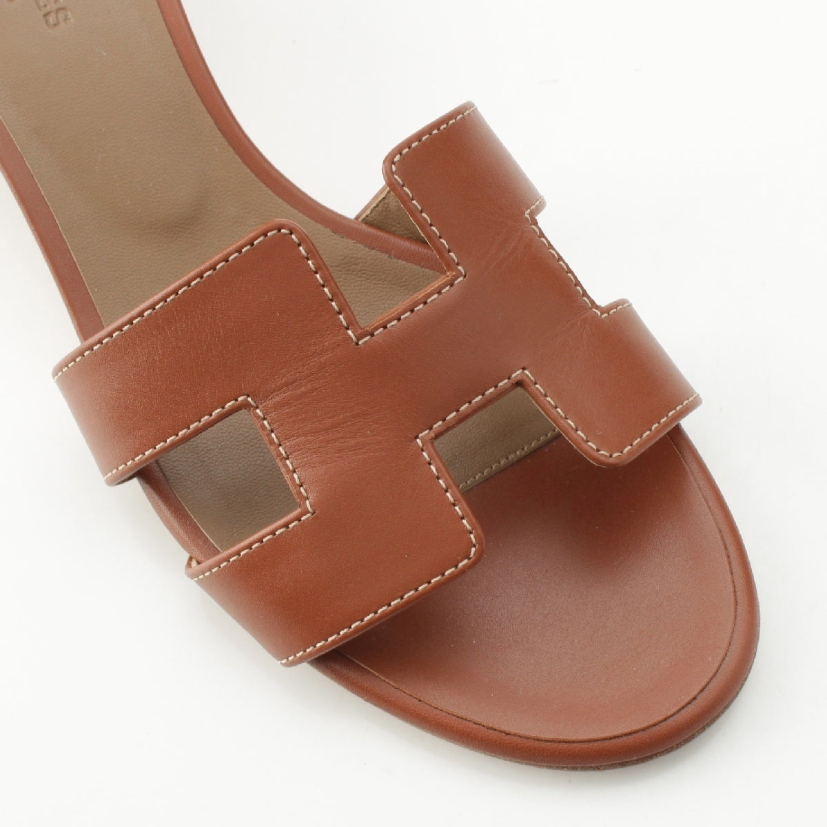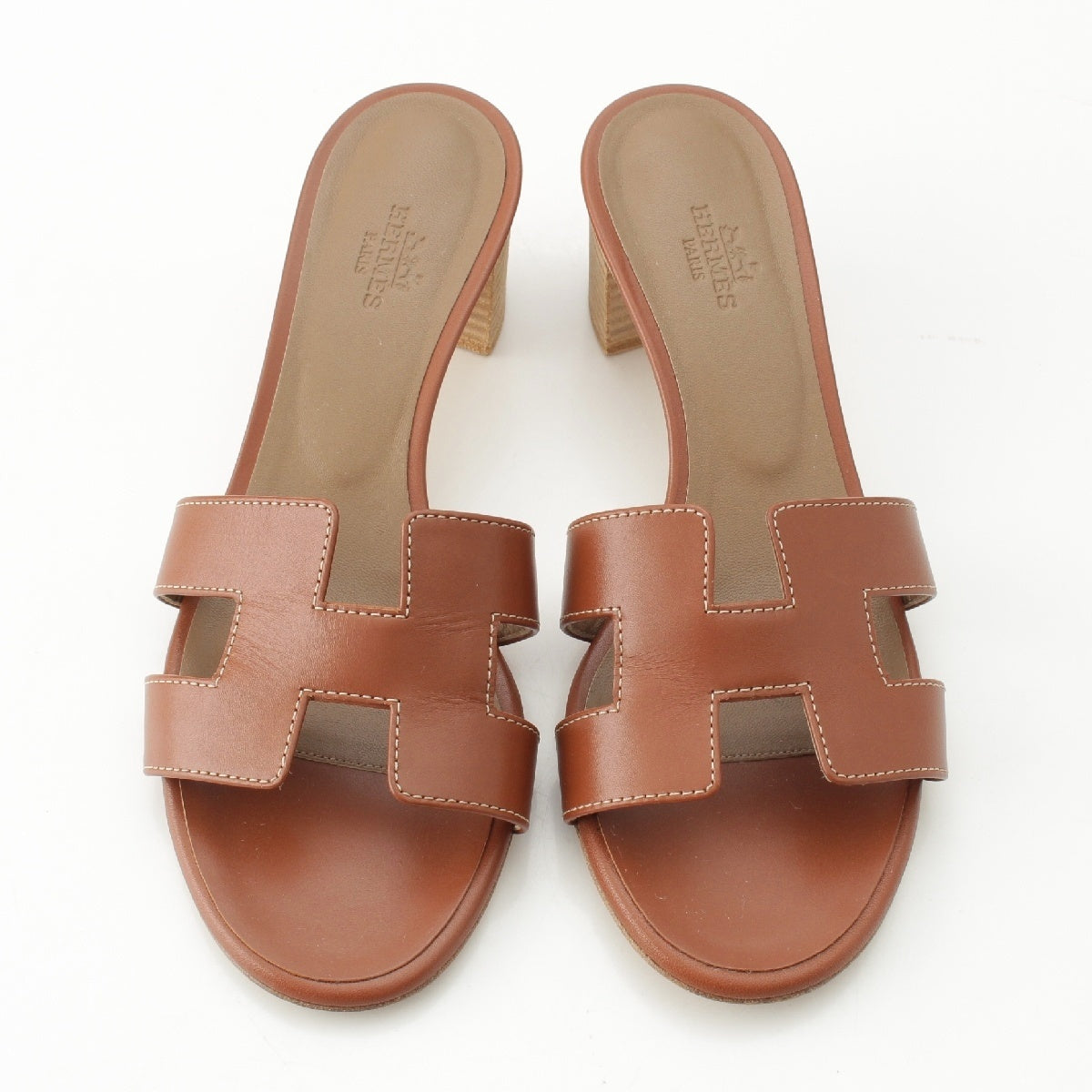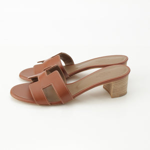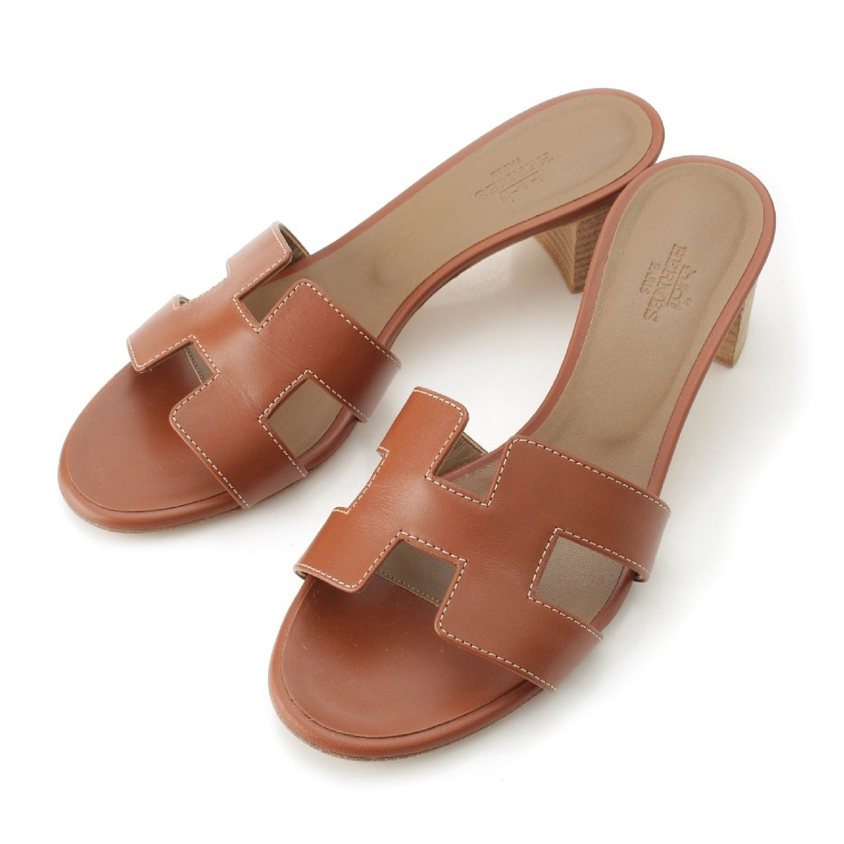 HERMES Oasis leather H motif heel Mule Sandals gold brown 37