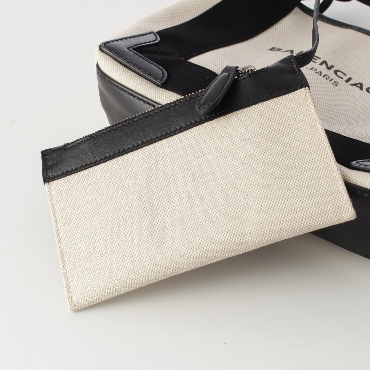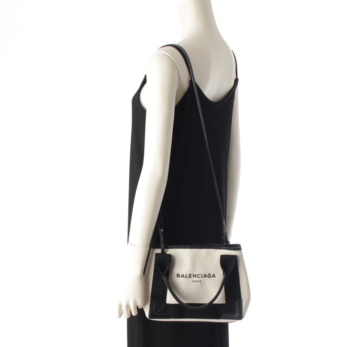 BALENCIAGA Navy Kabas XS canvas 2way Shoulder Tote Bag 390346 Beige black
