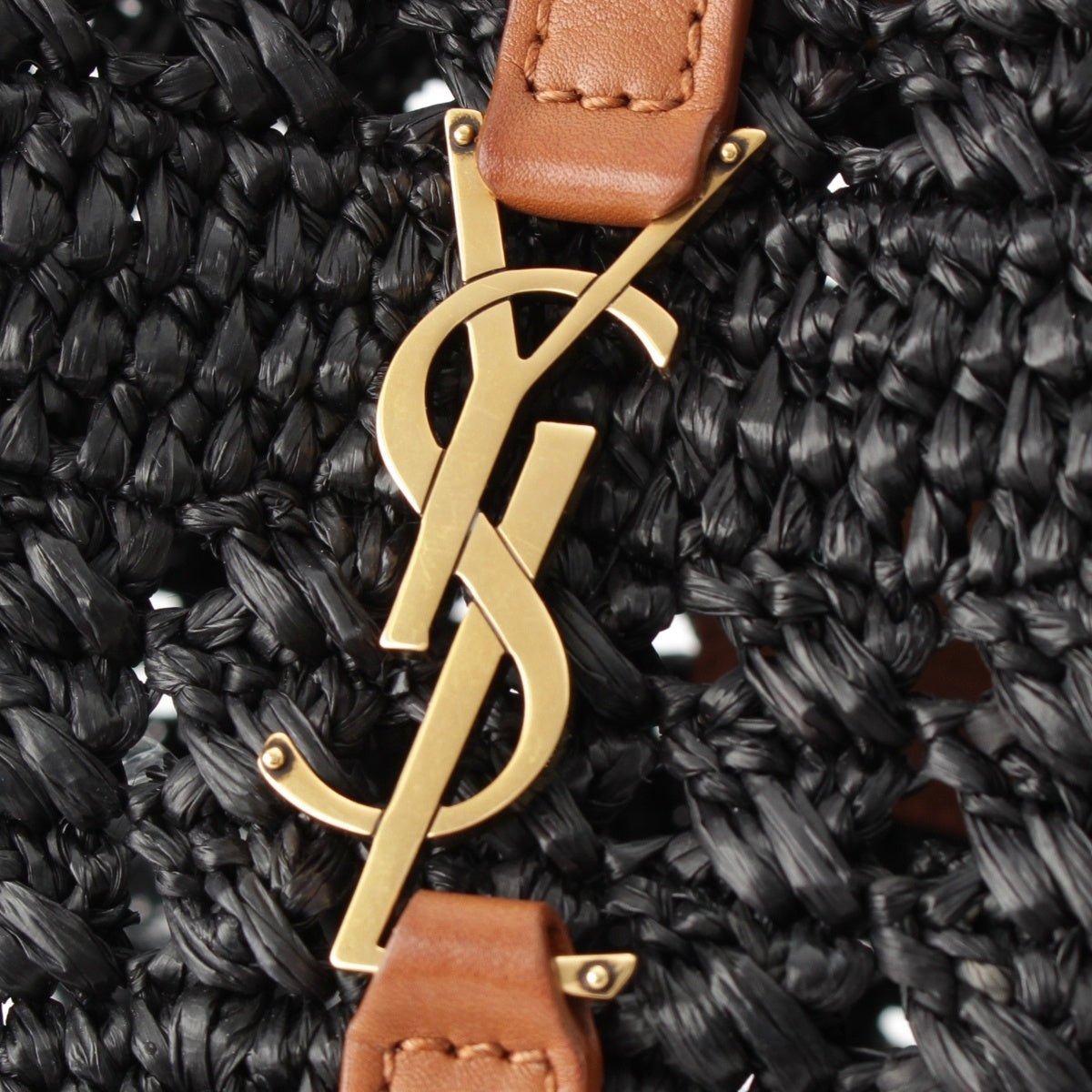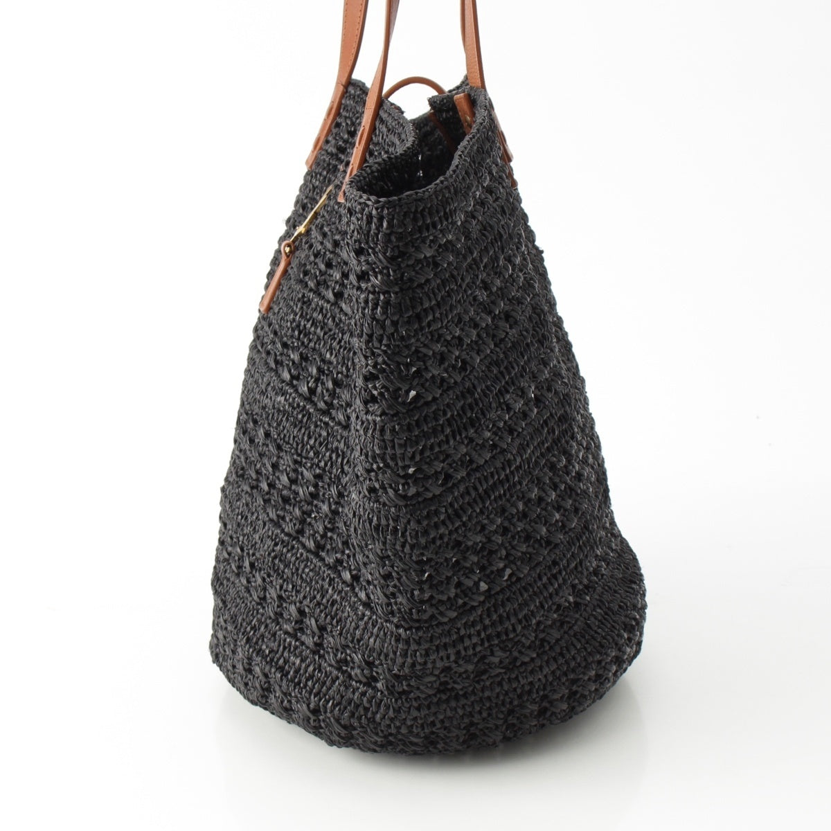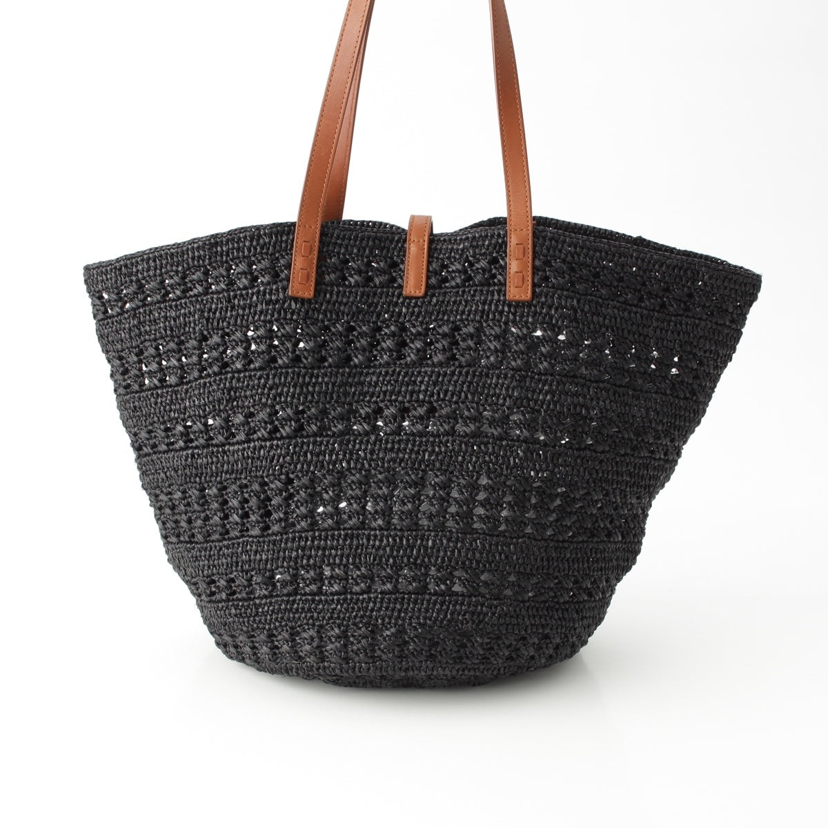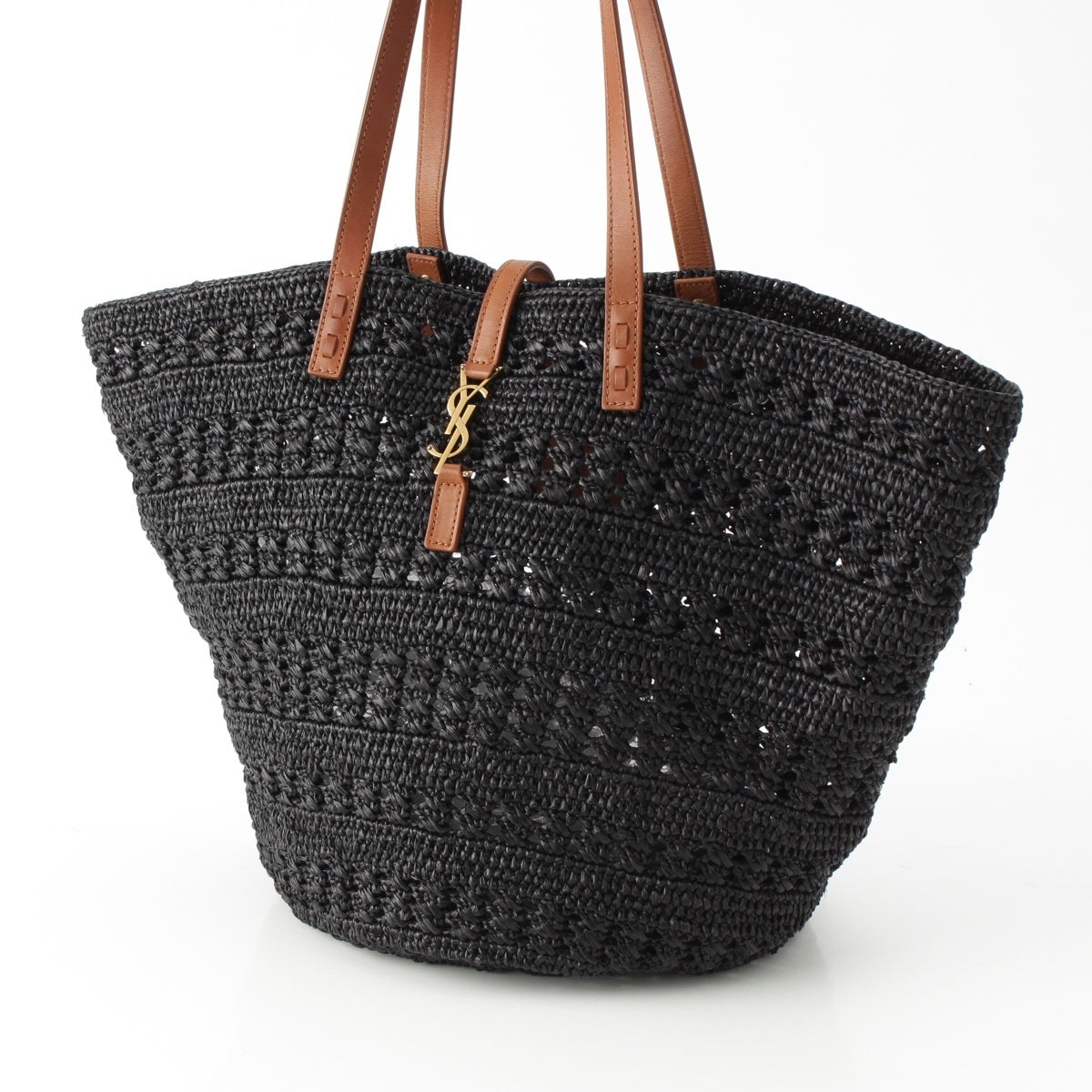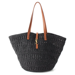 SAINT LAURENT Raffia leather Panier Logo Tote Bag hand 688221 black