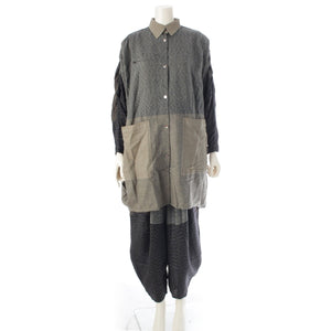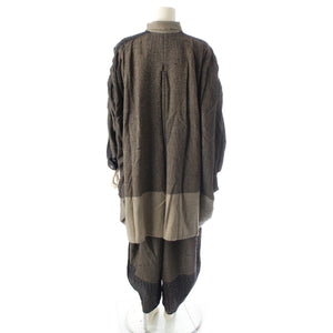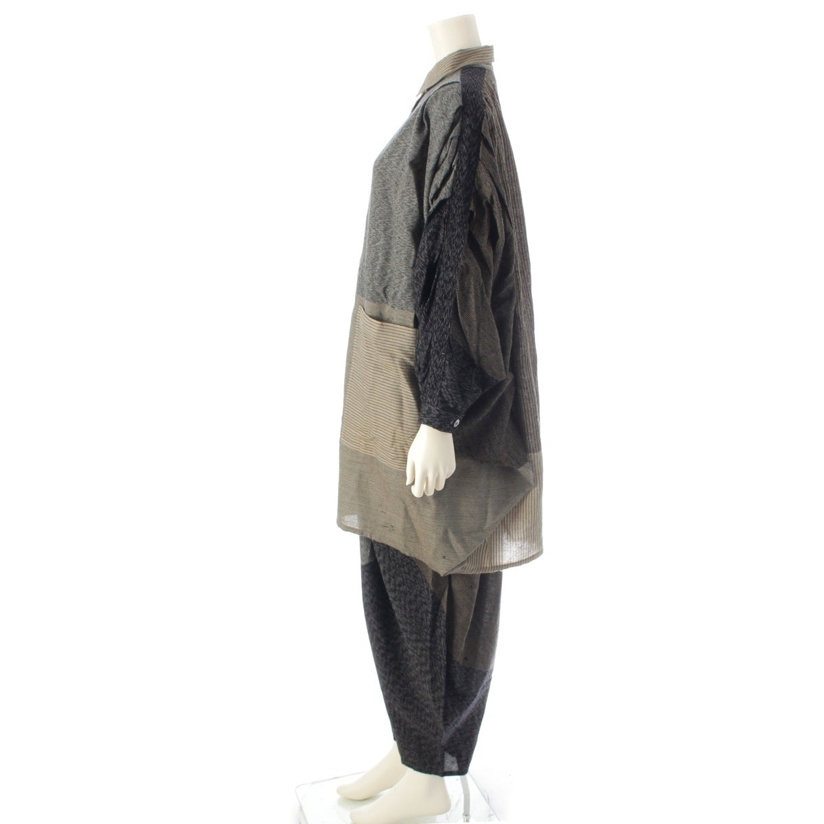 ISSEY MIYAKE Wool nylon Squid Hakama Transformed Shirt Pants setup flat surface Navy beige 9