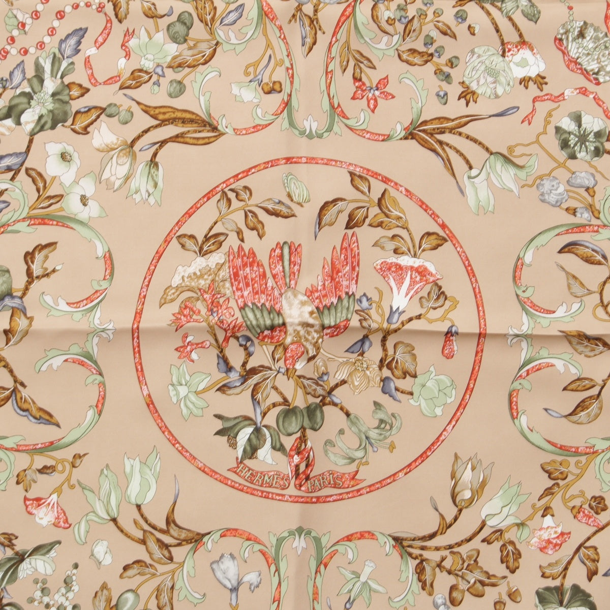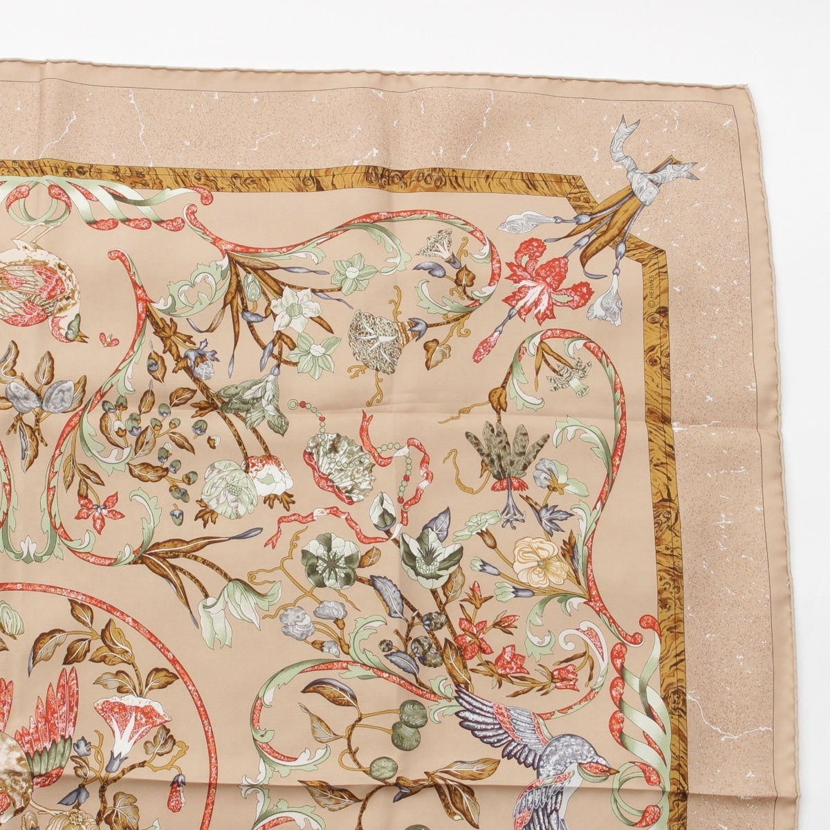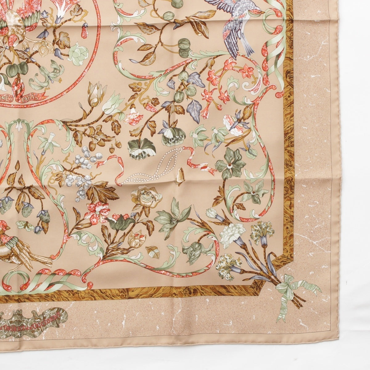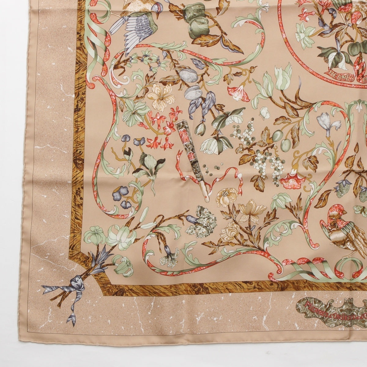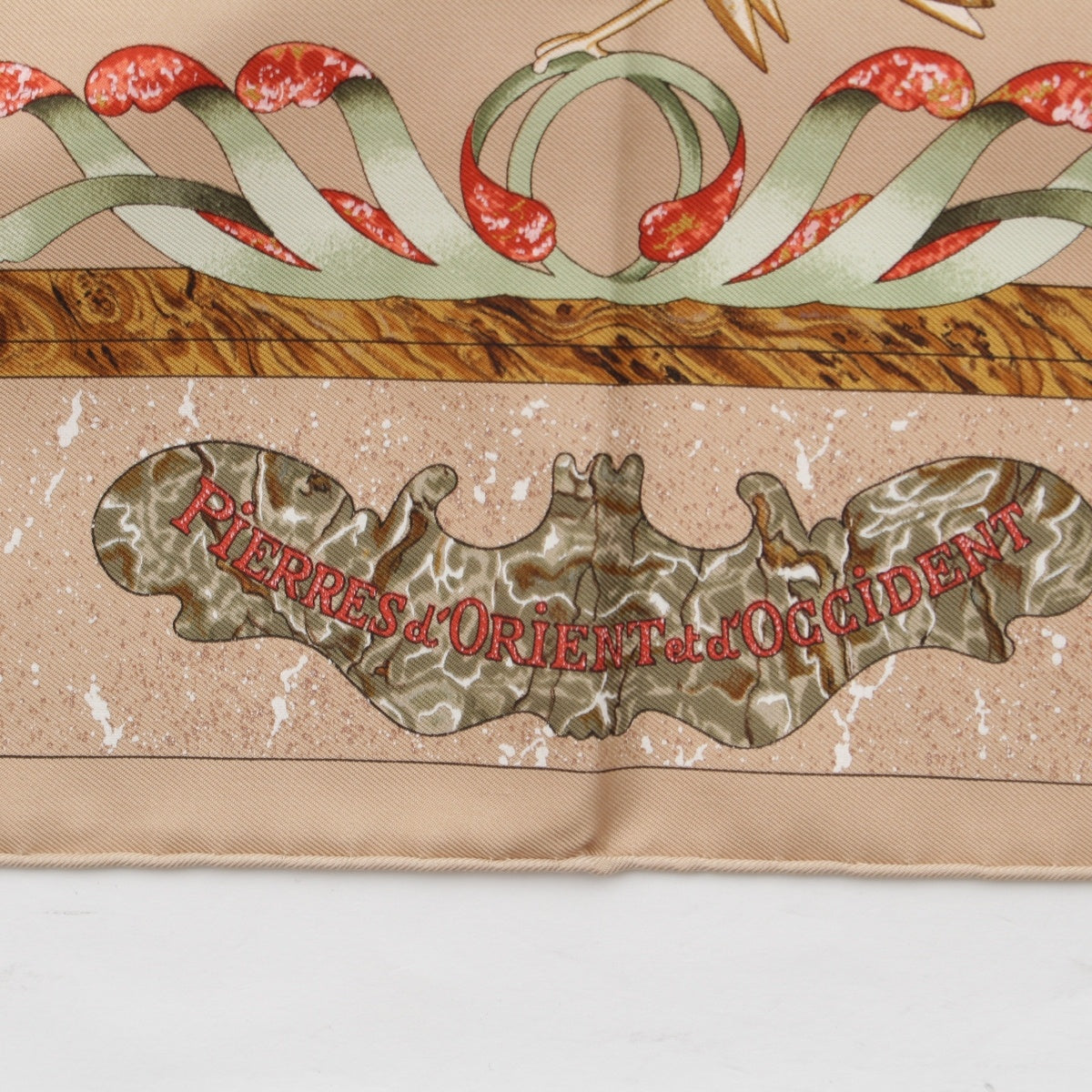HERMES Calle 90 silk PIERRES d' ORIENT and d' OCCIDENT Eastern stone and Western stonework scarf Brown