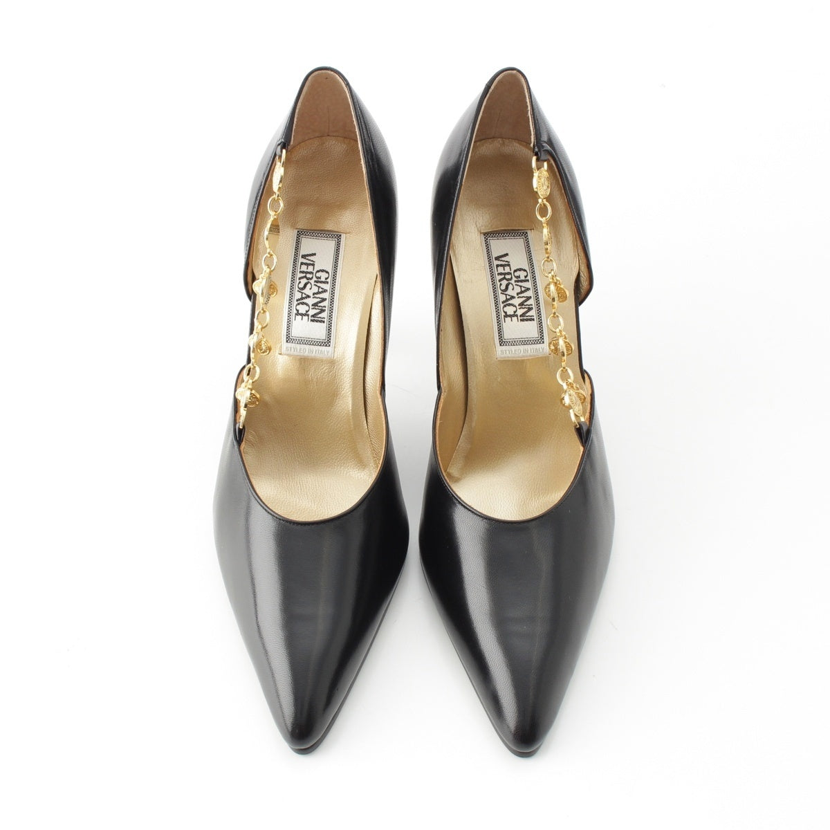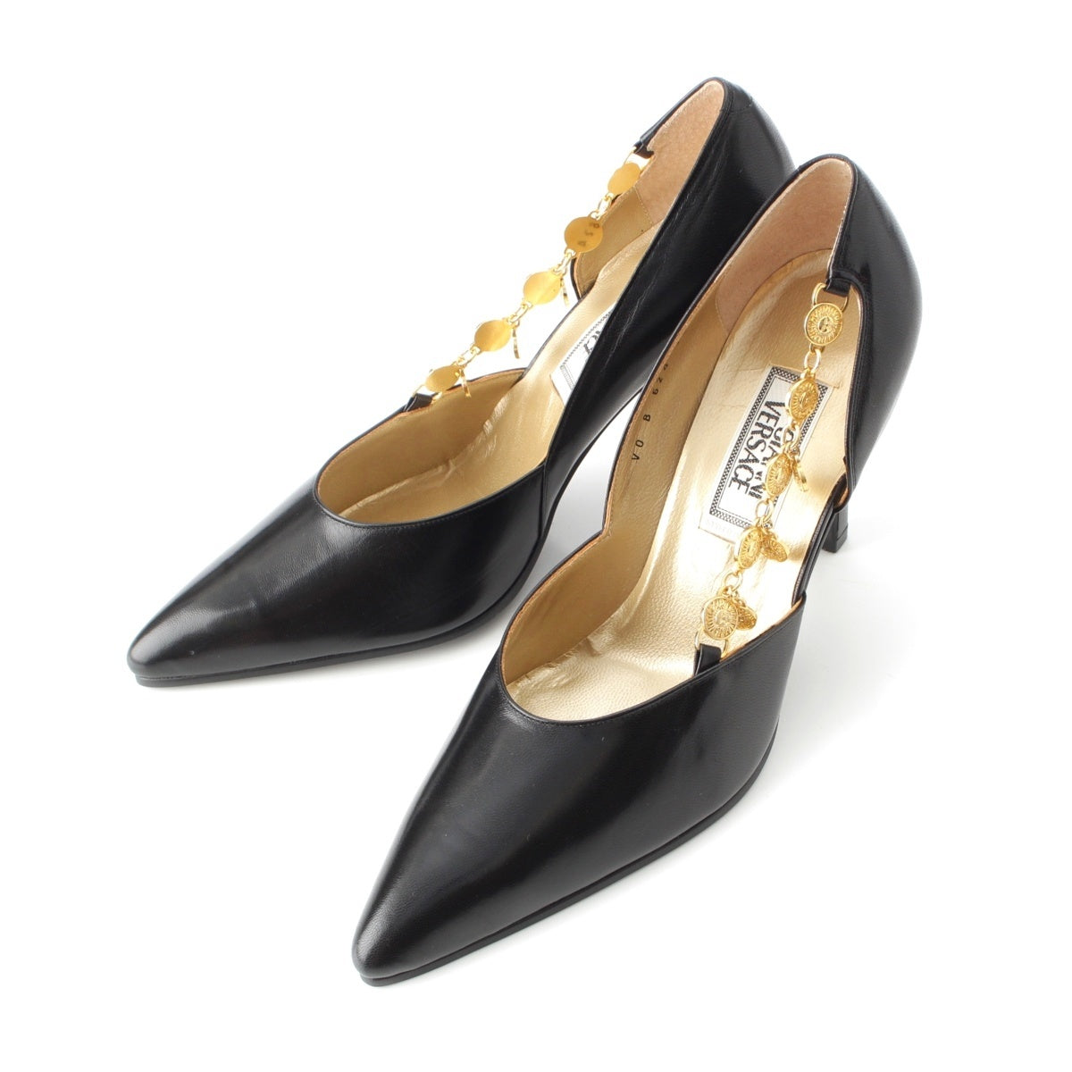 Gianni Versace leather Vintage Medusa Heels pumps shoes black 36 1/2