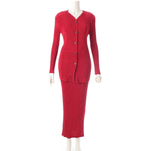 ISSEY MIYAKE Long Sleeve Cardigan Skirt setup IM84-FD915/IM84-FG926 Red L