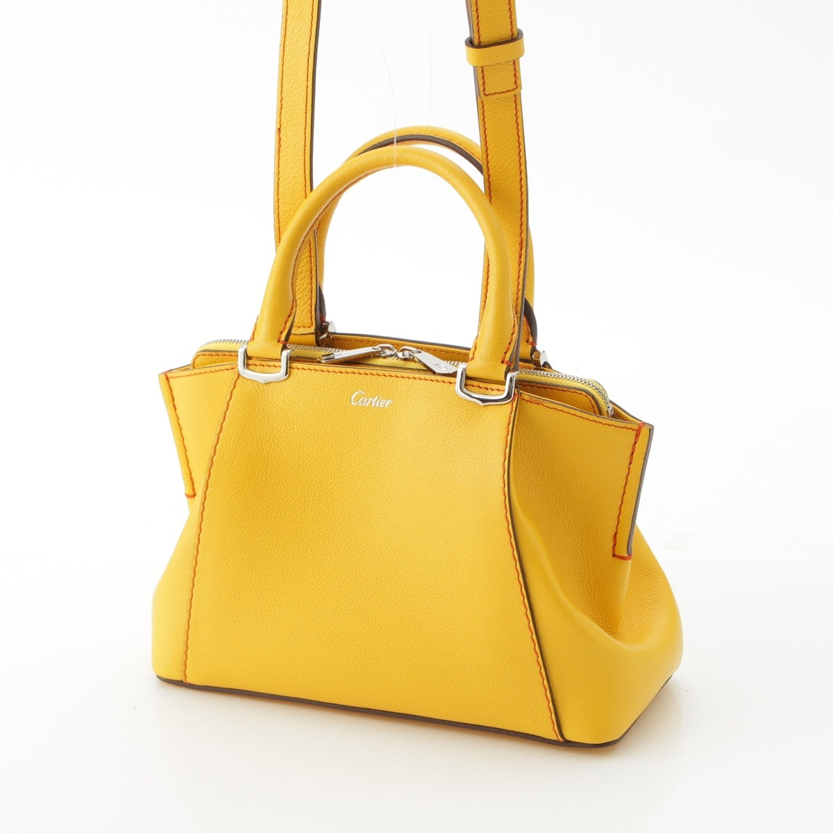 CARTIER leather C2 C de Cartier logo mini 2way Handbag yellow