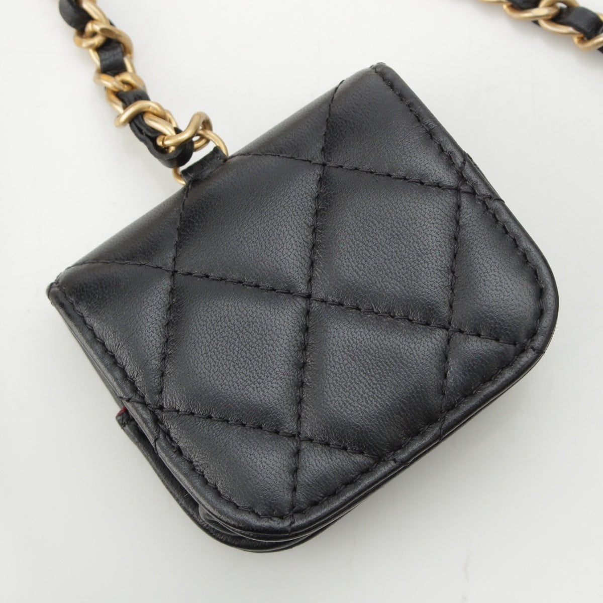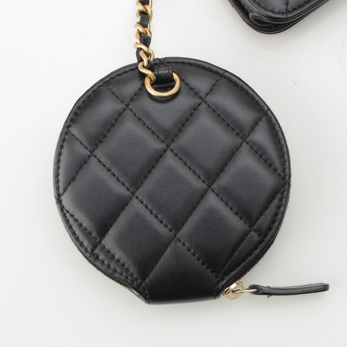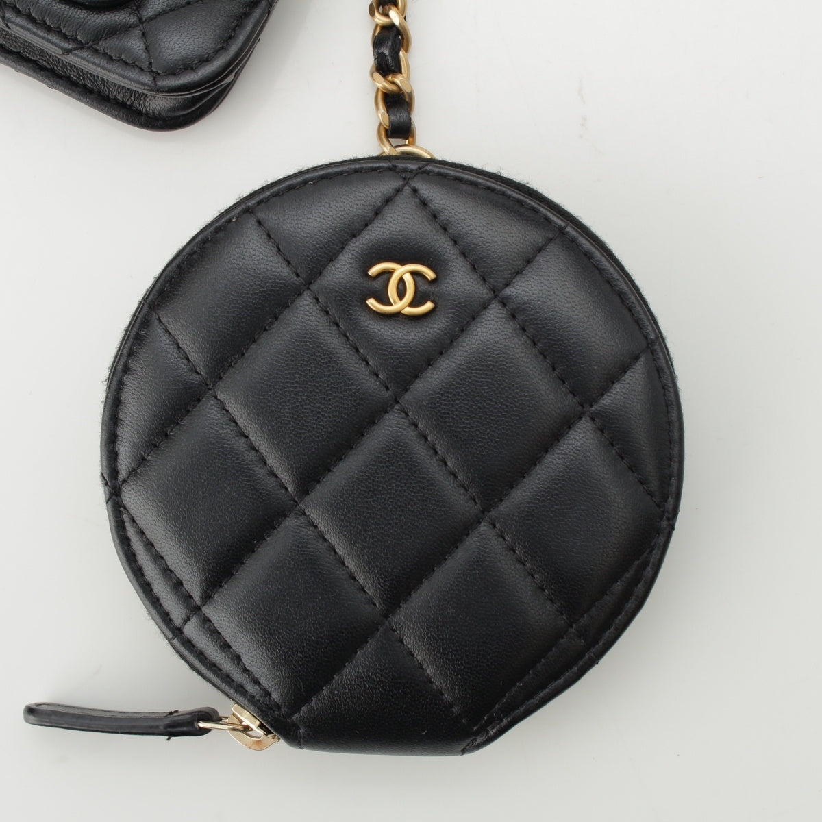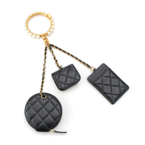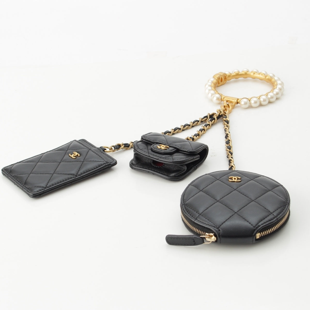 CHANEL lambskin Matelasse COCO Mark Pearl Crown Handle Multi Pouch black