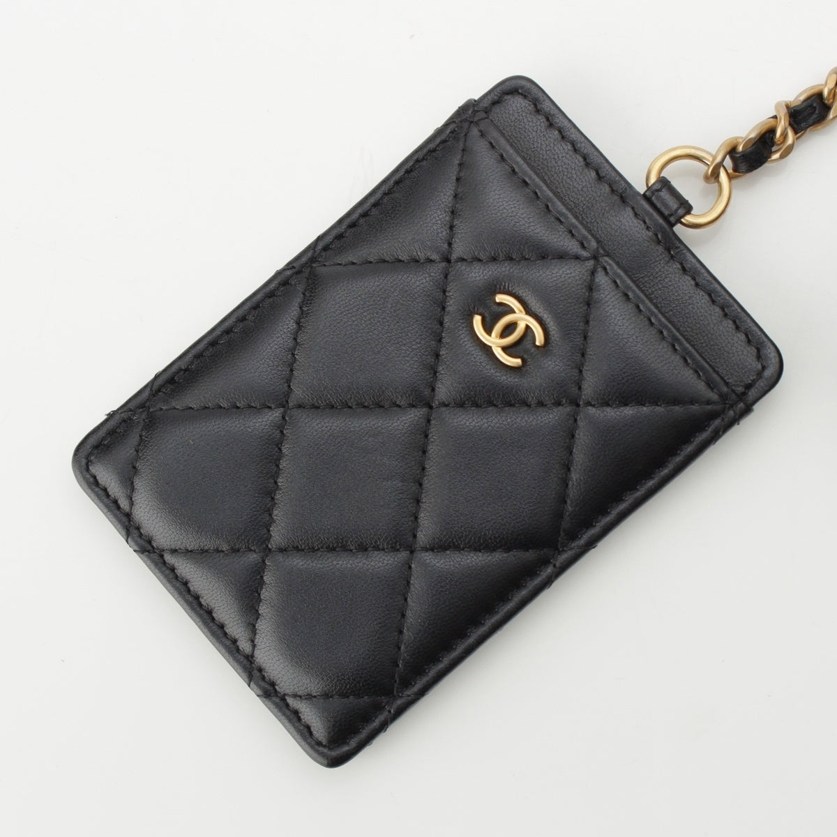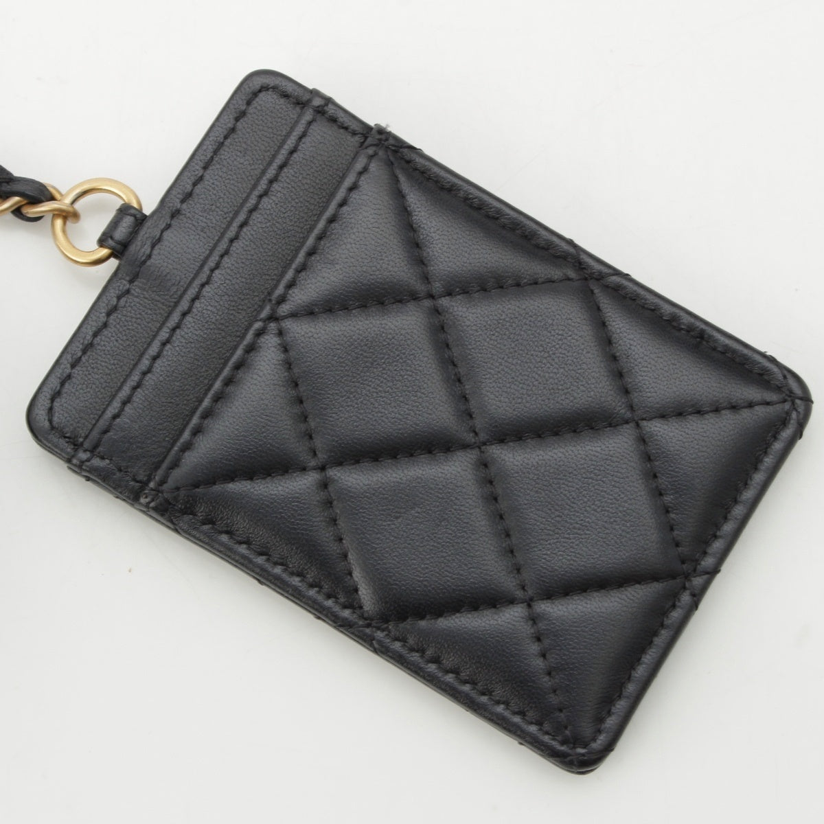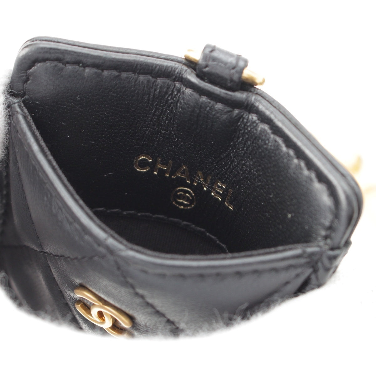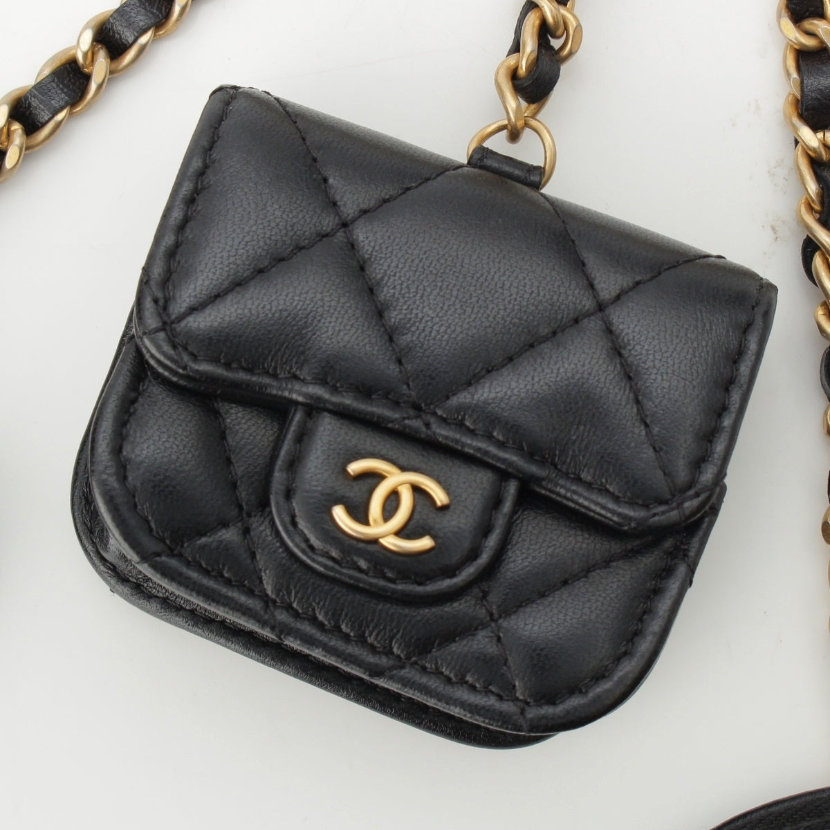 CHANEL lambskin Matelasse COCO Mark Pearl Crown Handle Multi Pouch black